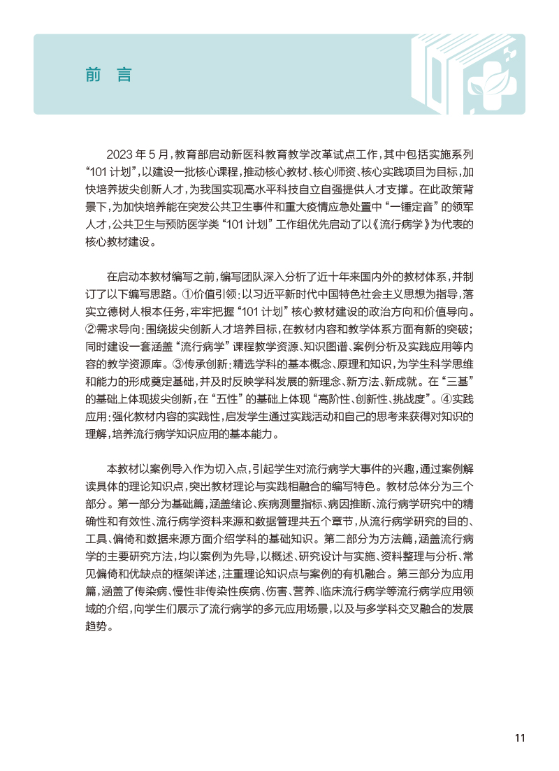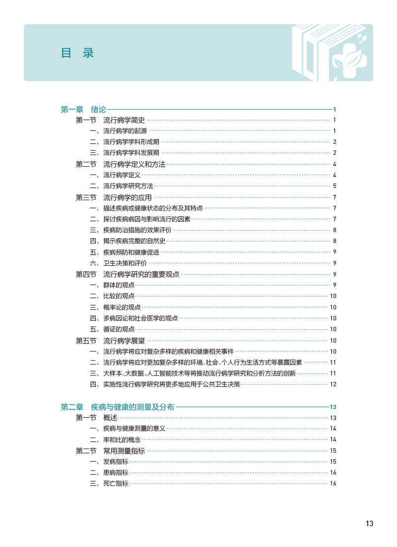 《流行病学》教材的内容和体系将主要依据目前预防医学专业流行病学教学大纲要求,主要案例选自国内外预防研究工作实践,突出流行病学基础理论和实践应用能力的培养。全书共14章,主要包括现场及临床流行病学的基础知识;预防医学及临床实践工作中的各种常用的方法等。由目前国内知名的中青年流行病学专家编写,编者们全部具有流行病学科学研究和现场实践的扎实基础,编写内容以解决现场及临床有关疾病和健康的原因探讨、管理、干预和评估等各种问题;在兼顾流行病学基础理论知识和常用方法的同时,也对内外现场工作中的一些新方法、新知识进行介绍。