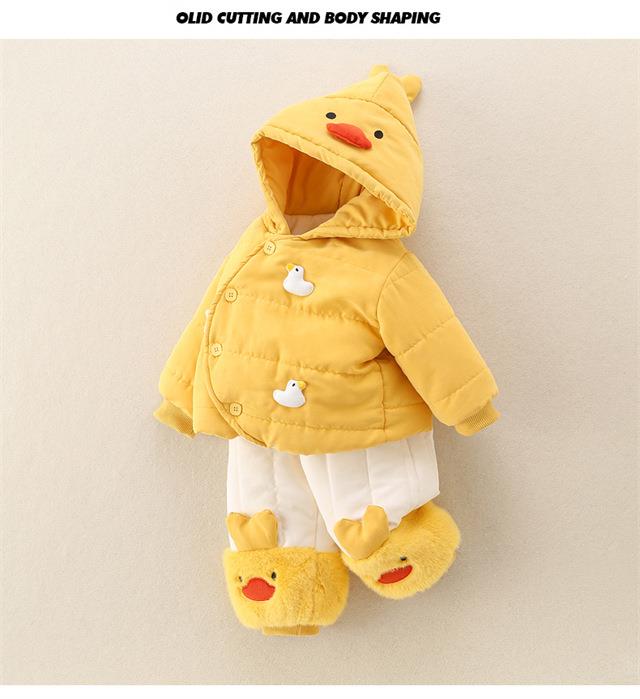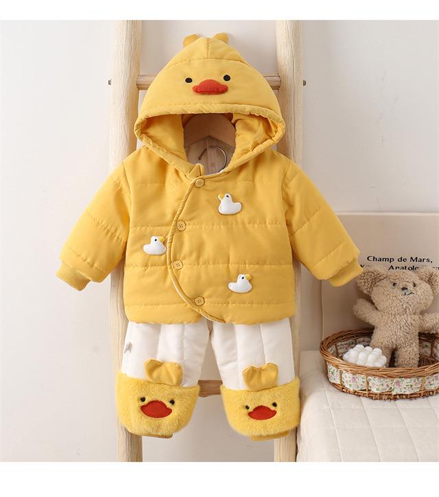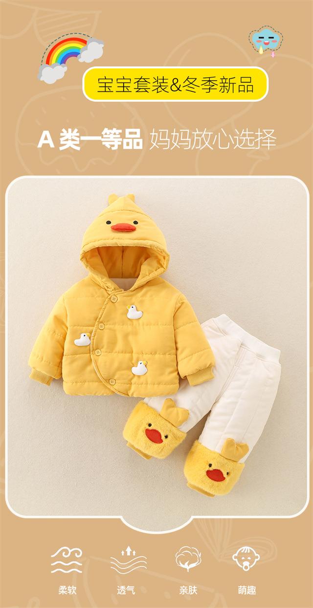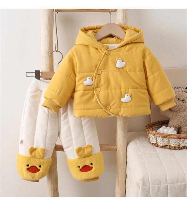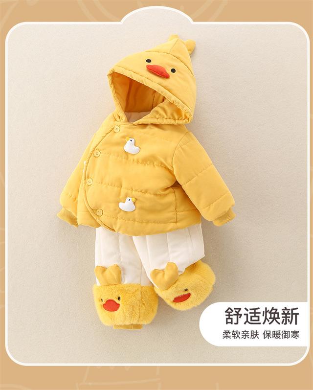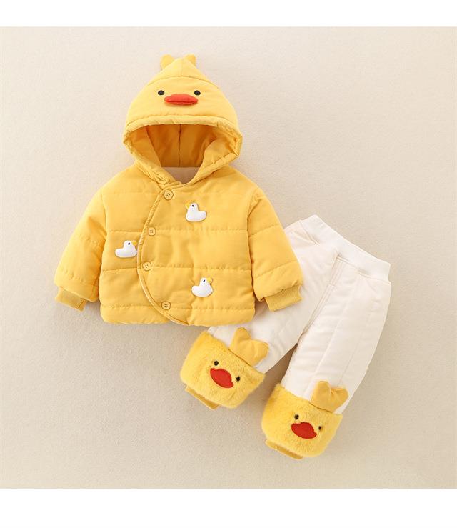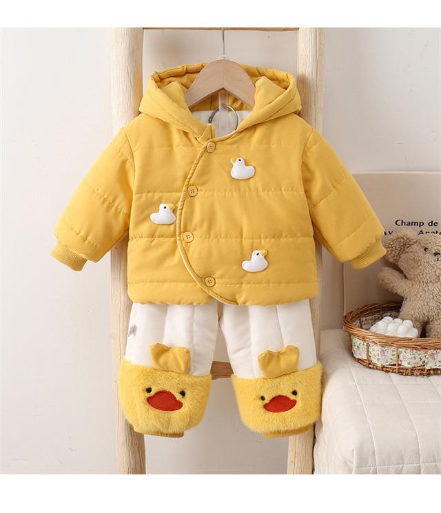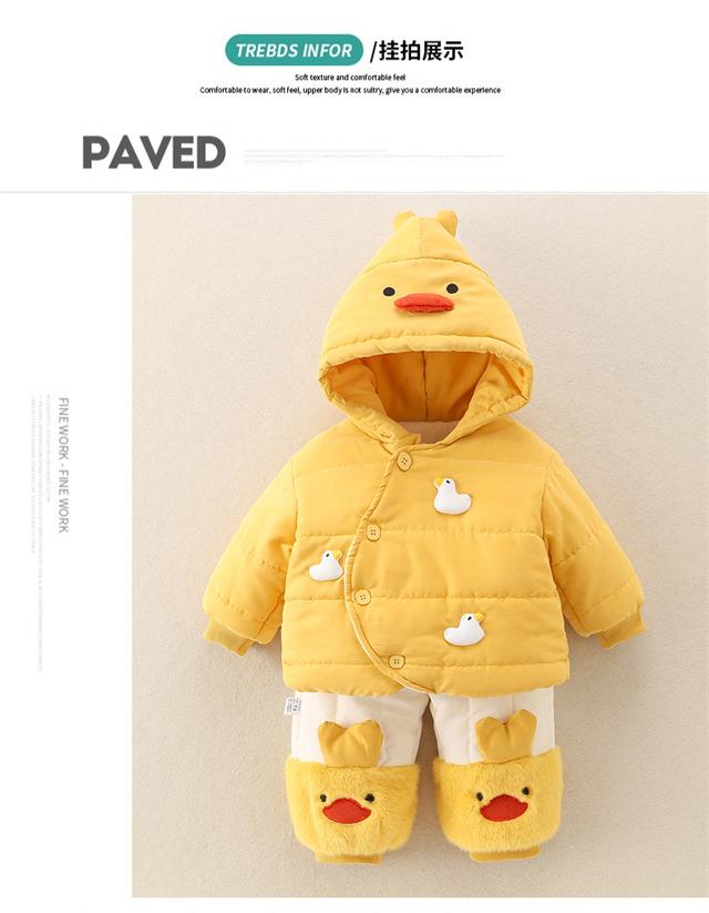 婴幼儿2025年冬季外穿加绒加厚可爱卡通男女宝宝保暖分体两件套