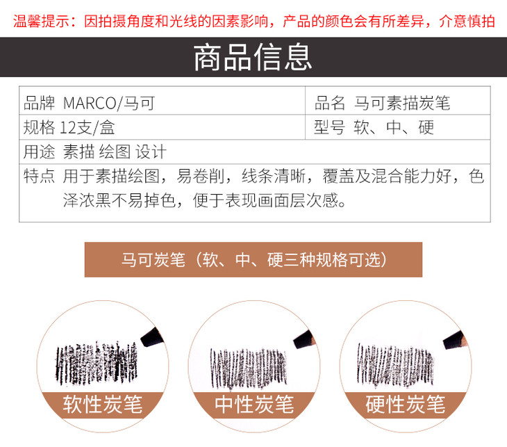 新品马可7016-12CB美术素描笔碳笔绘画铅笔 绘图炭笔软 中 硬