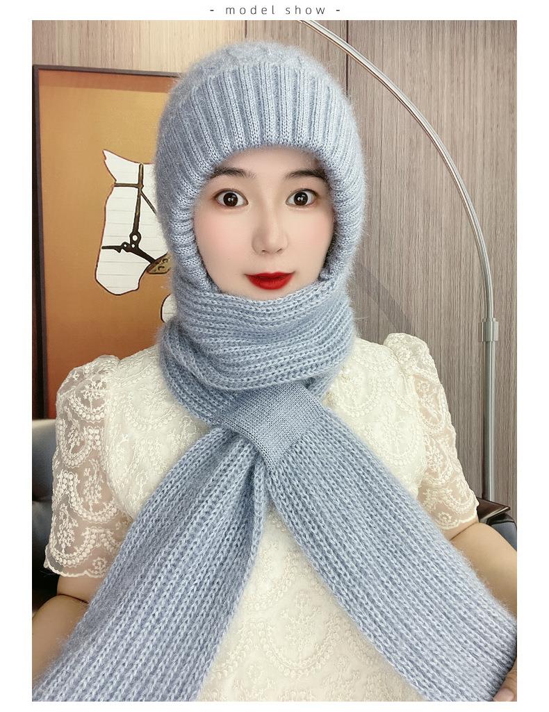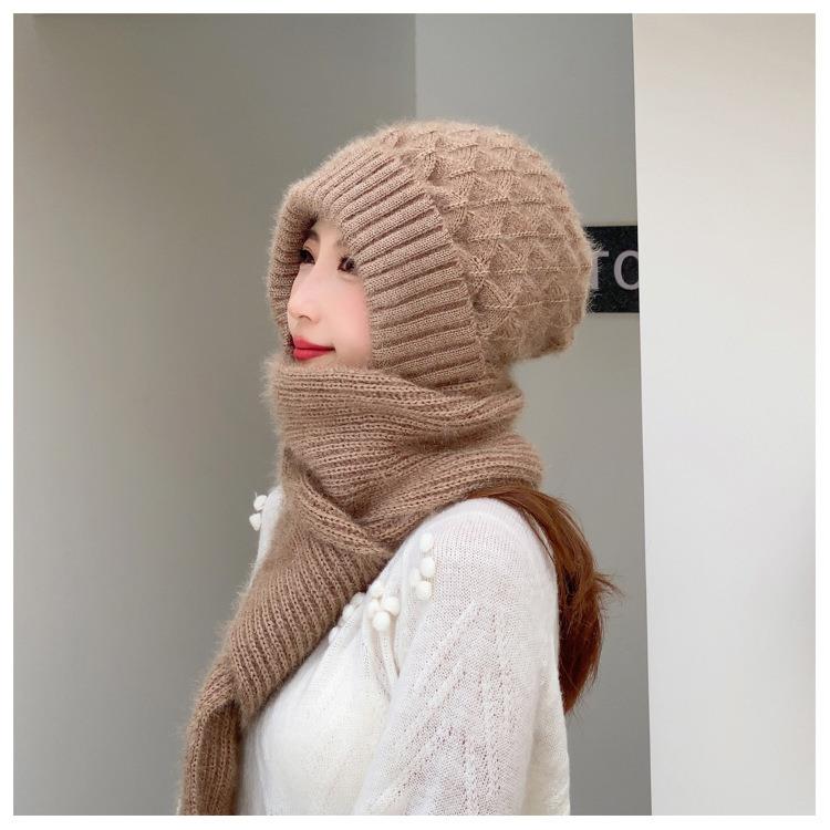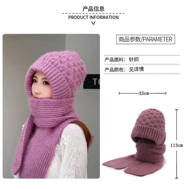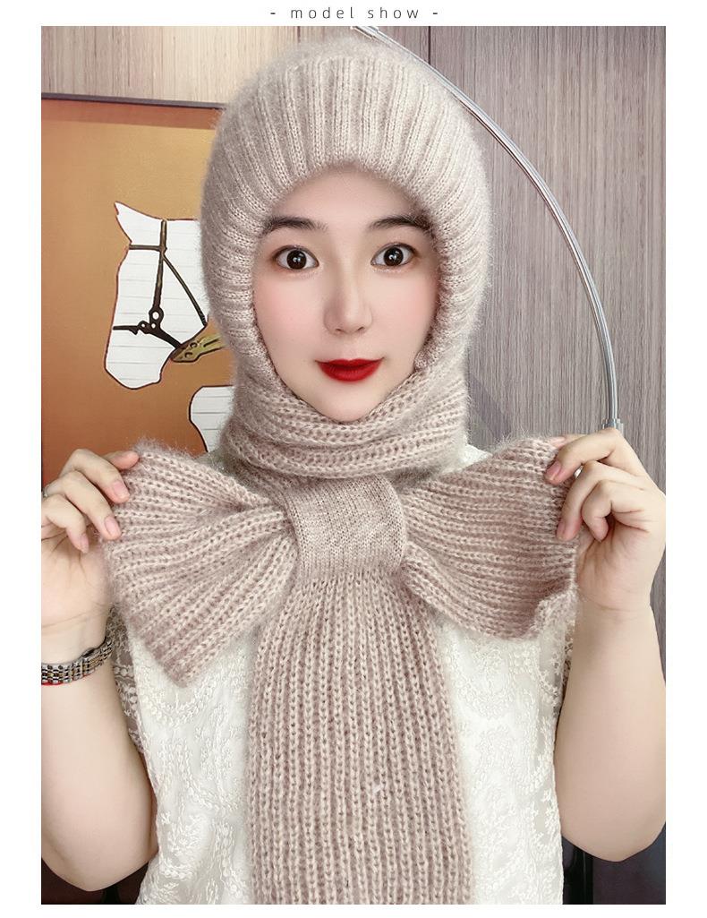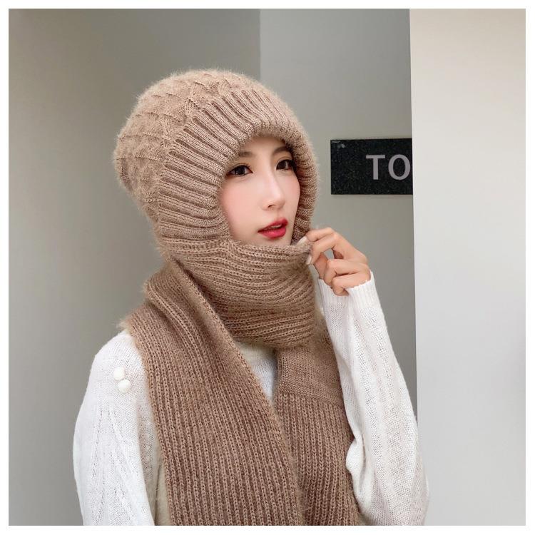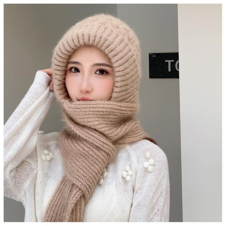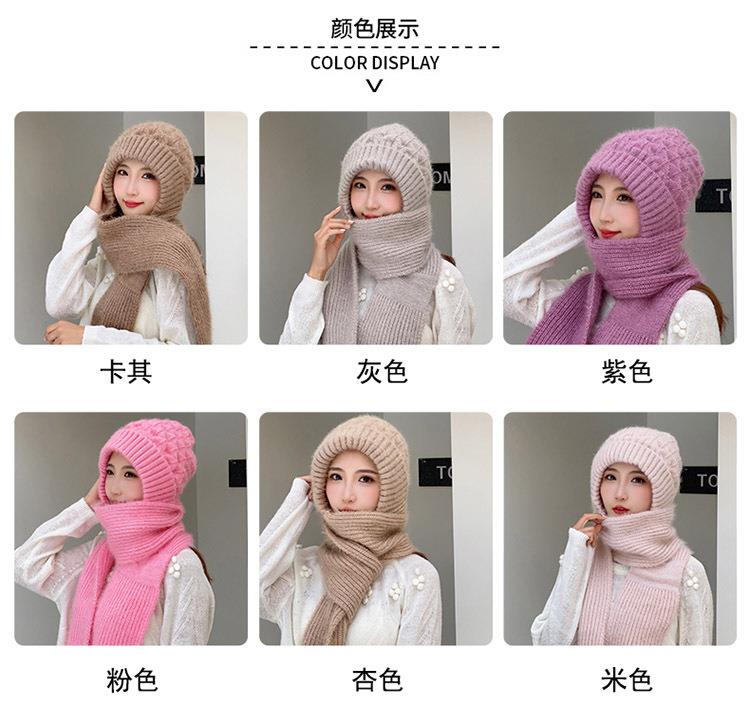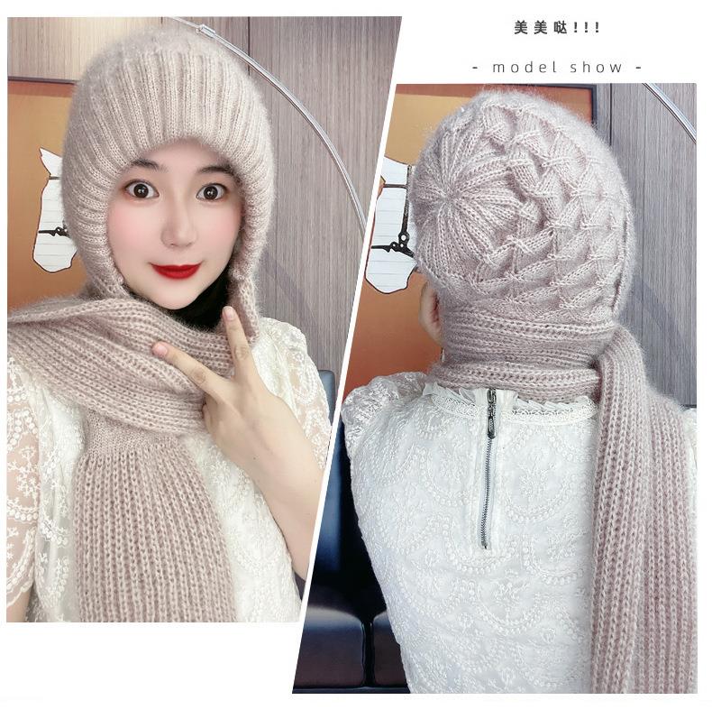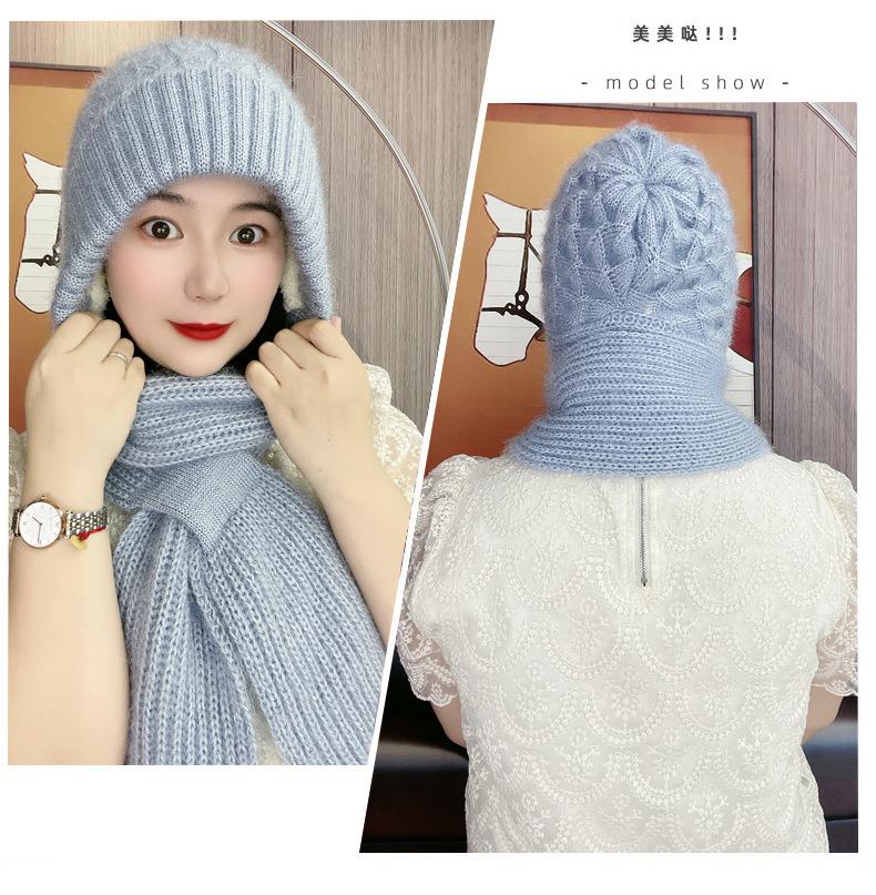 秋冬新款加绒加厚双层连体围巾帽松鼠绒护耳护颈显脸小女帽潮