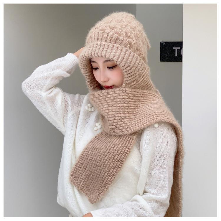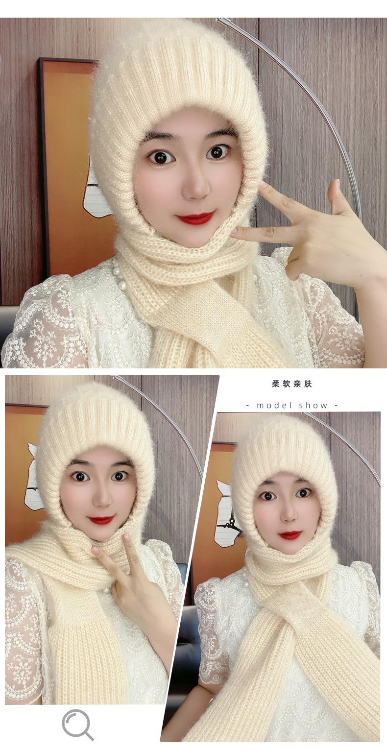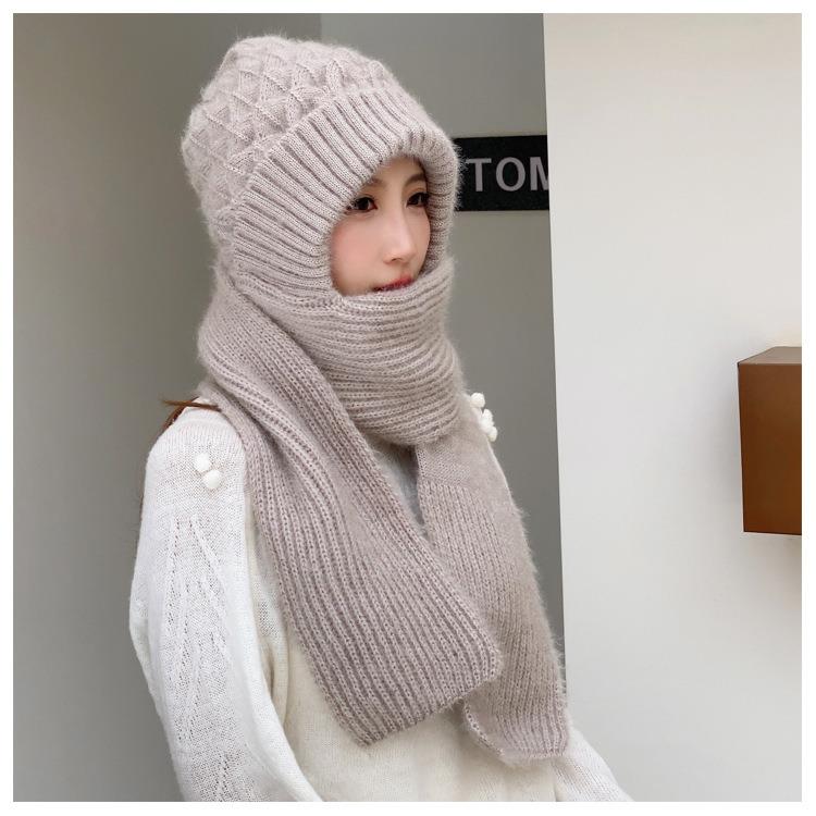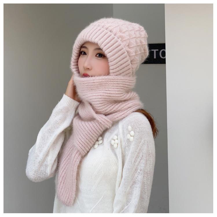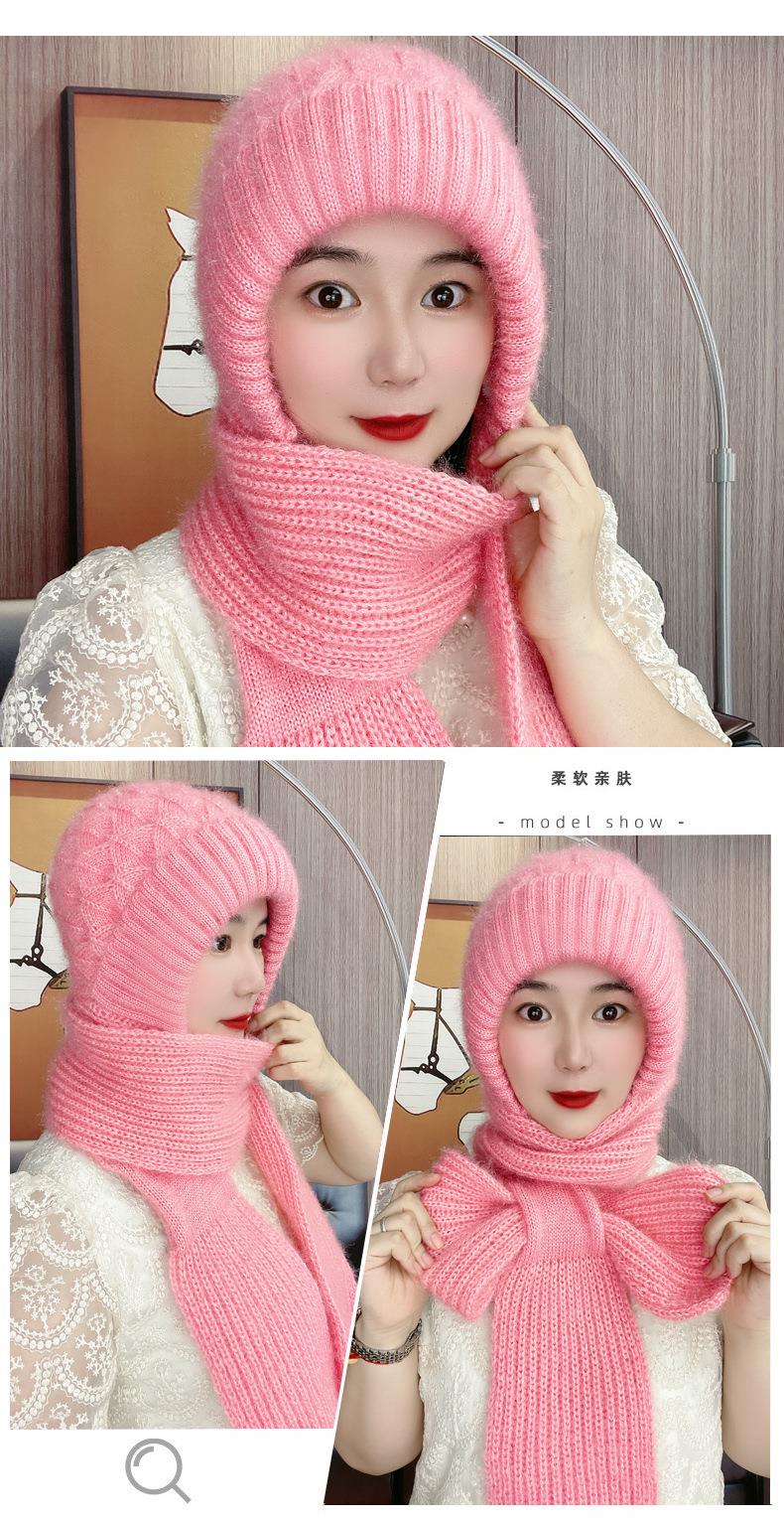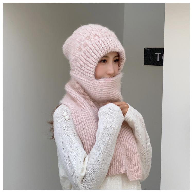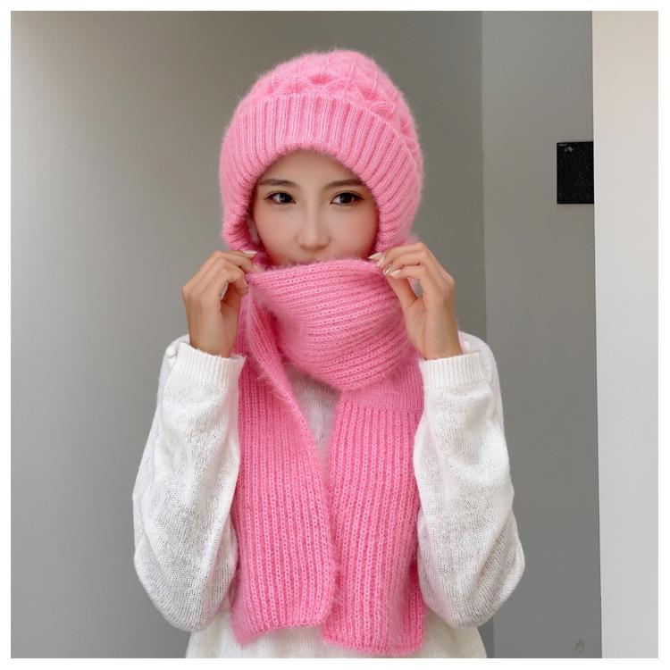 秋冬新款加绒加厚双层连体围巾帽松鼠绒护耳护颈显脸小女帽潮