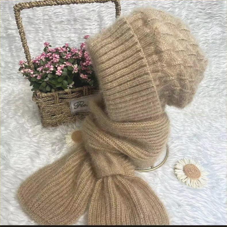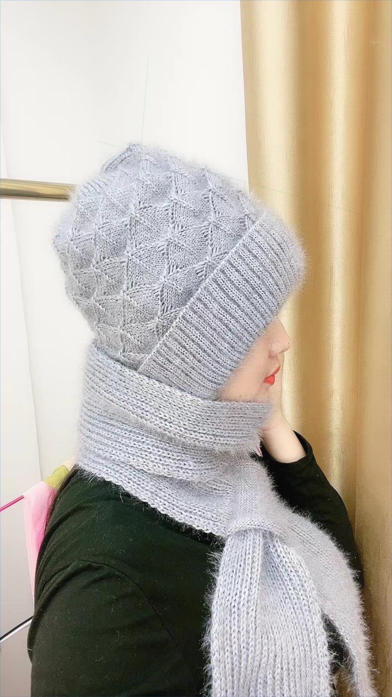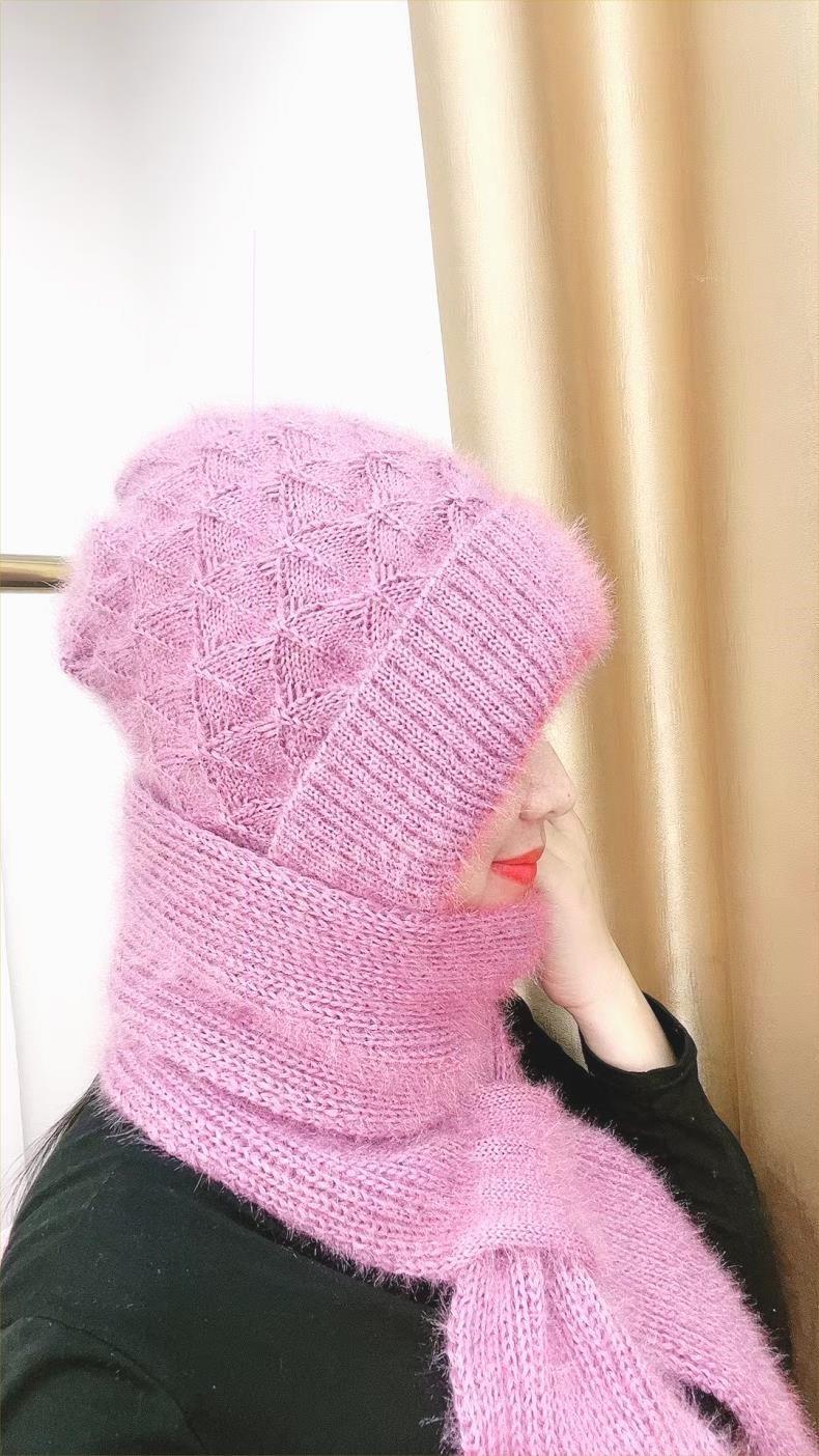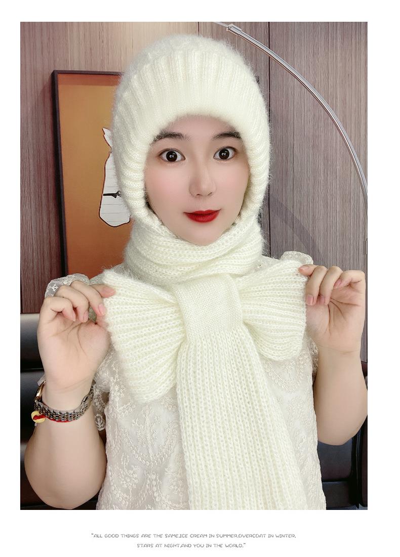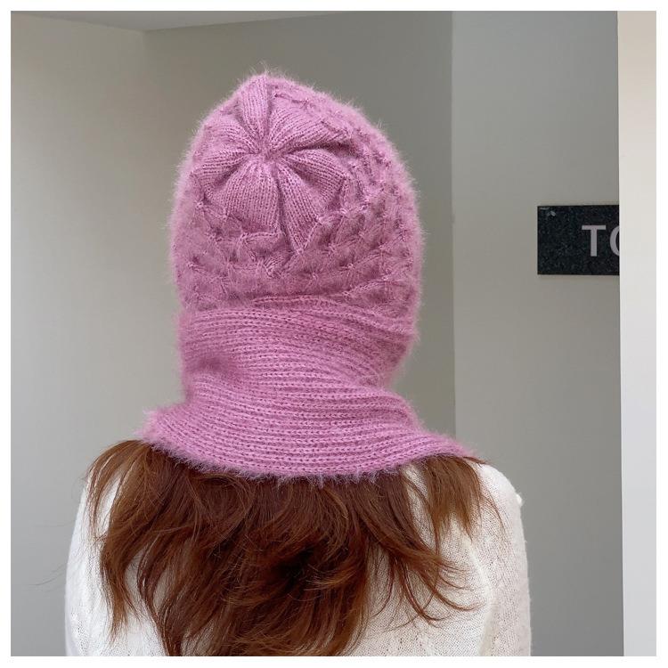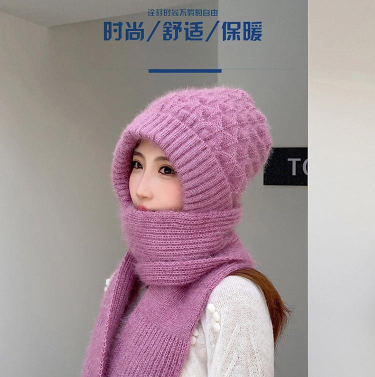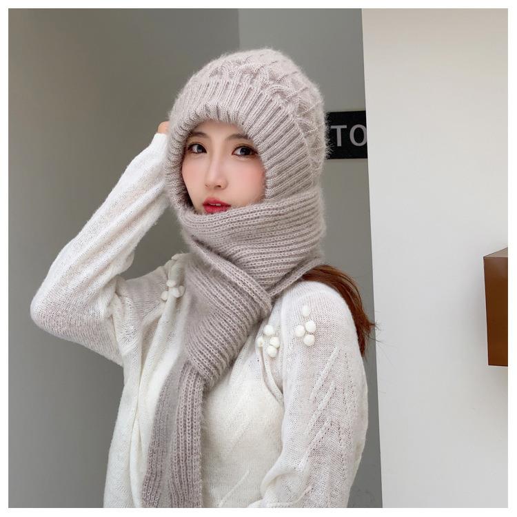 秋冬新款加绒加厚双层连体围巾帽松鼠绒护耳护颈显脸小女帽潮