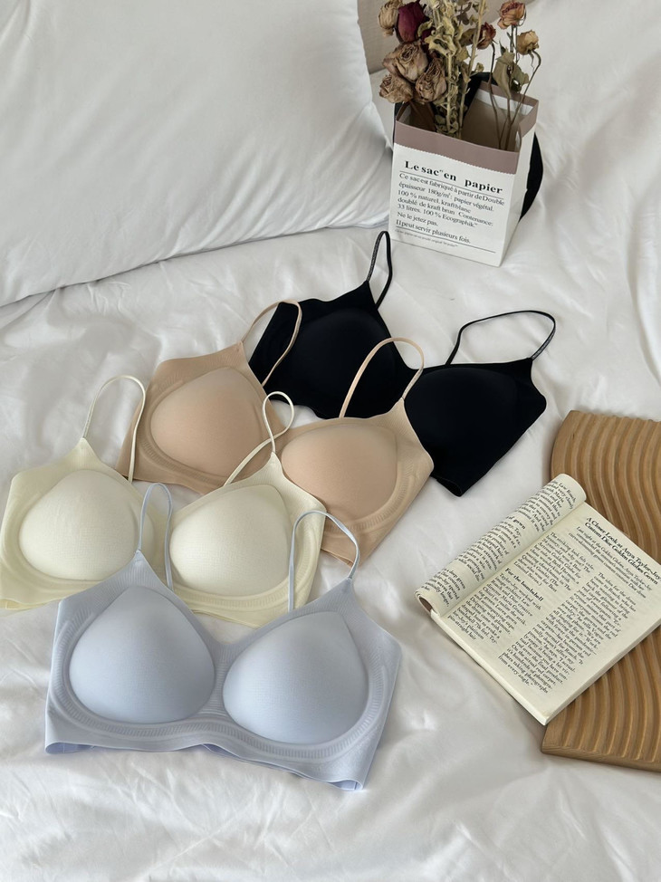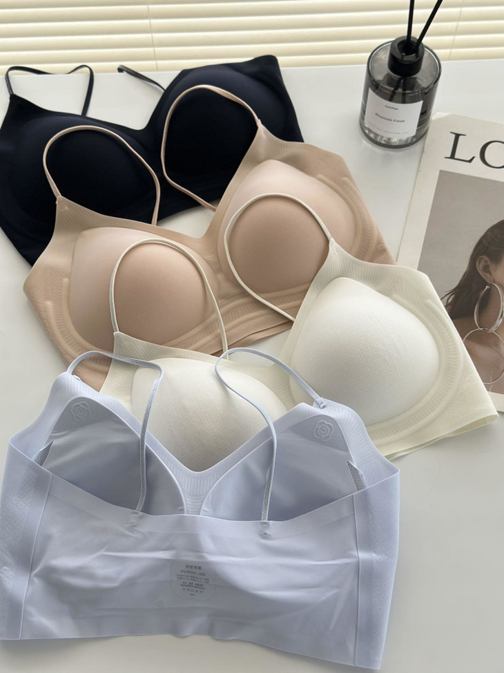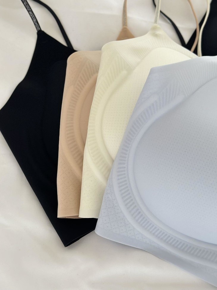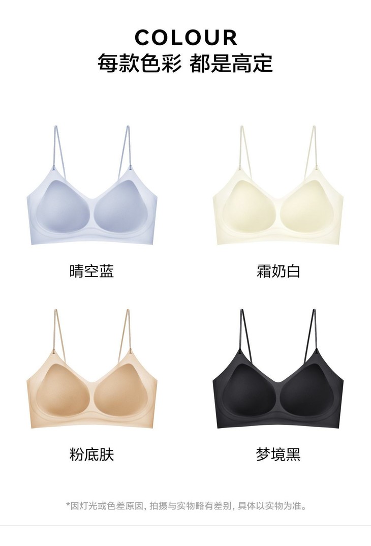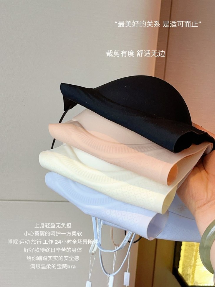𝐃𝐞𝐭𝐚𝐢𝐥𝐬 细节 无钢圈设计非常非常软 里面的胸垫都是固定式水滴杯,非常经典! 胸垫超多透气孔设计,夏天穿特别透气,而且随意机洗不跑位! 侧边加宽软支撑,整个包裹性非常好! 果冻软支撑的设计,可以给你最舒适的聚拢效果