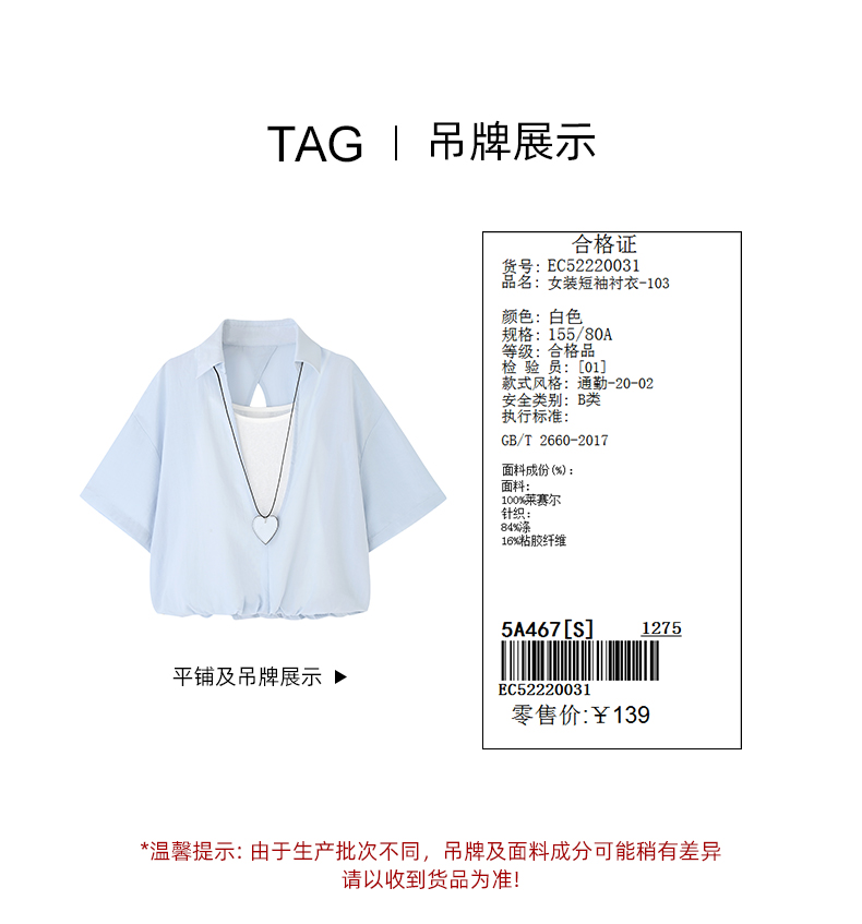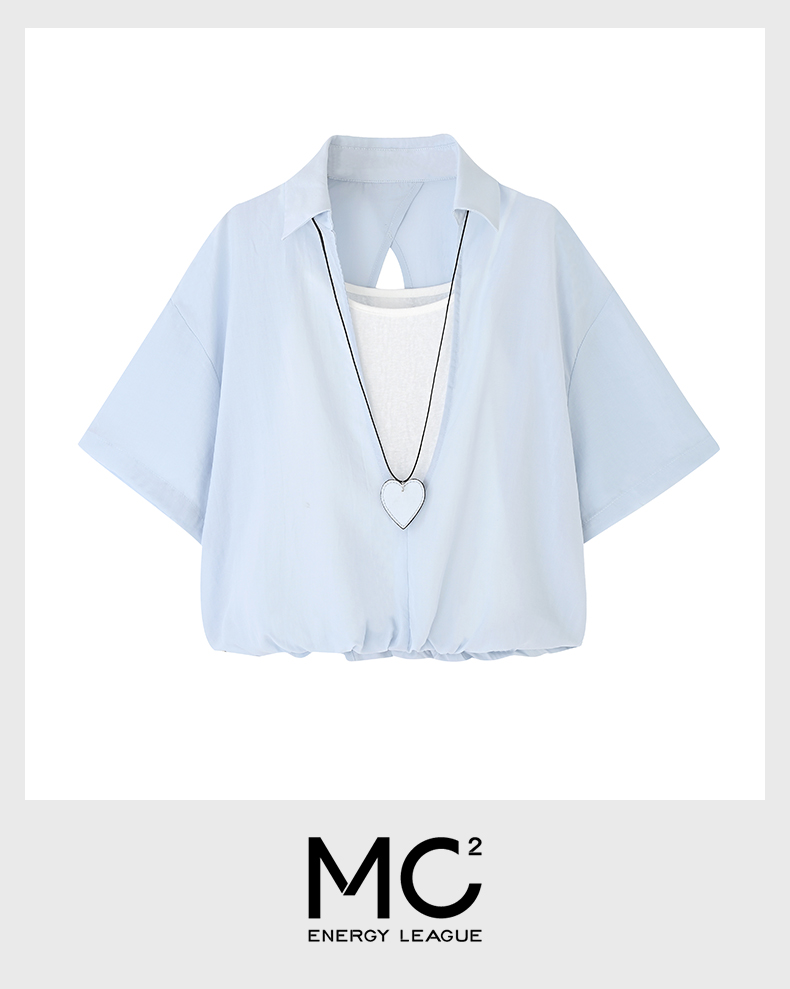 女装翻领假两件配爱心项链轻薄衬衫-103C5222003