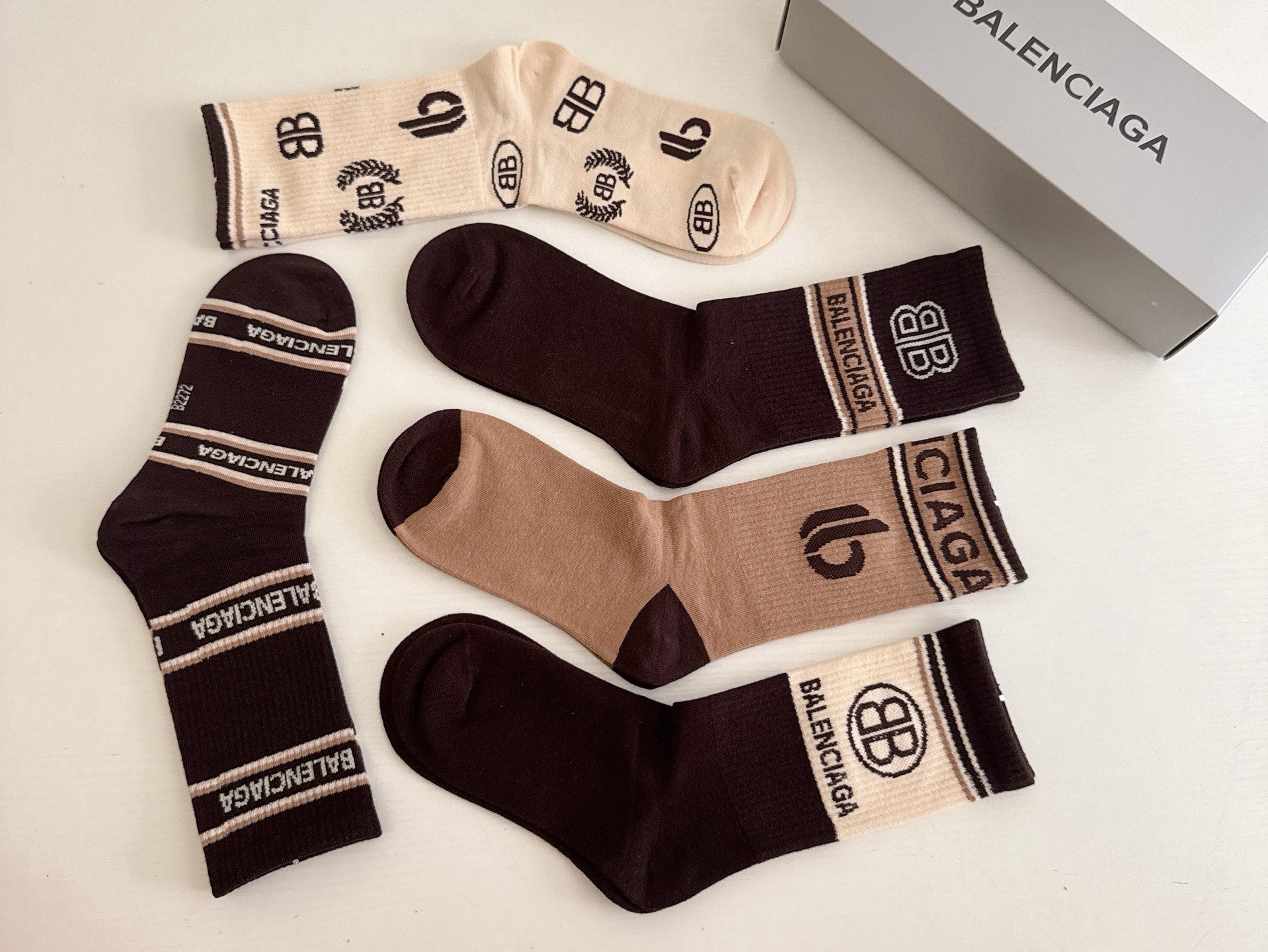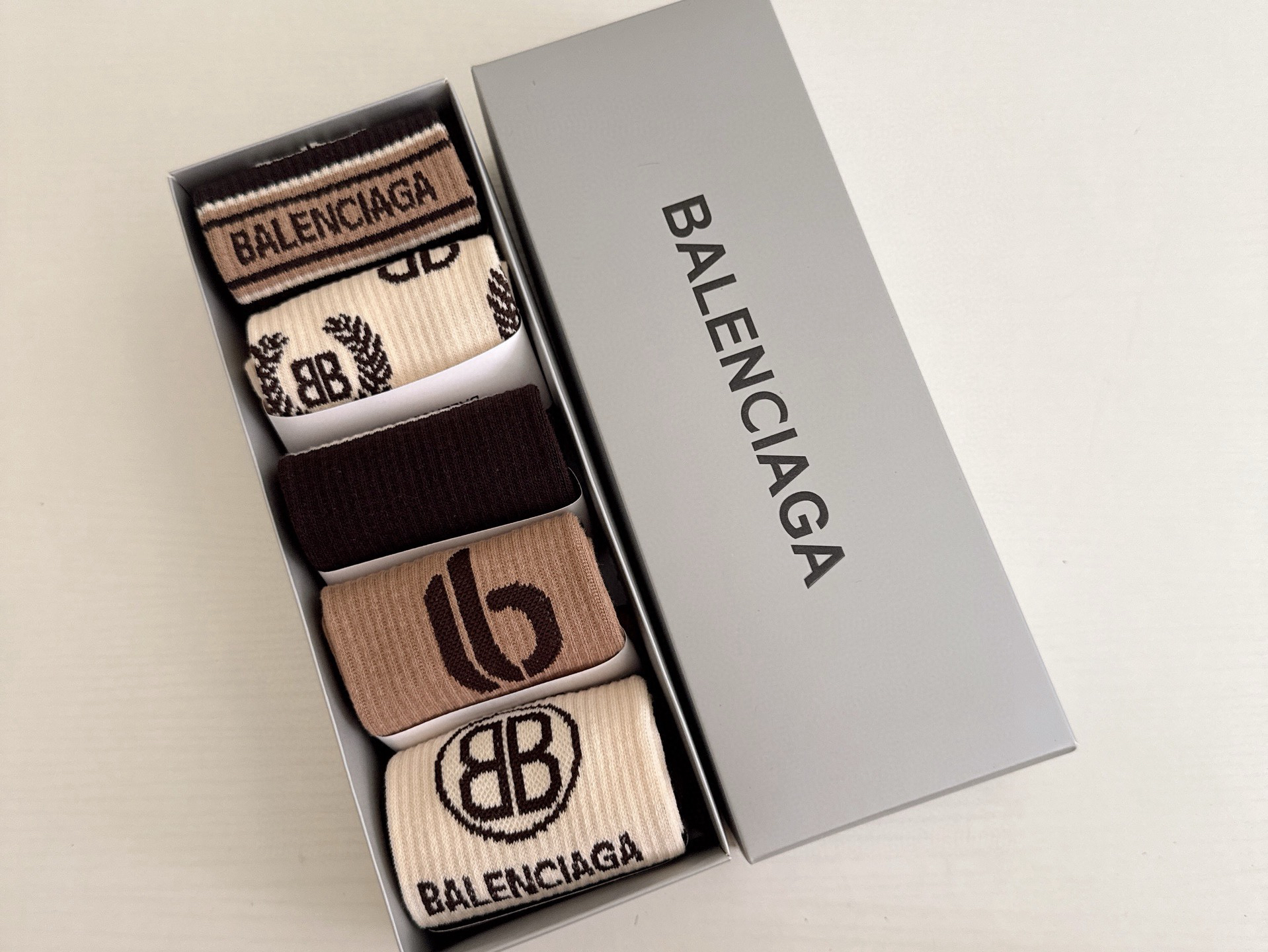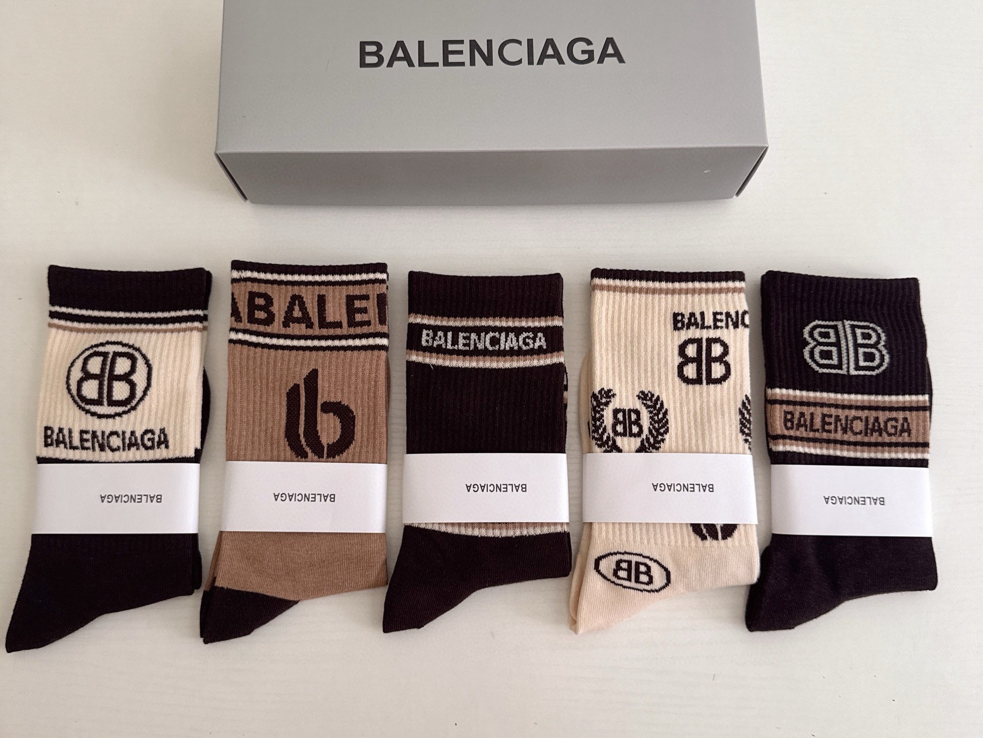 秋冬特惠💰130 巴黎世家袜子 大巴黎新品女款长筒袜子【一盒五双】纯棉材质织造,上脚柔软舒适