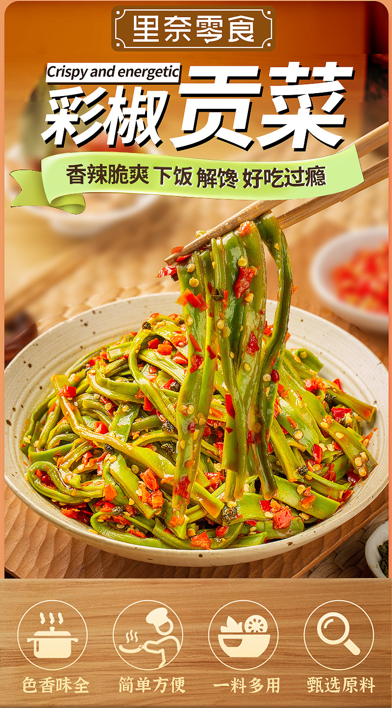 【香辣脆爽❗解馋彩椒贡菜】甄选品质原料制作,响脆贡菜与彩椒的巧妙结合,香气浓郁,嘎嘣脆爽,辣椒凉拌菜拌饭拌面,即食咸菜零食小吃下饭菜L