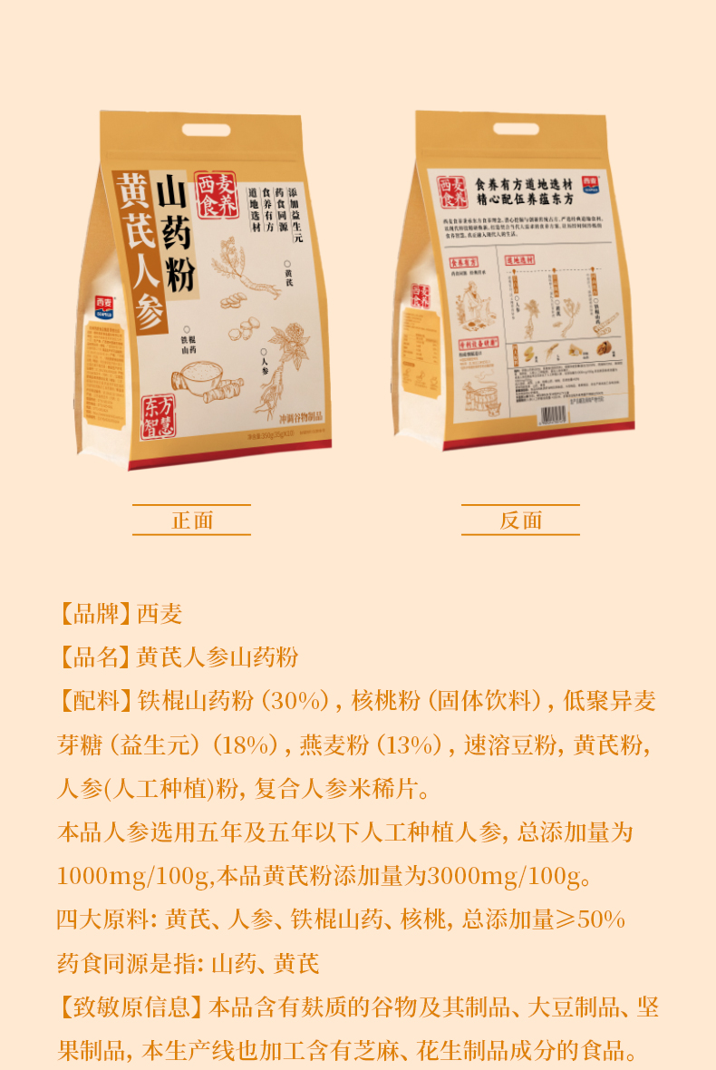 黄芪人参山药粉350g内含10小袋独立装通勤差旅办公便携新中式食养滋补营养品