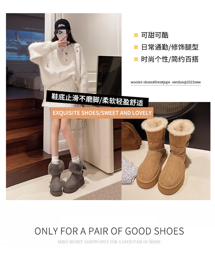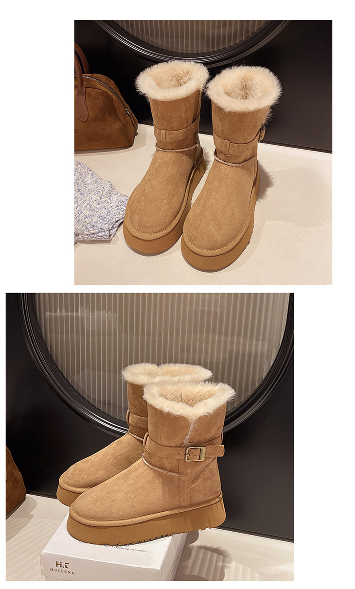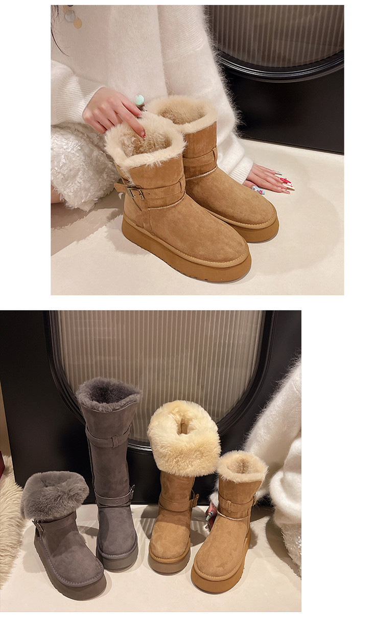 【冬季外穿皮带扣加绒加厚中筒棉鞋】灰色两穿厚底长筒雪地靴女