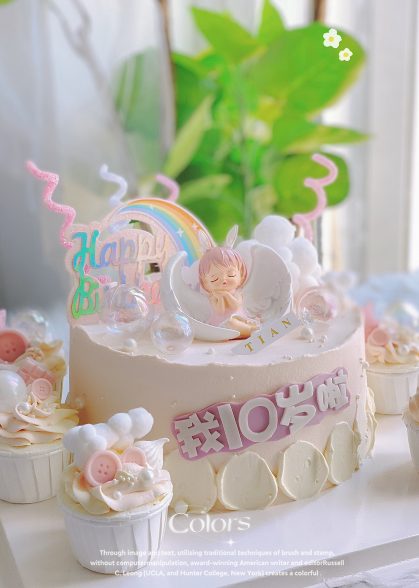 粉嫩公主系列蛋糕,搭配杯子蛋糕,顾客订制图片,部分装饰会细微调整,8寸加高主题蛋糕加6个同款杯子蛋糕,可供15人分享