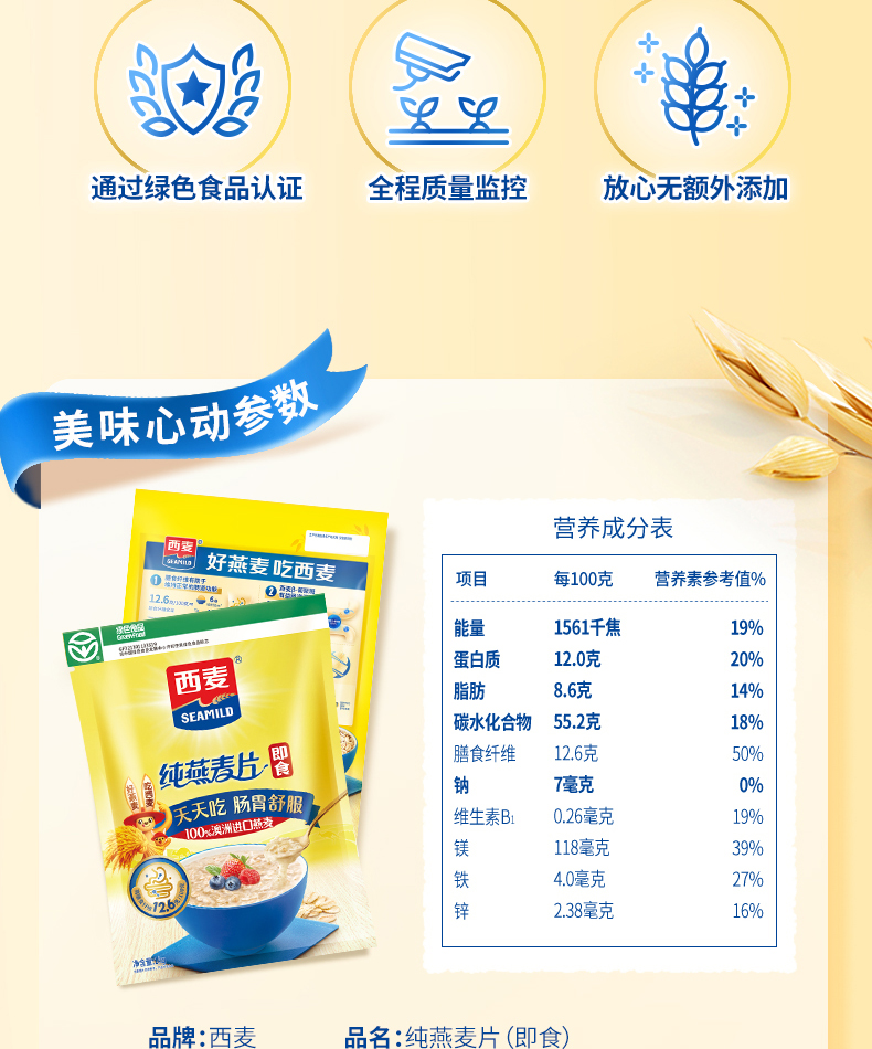 西麦纯燕麦片3kg高蛋白质0添加蔗糖即食谷物速食冲饮营养品早餐