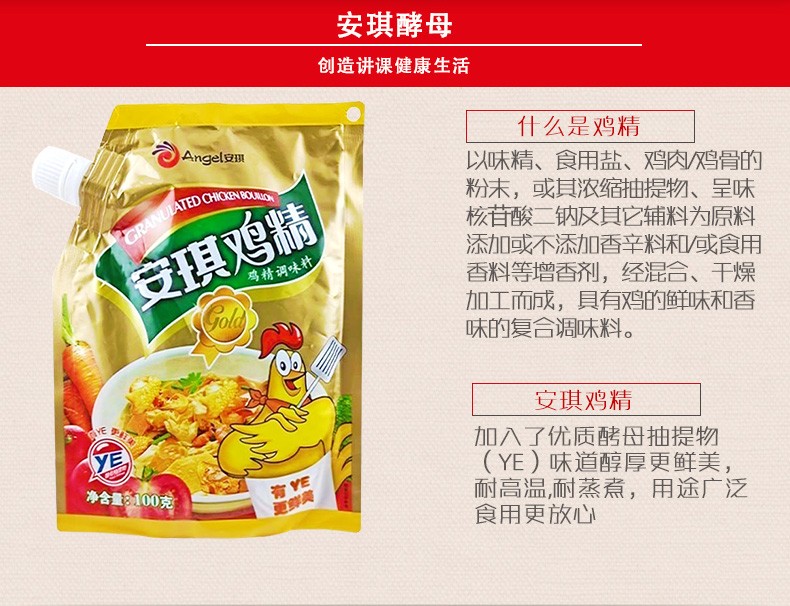 100g 安琪鸡精 鸡精调味料 YE味精烧烤麻辣烫耐蒸煮火锅鸡精炒菜调料