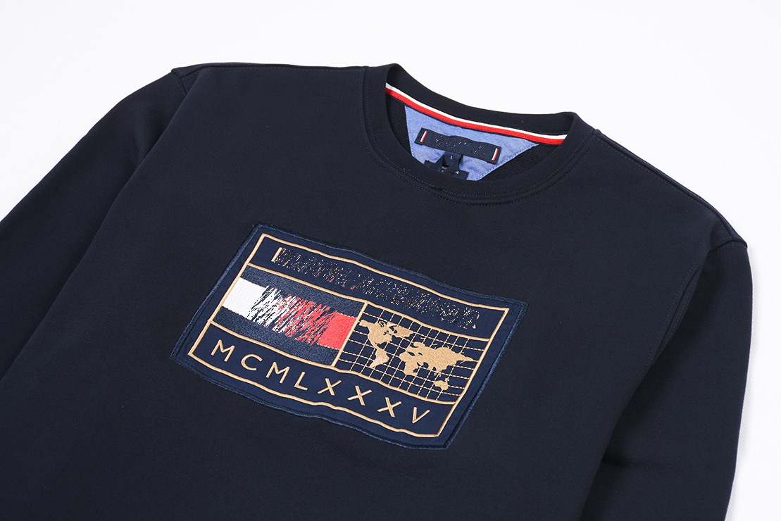 秋季新款 男士休闲时尚 精致刺绣旗标 圆领套头卫衣 T-1210
