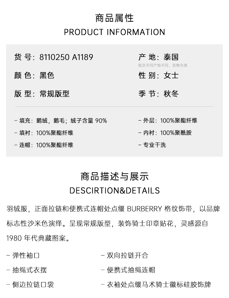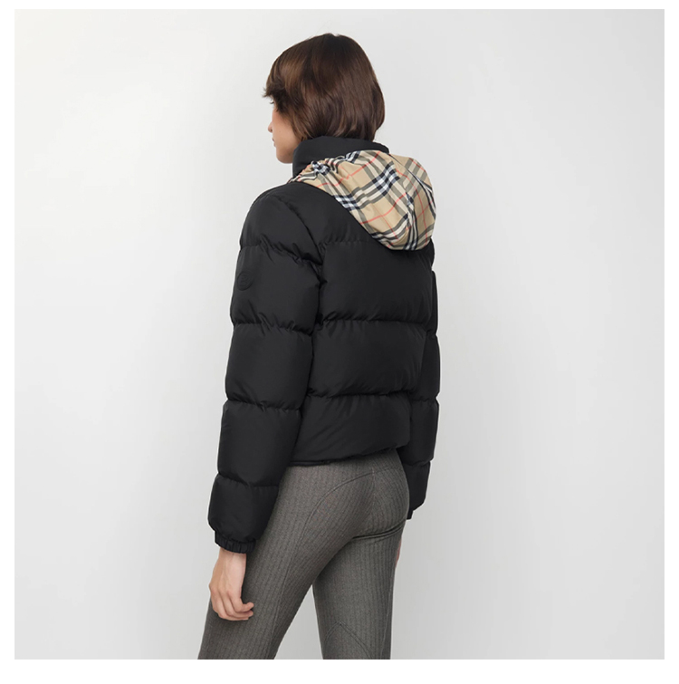 BURBERRY 巴宝莉 女士格纹饰带 Ambleside 羽绒服 黑色 8110250 A1189