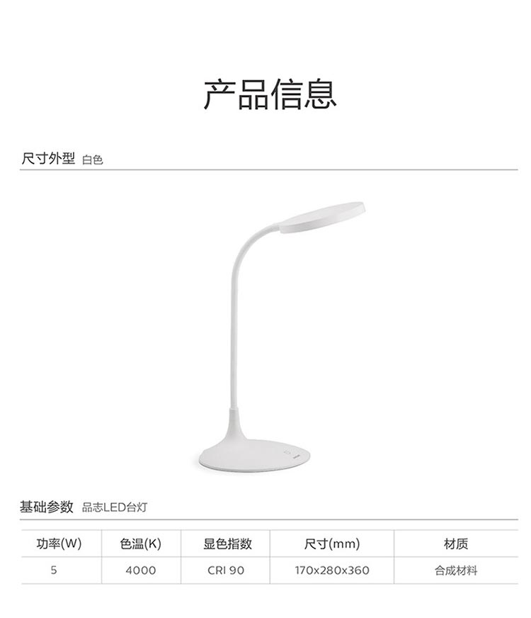 飞利浦PHILIPS 品志LED台灯 充插两用 1800mAh容量 晶钻蜂巢防眩技术 触摸开关 72小时发货