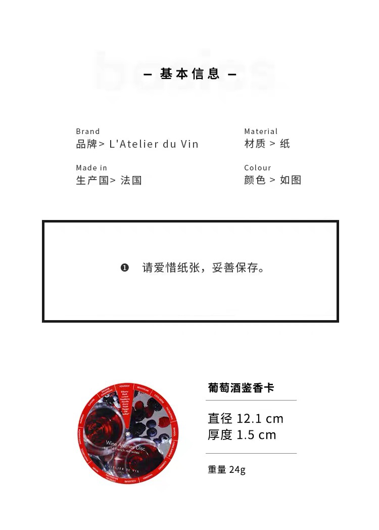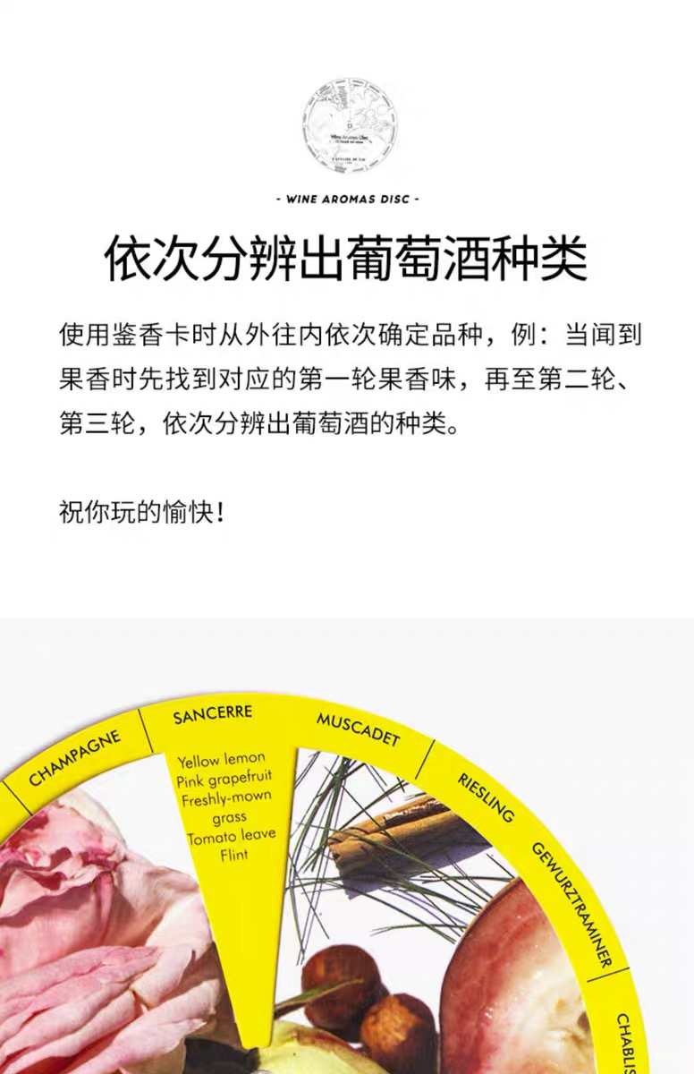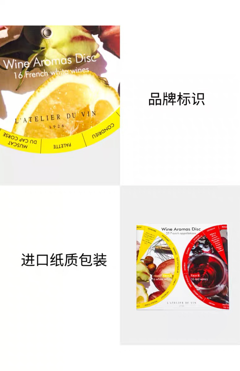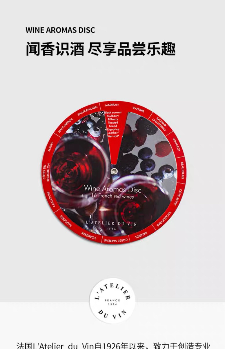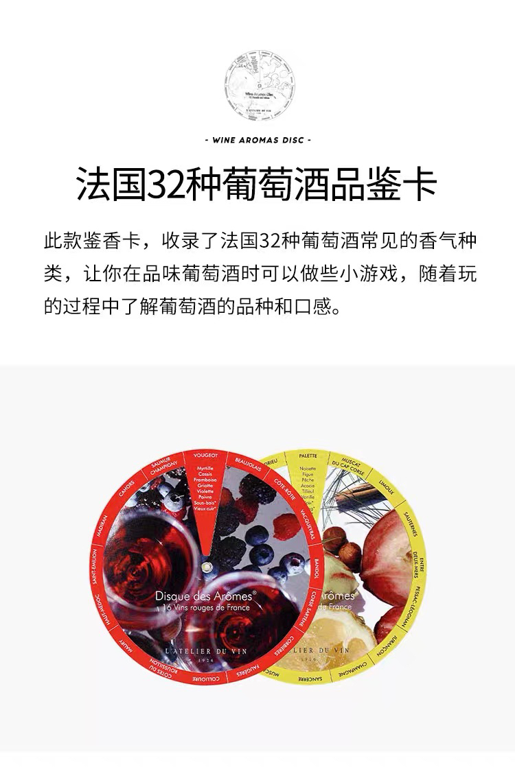 法国L'Atelier du Vin 32种葡萄酒鉴香卡双面圆形 红酒香气品鉴卡