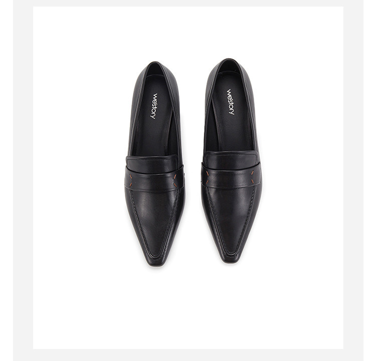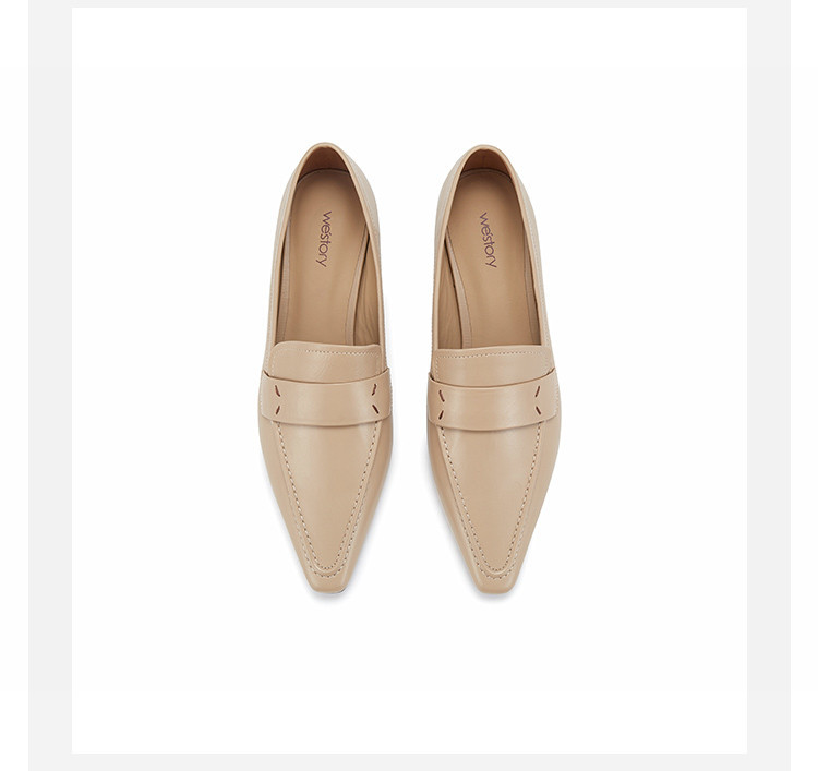 westory新款牛皮铆钉饰扣平底舒适小尖头单鞋S24CE75161(第二批)