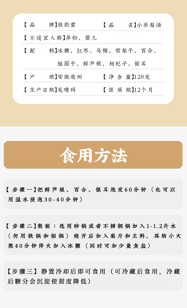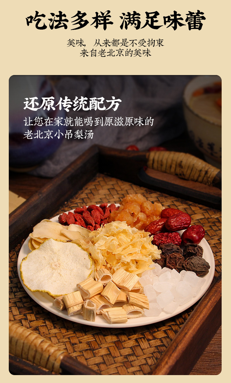 【老北京匠心】小吊梨汤 秋冬饮品小吊梨汤冰糖雪梨银耳桂圆鲜芦根红枣枸杞茶汤120g