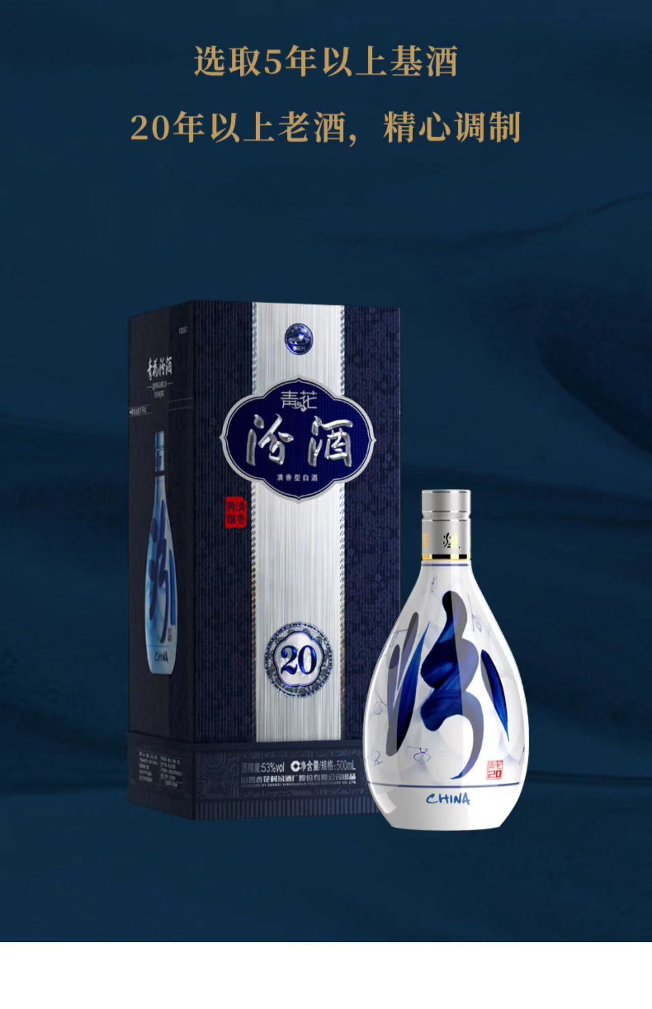 山西杏花村汾酒 53度 青花20汾酒500ml*6瓶整箱 清香型白酒