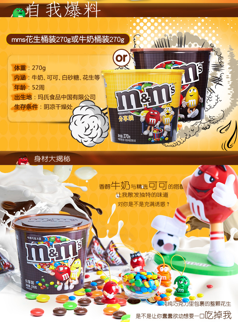 mm豆 牛奶 花生 夹心 巧克力270g/盒 混合装 罐零食小吃休闲食品