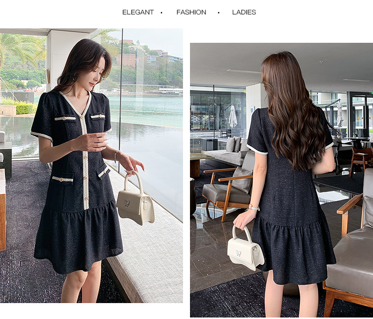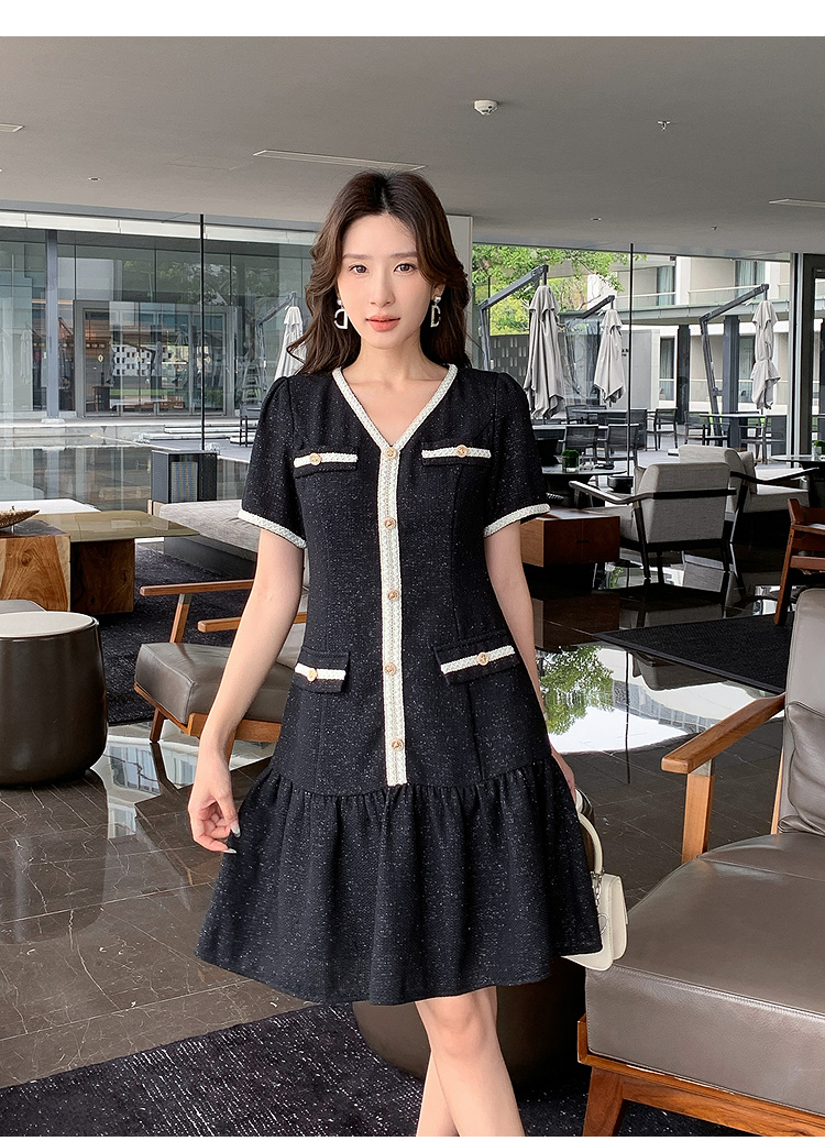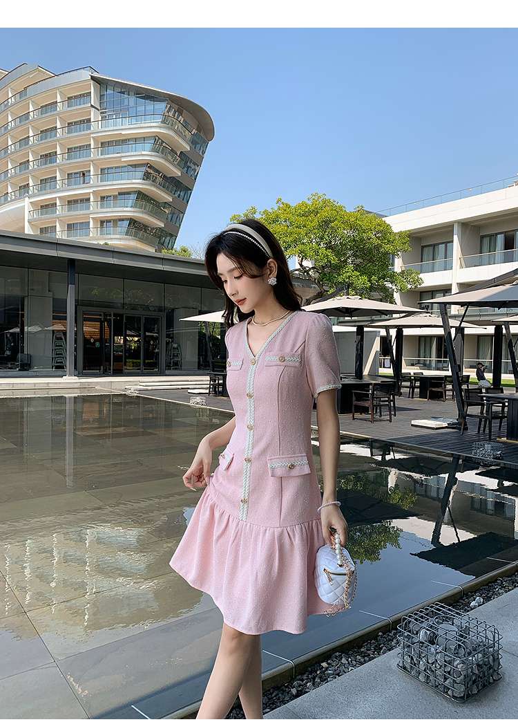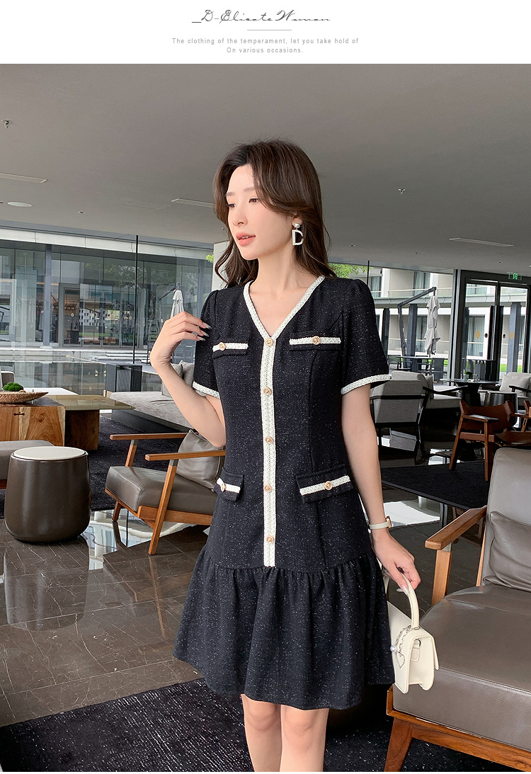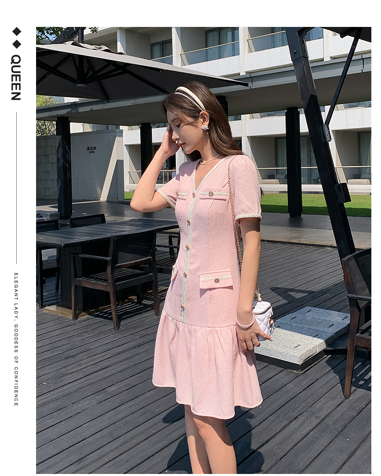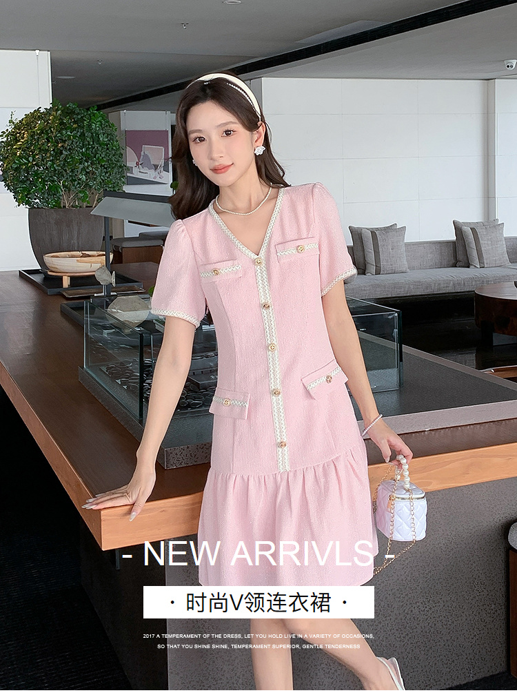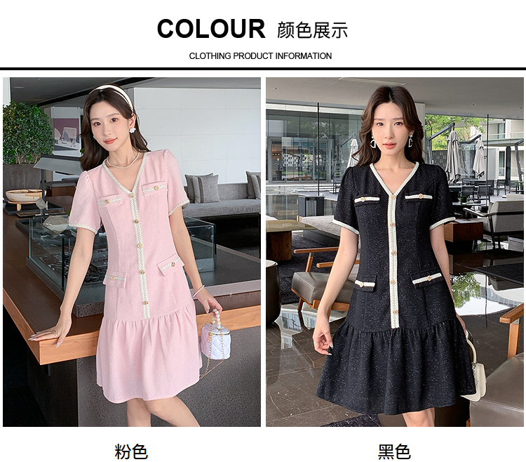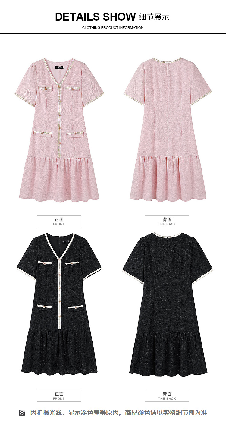 奢姿大码女装2026夏季胖妹妹V领轻奢优雅连衣裙单排扣气质裙子9952869215【1】