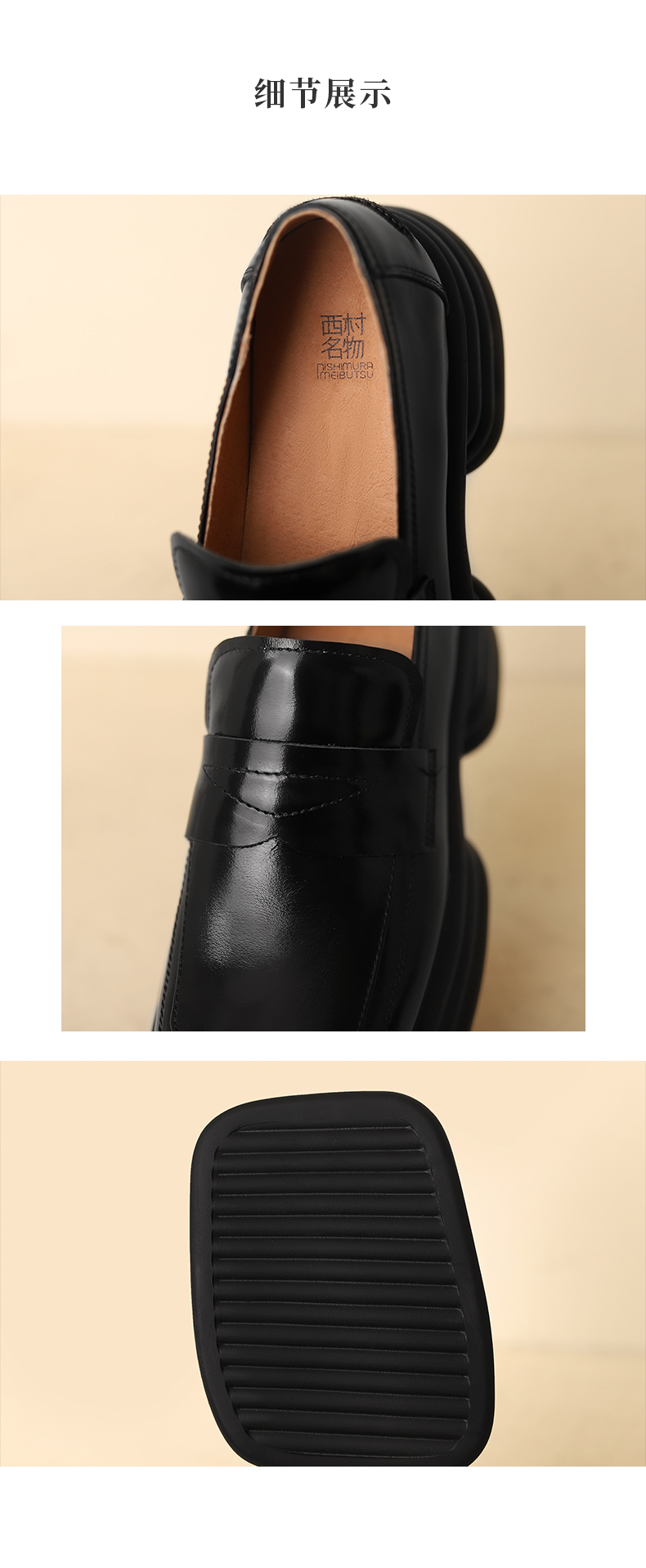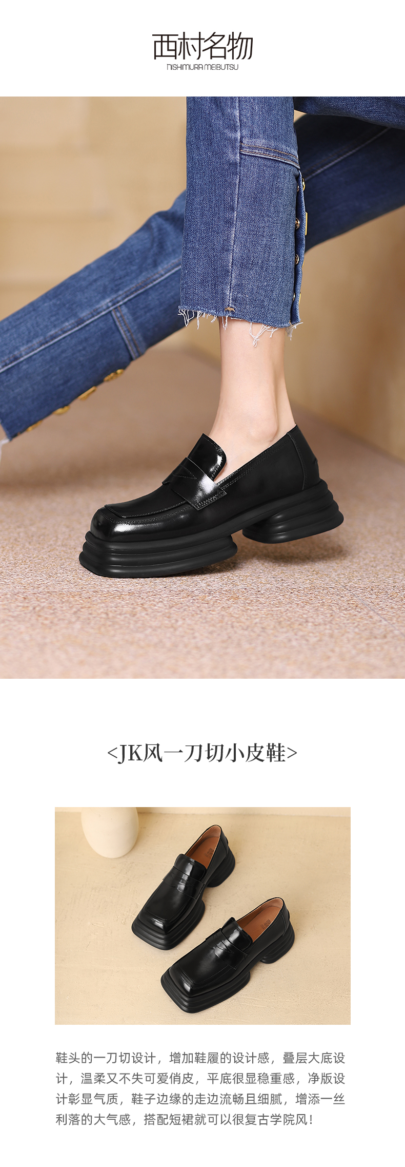 西村名物2022春季新款乐福鞋复古英伦小皮鞋方头单鞋学院风T22AM16741
