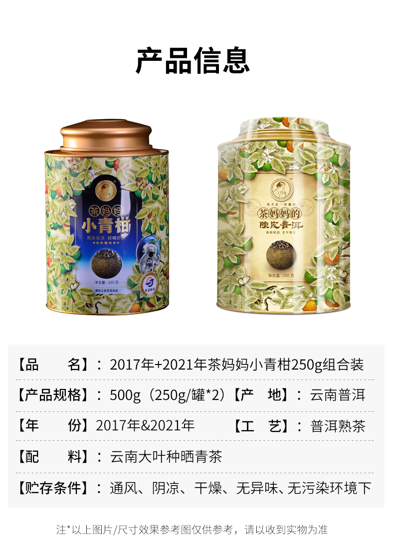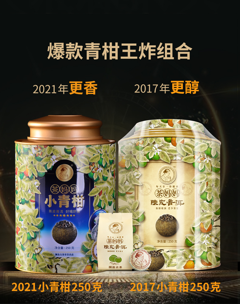 澜沧古茶2017年茶妈妈小青柑250g+2021茶妈妈小青柑250g