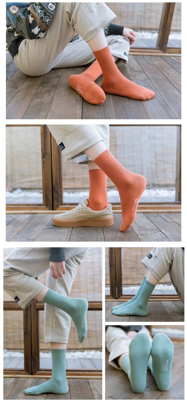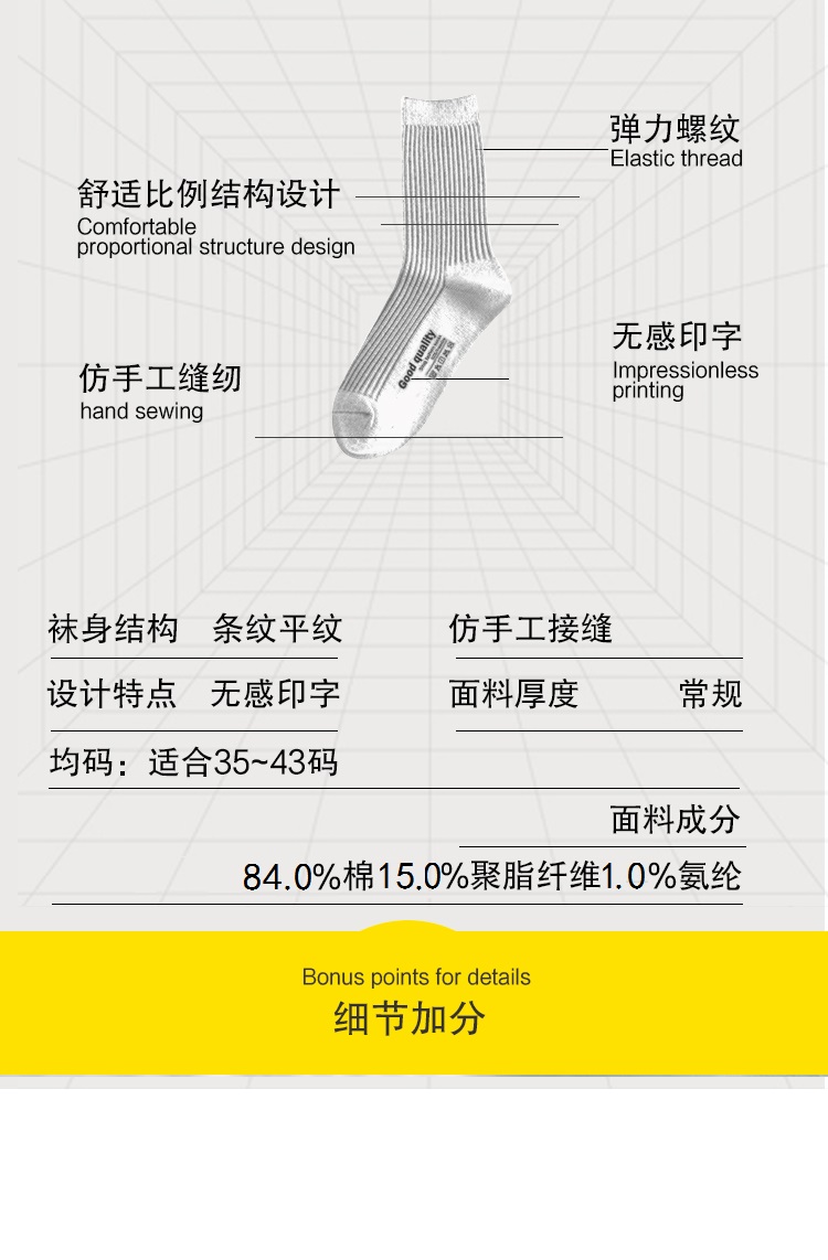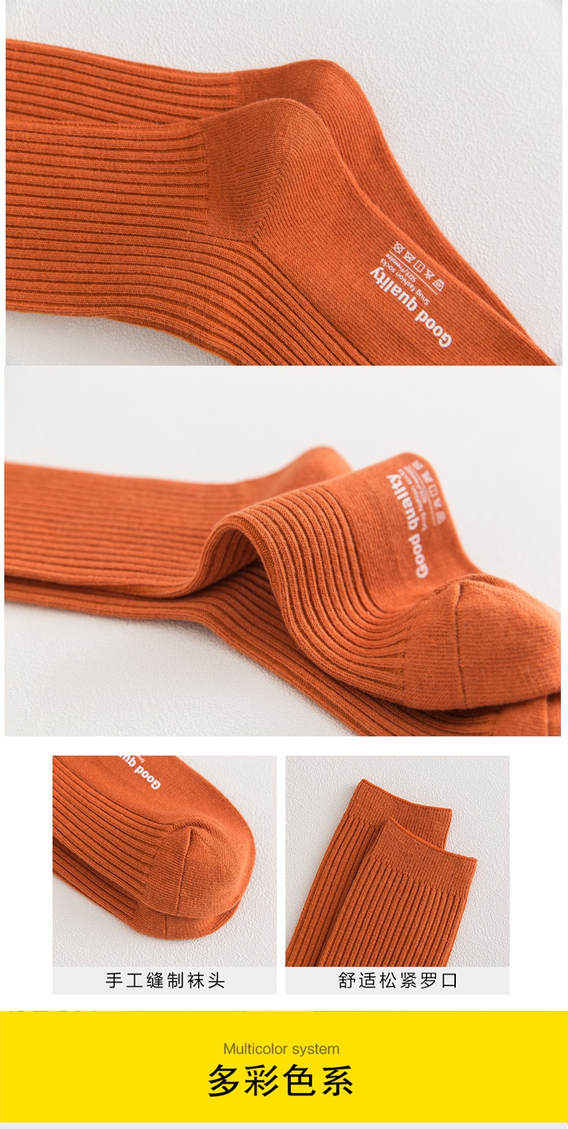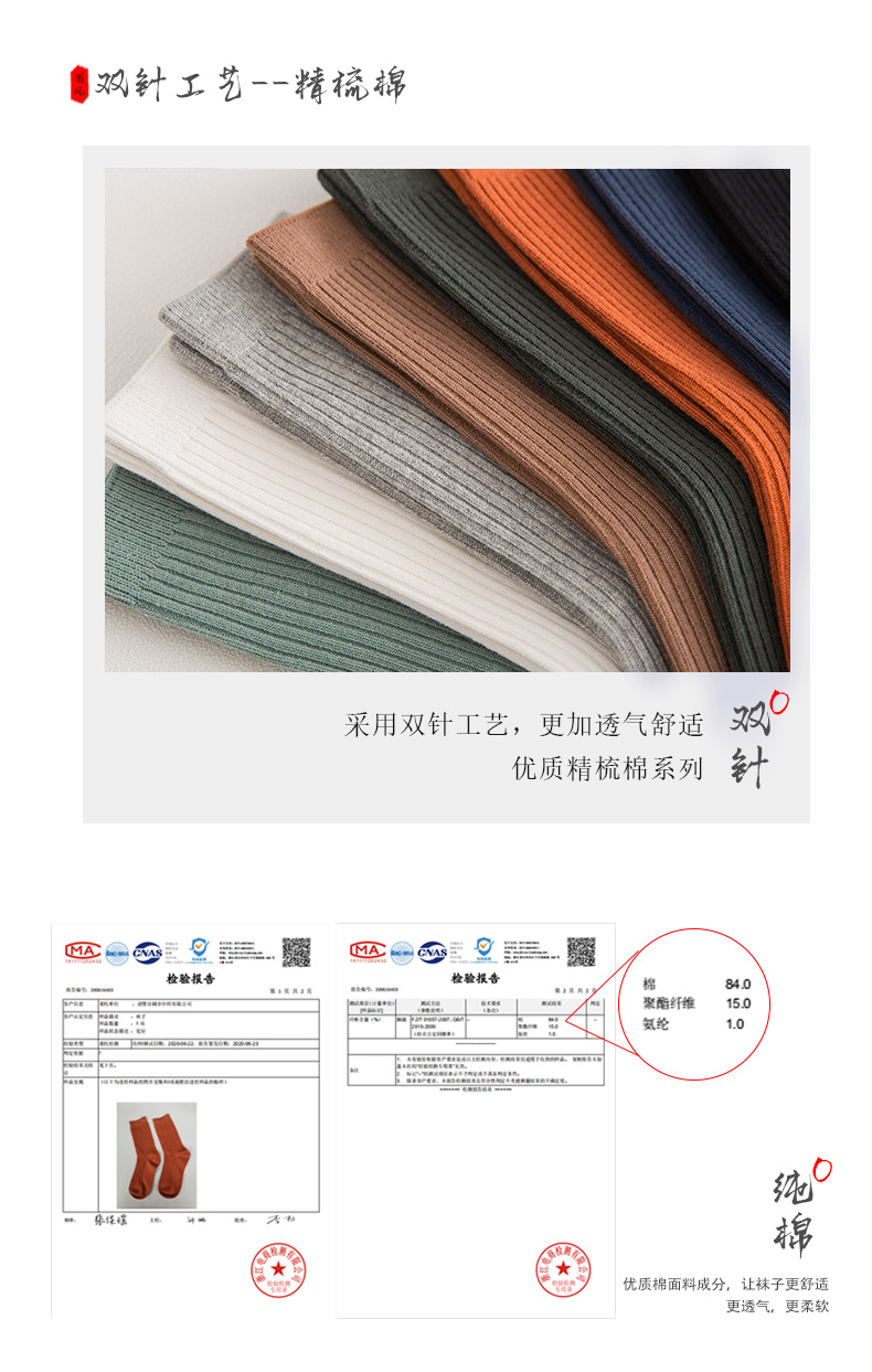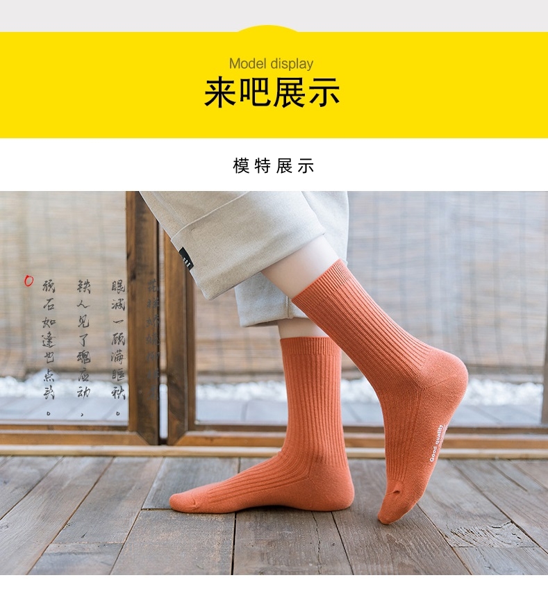 男女同款 四季棉袜【BAIDAMA 新疆纯棉螺纹袜】蕉N同款 船袜中筒长筒袜 多色可选 纯棉百搭款