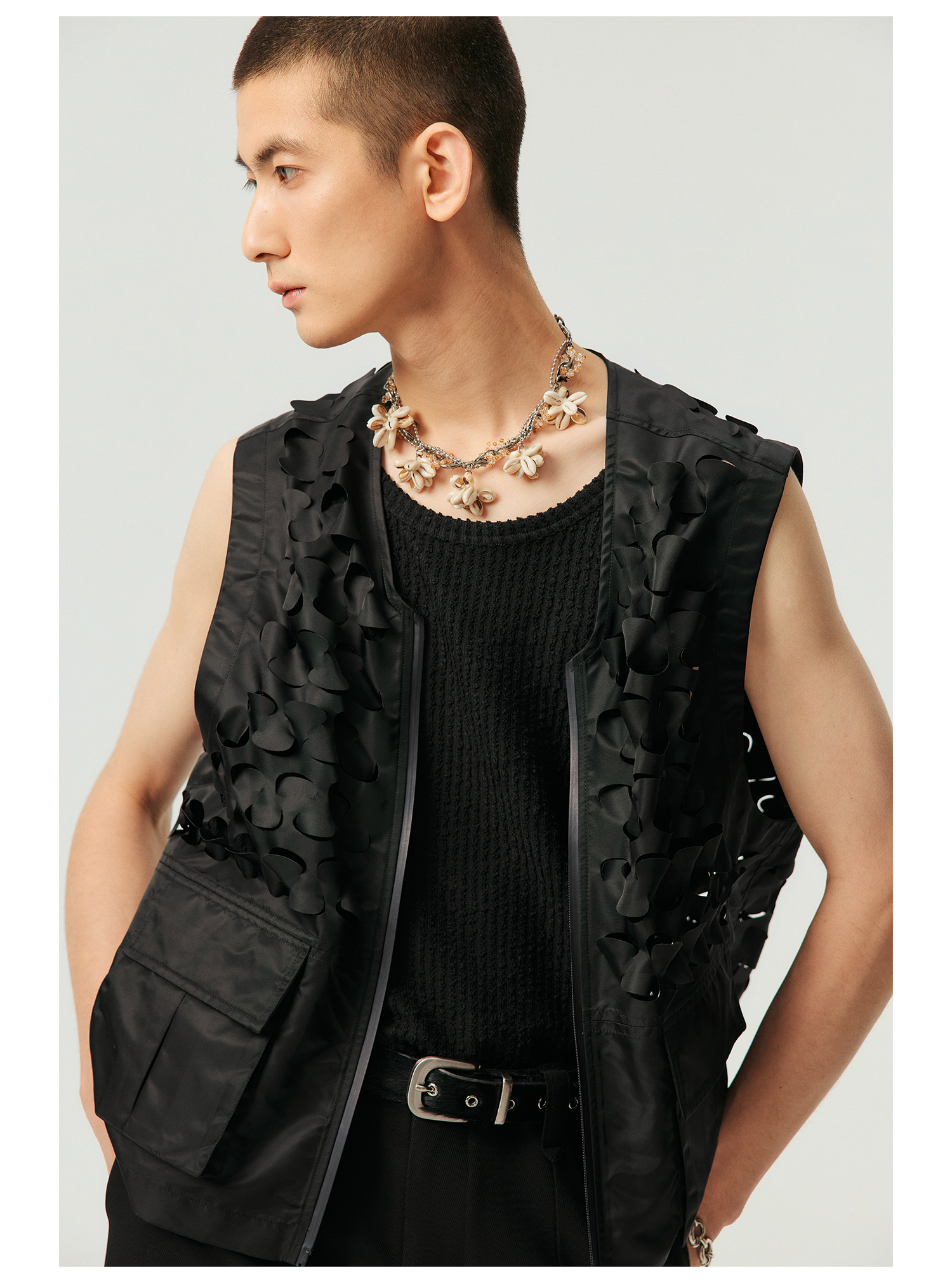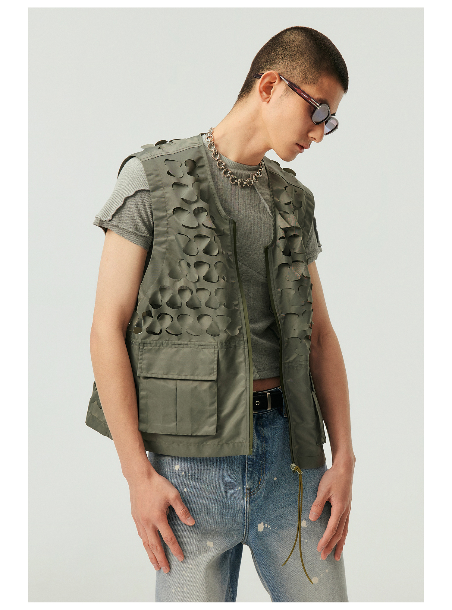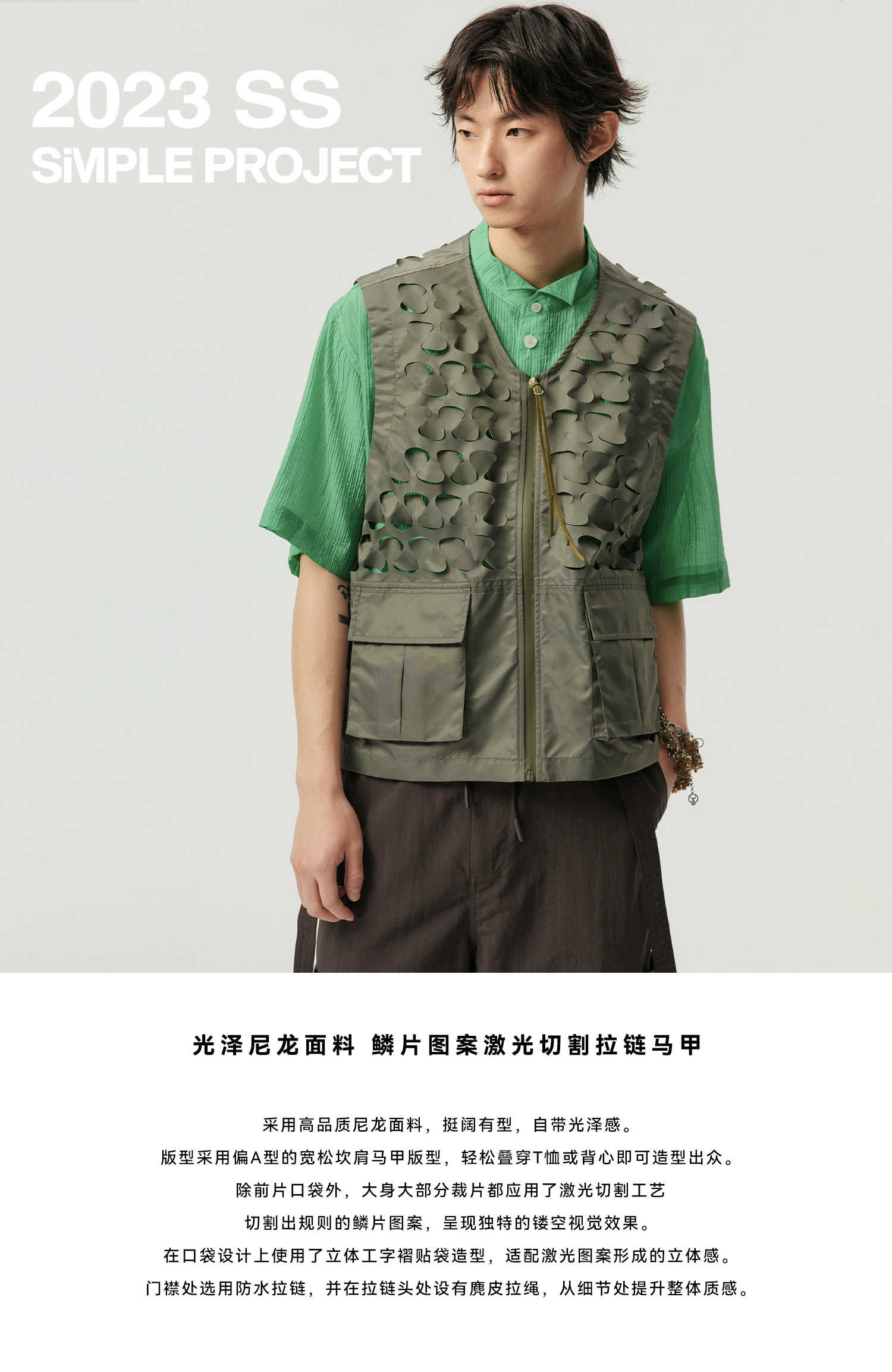 Simple Project/Y2315/鳞片图案激光切割拉链马甲