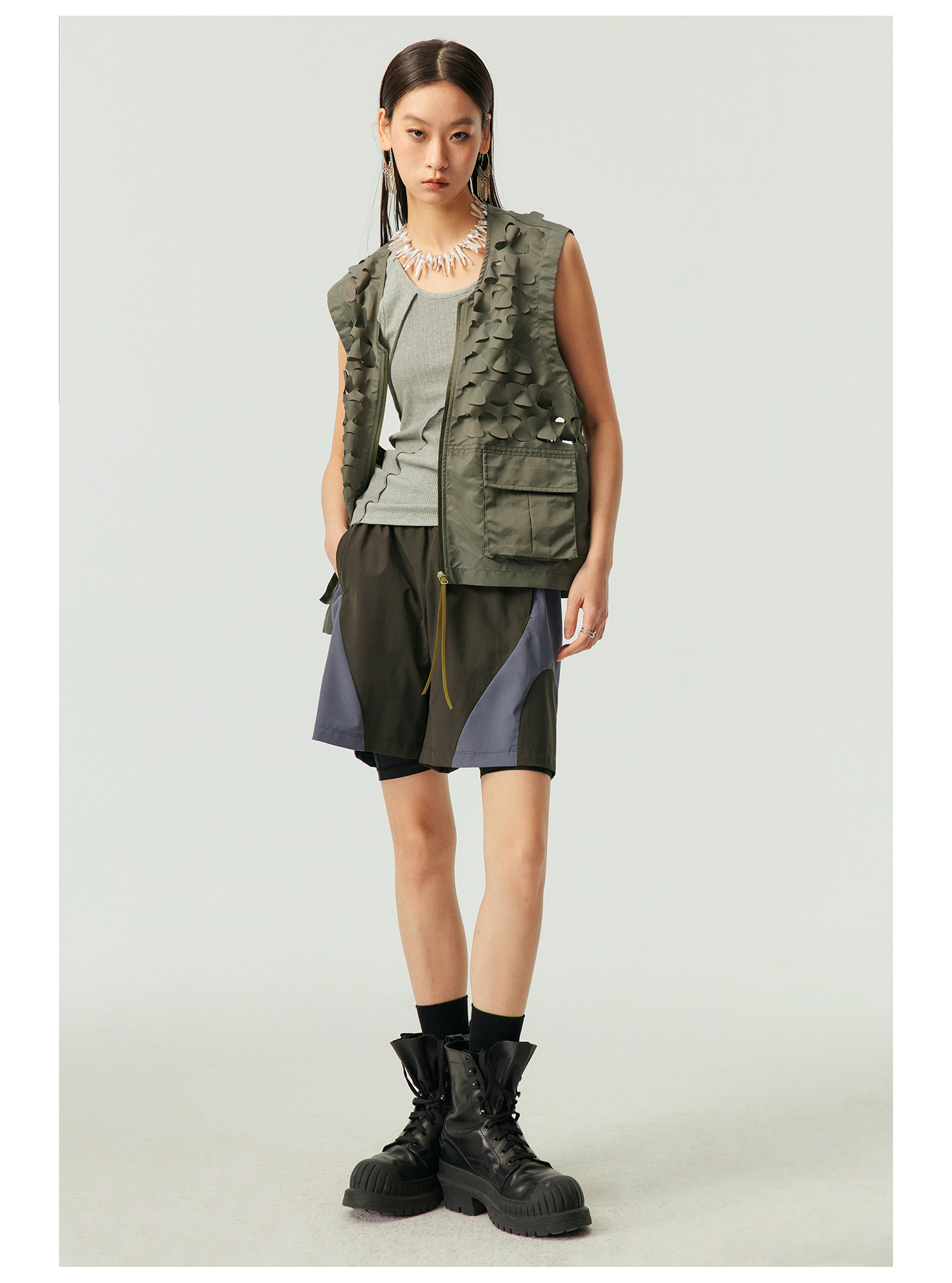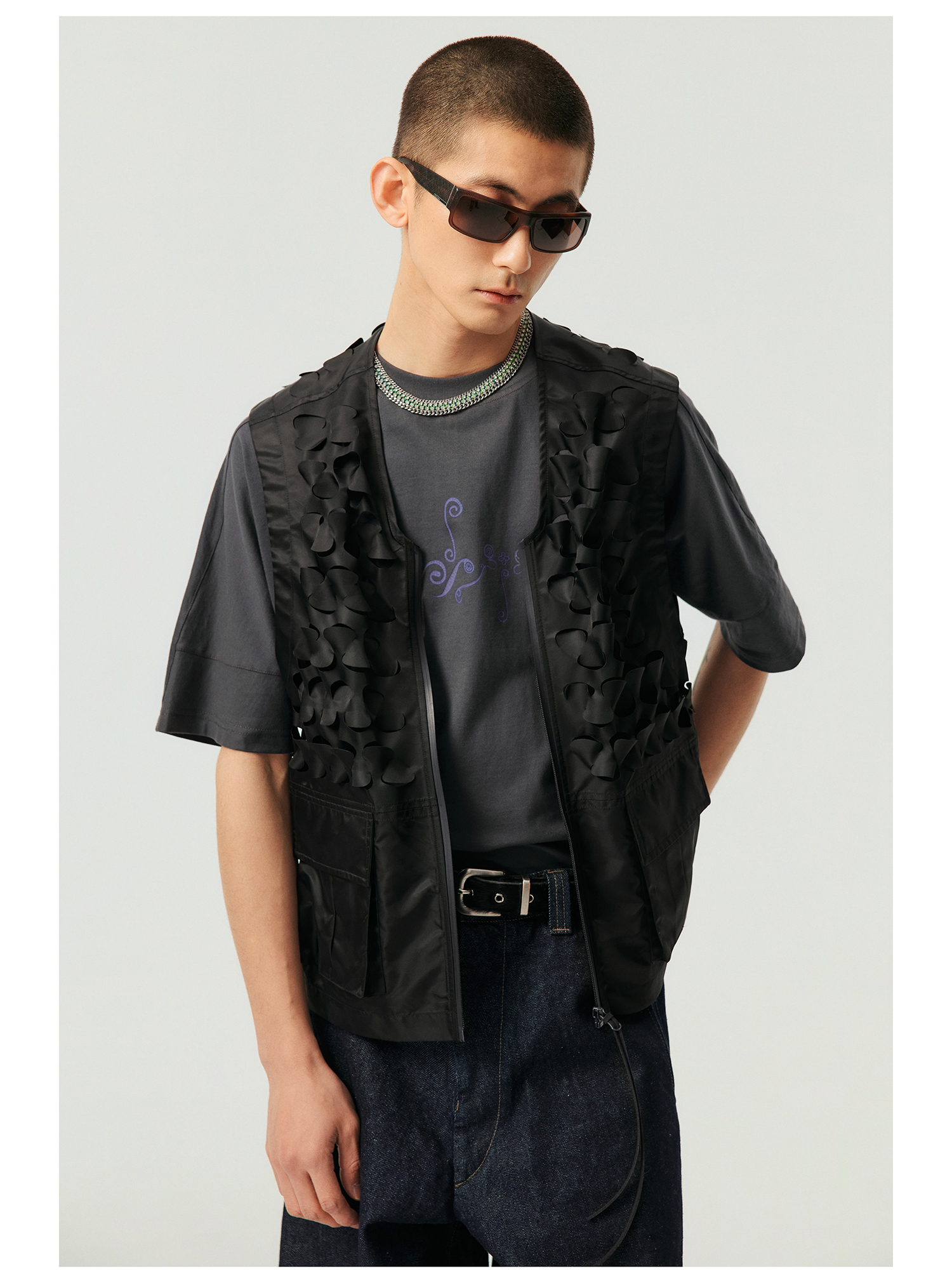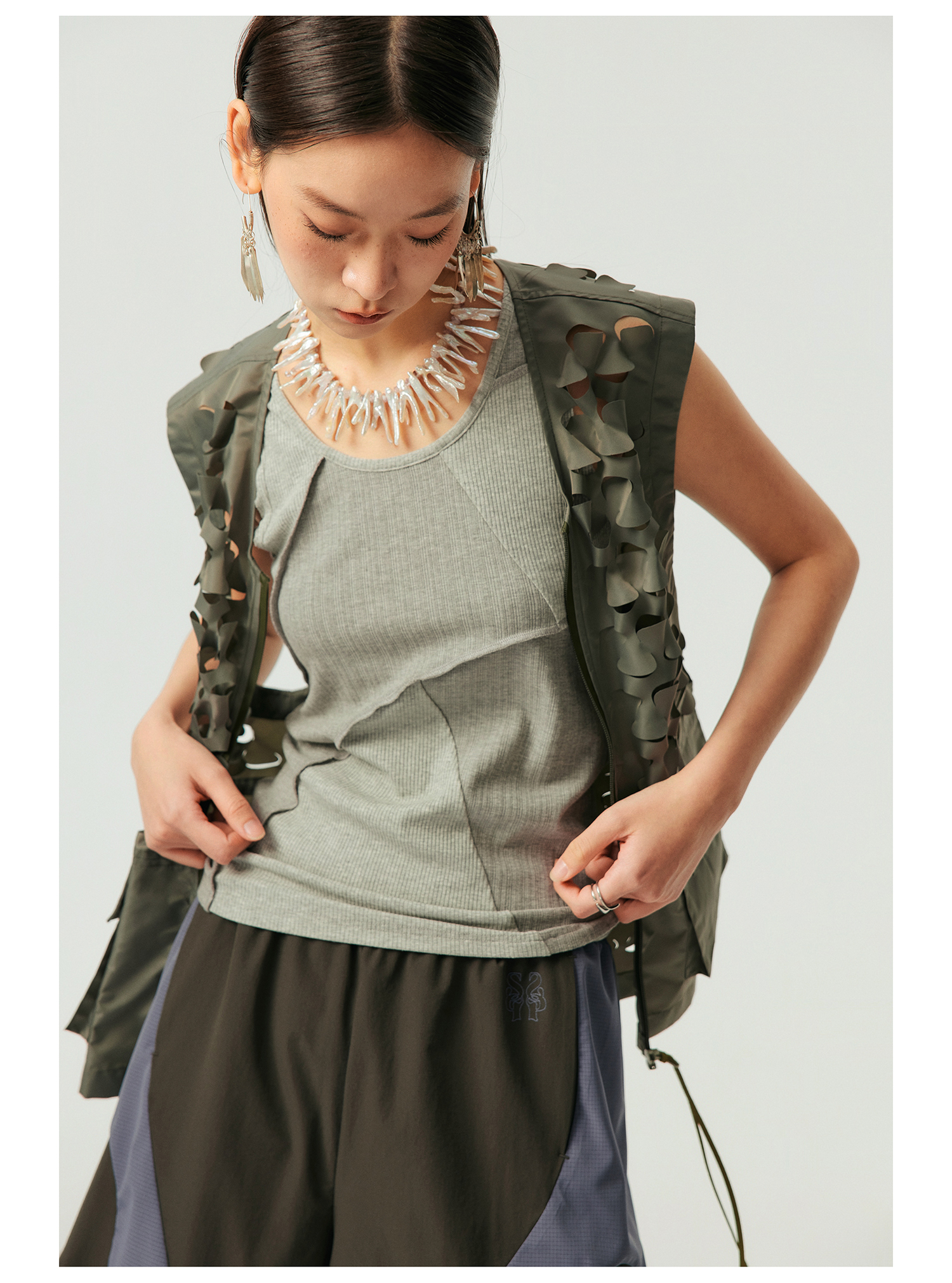 Simple Project/Y2315/鳞片图案激光切割拉链马甲