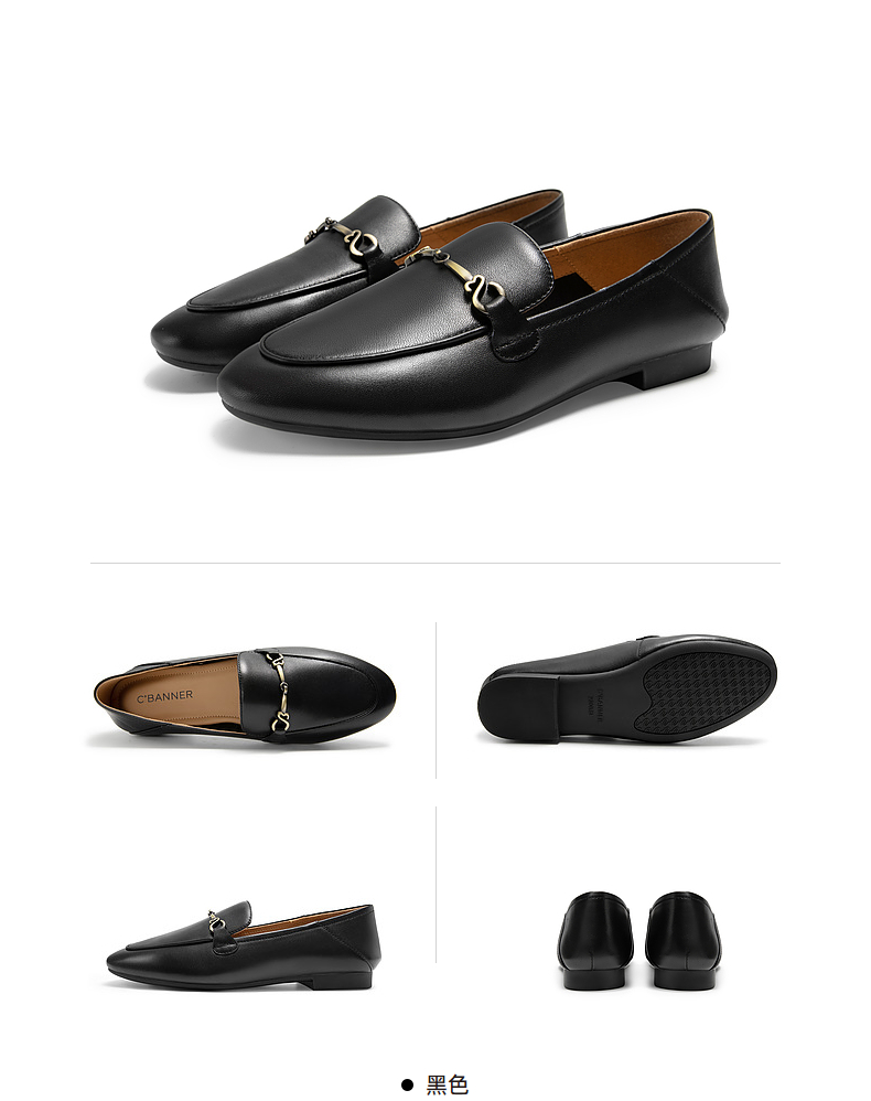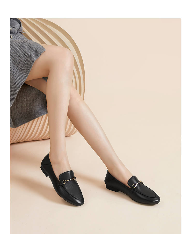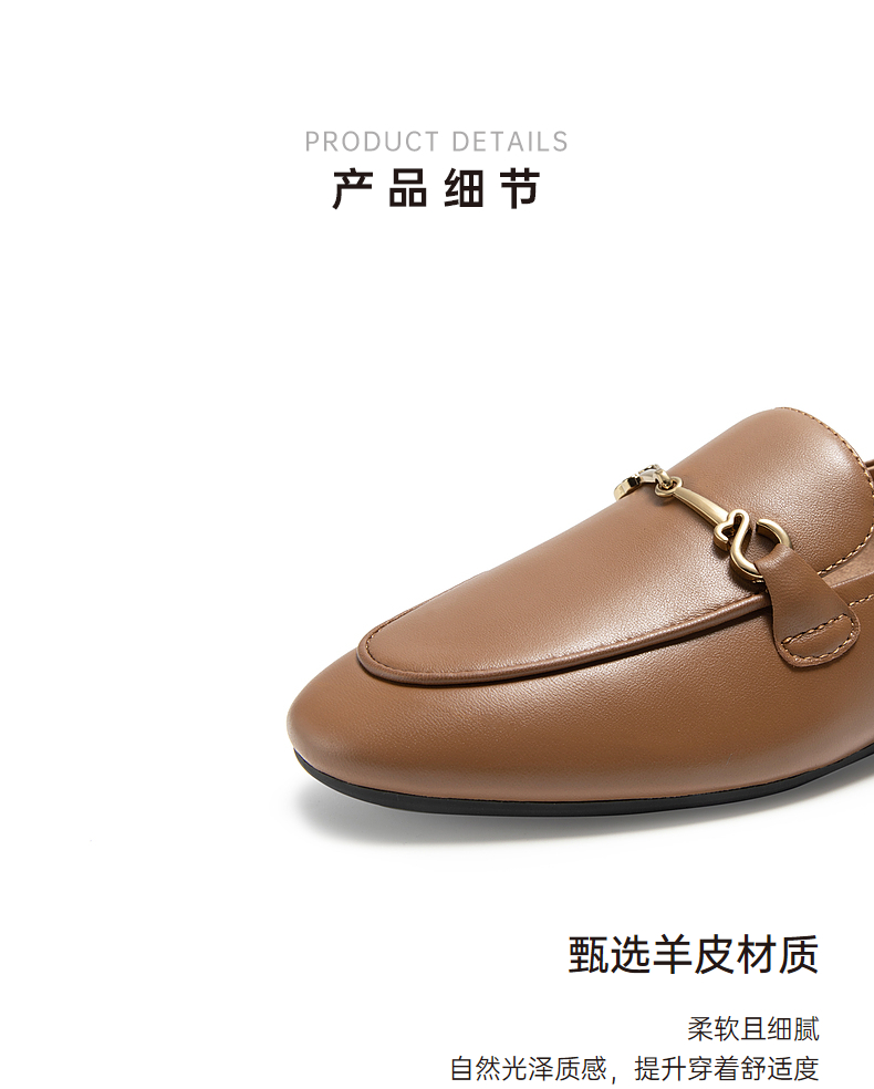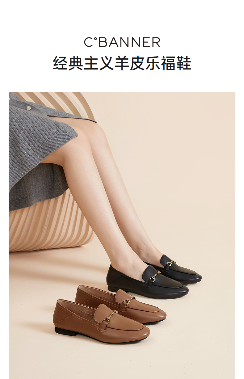 千百度羊皮平底乐福鞋女款秋季通勤浅口单鞋两穿透气舒适A24442765