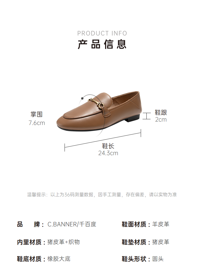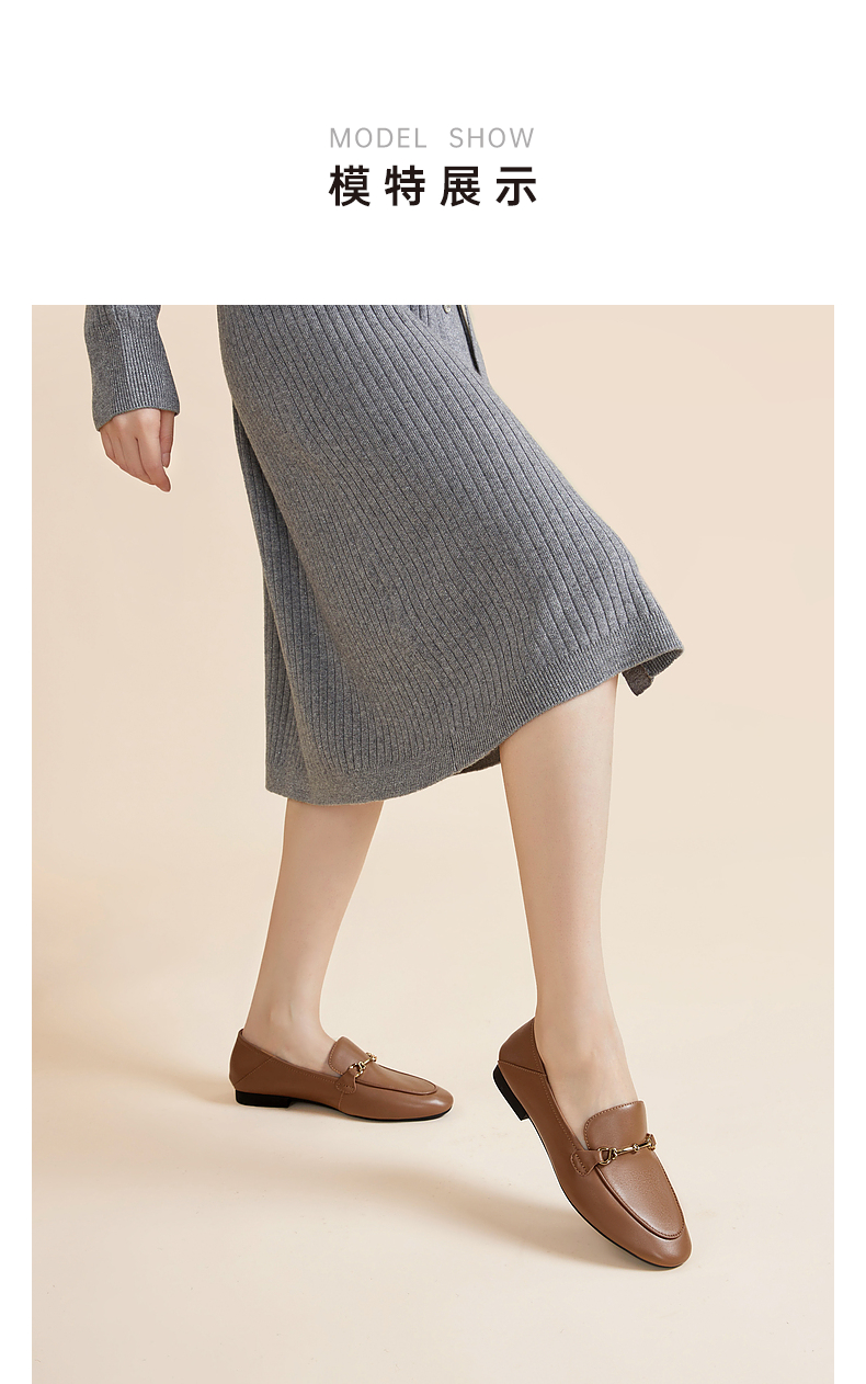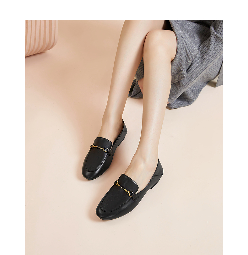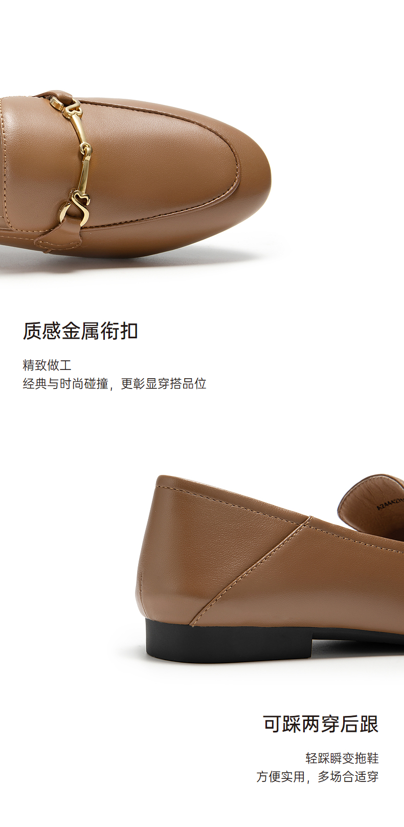 千百度羊皮平底乐福鞋女款秋季通勤浅口单鞋两穿透气舒适A24442765