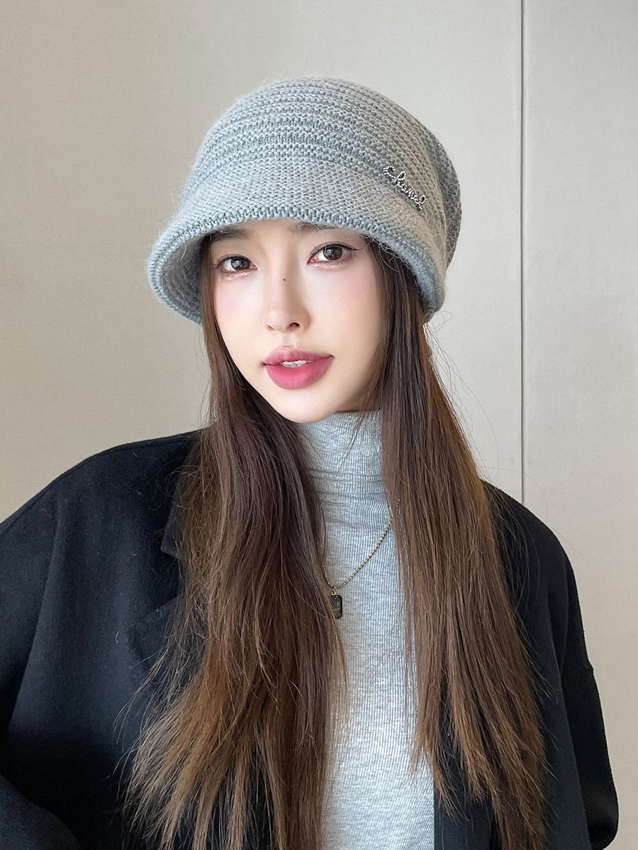女双层兔毛针织帽