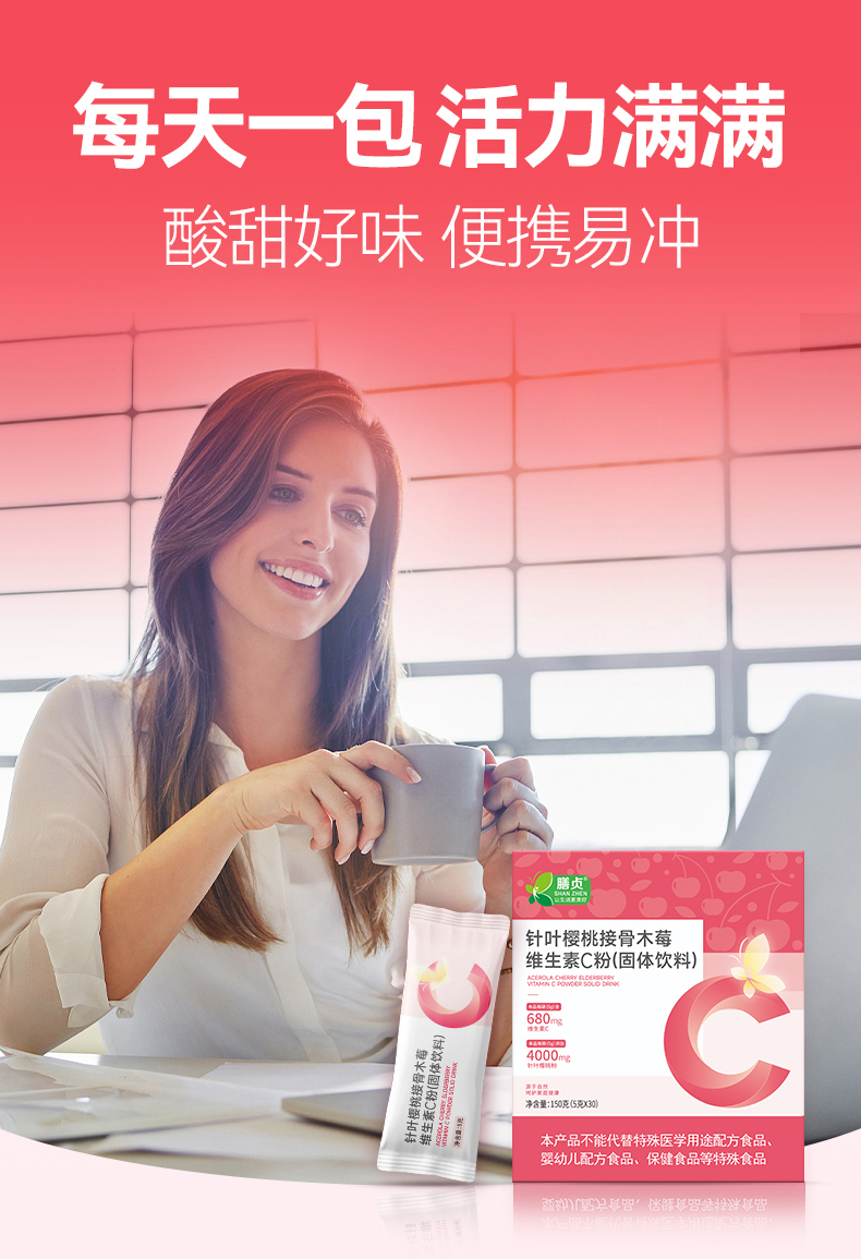 【店选】针叶樱桃接骨木莓 维生素C粉固体饮料 5g*30袋/盒