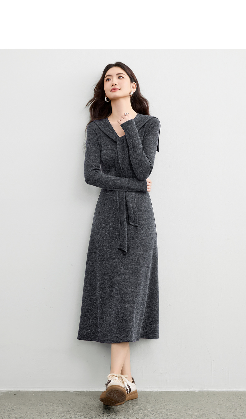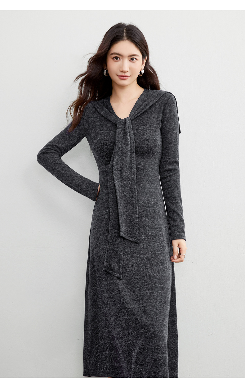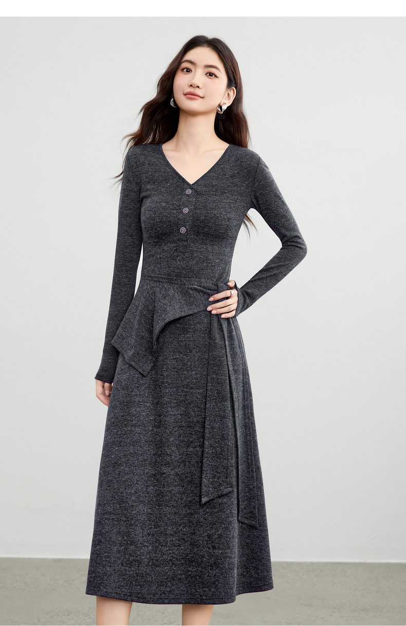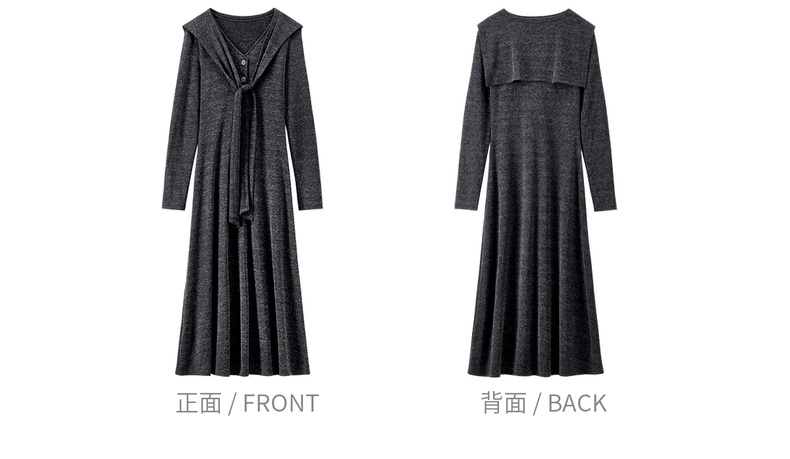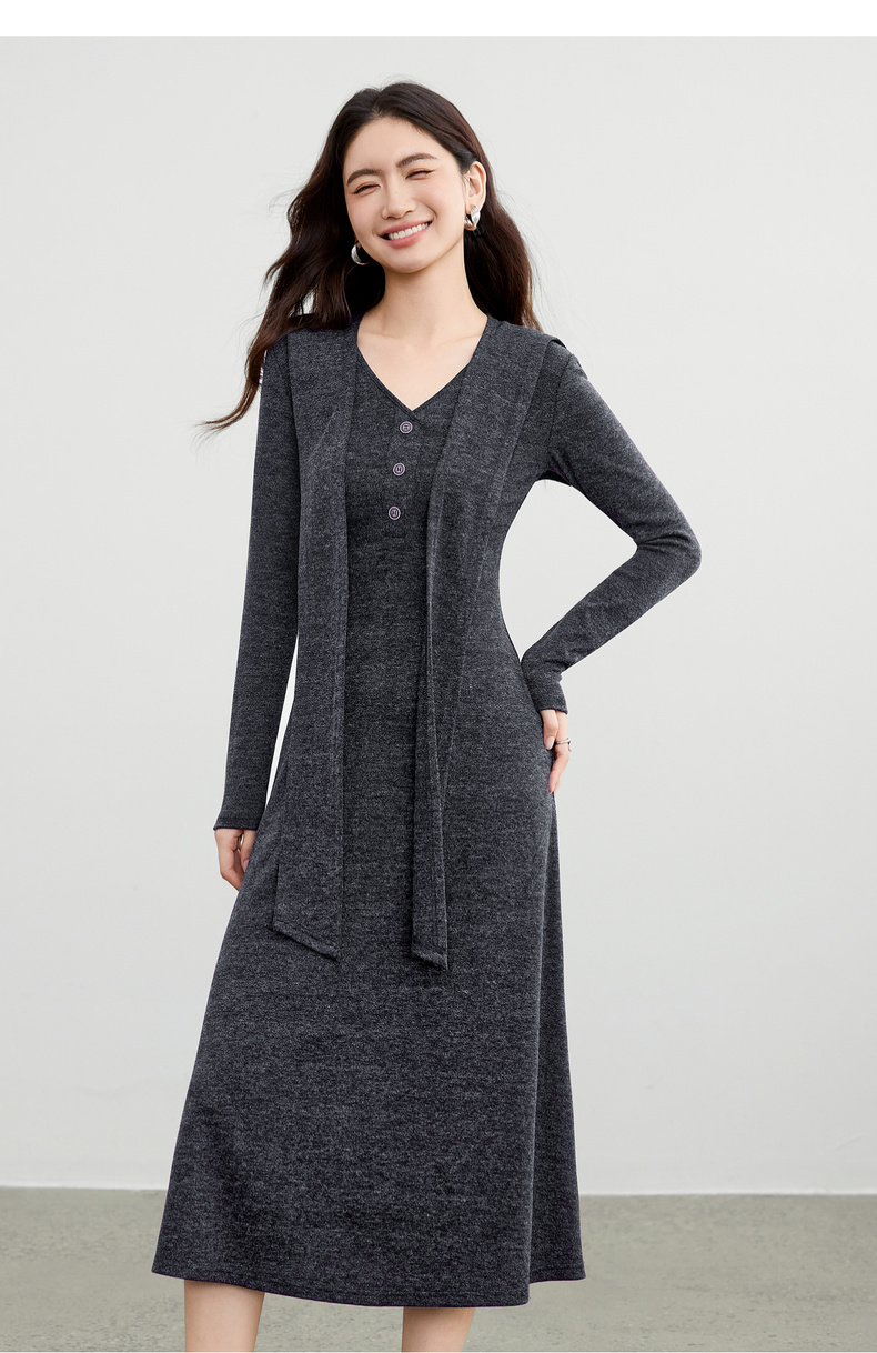 【内购】【三种穿法】通勤V领撞色扣装饰可拆卸披肩弹力针织长款A字连衣裙-153LI3104