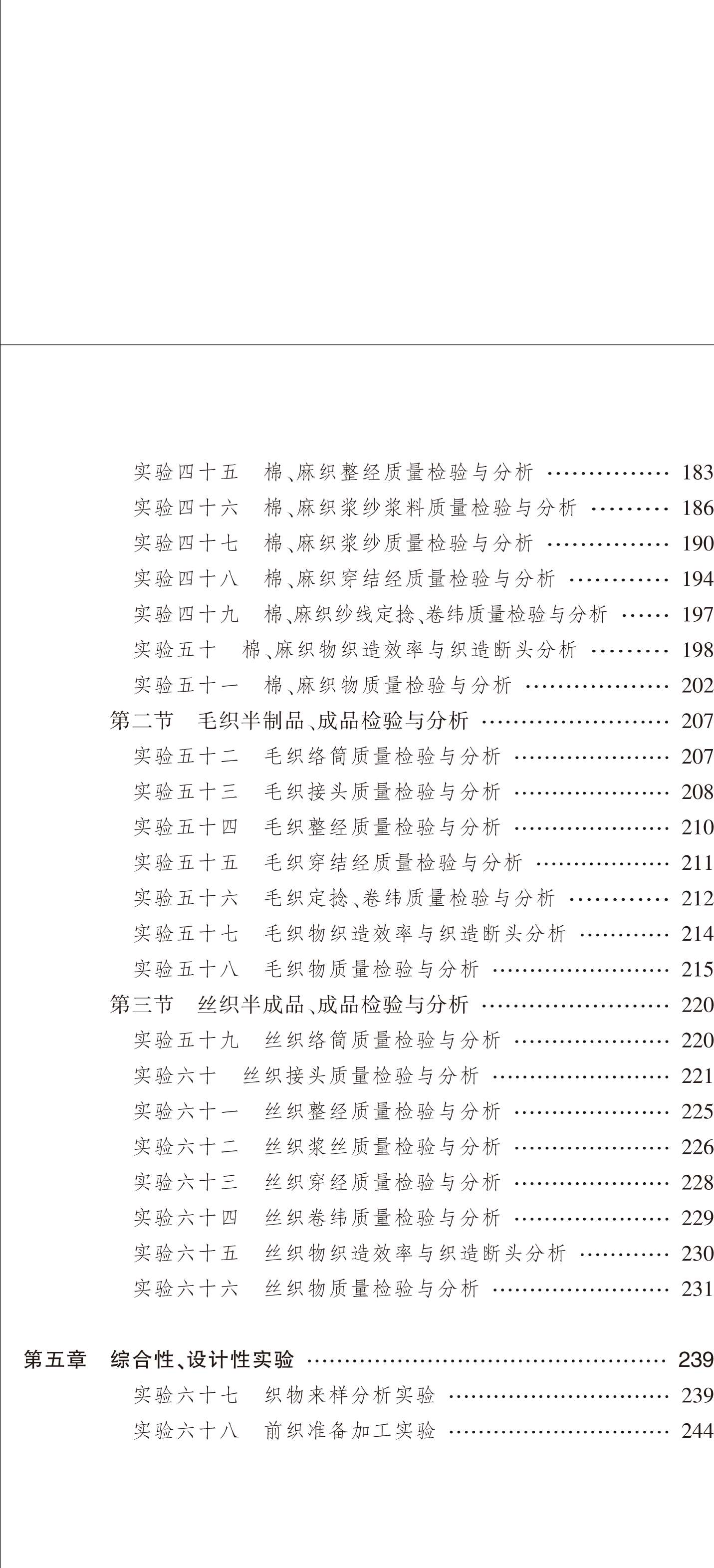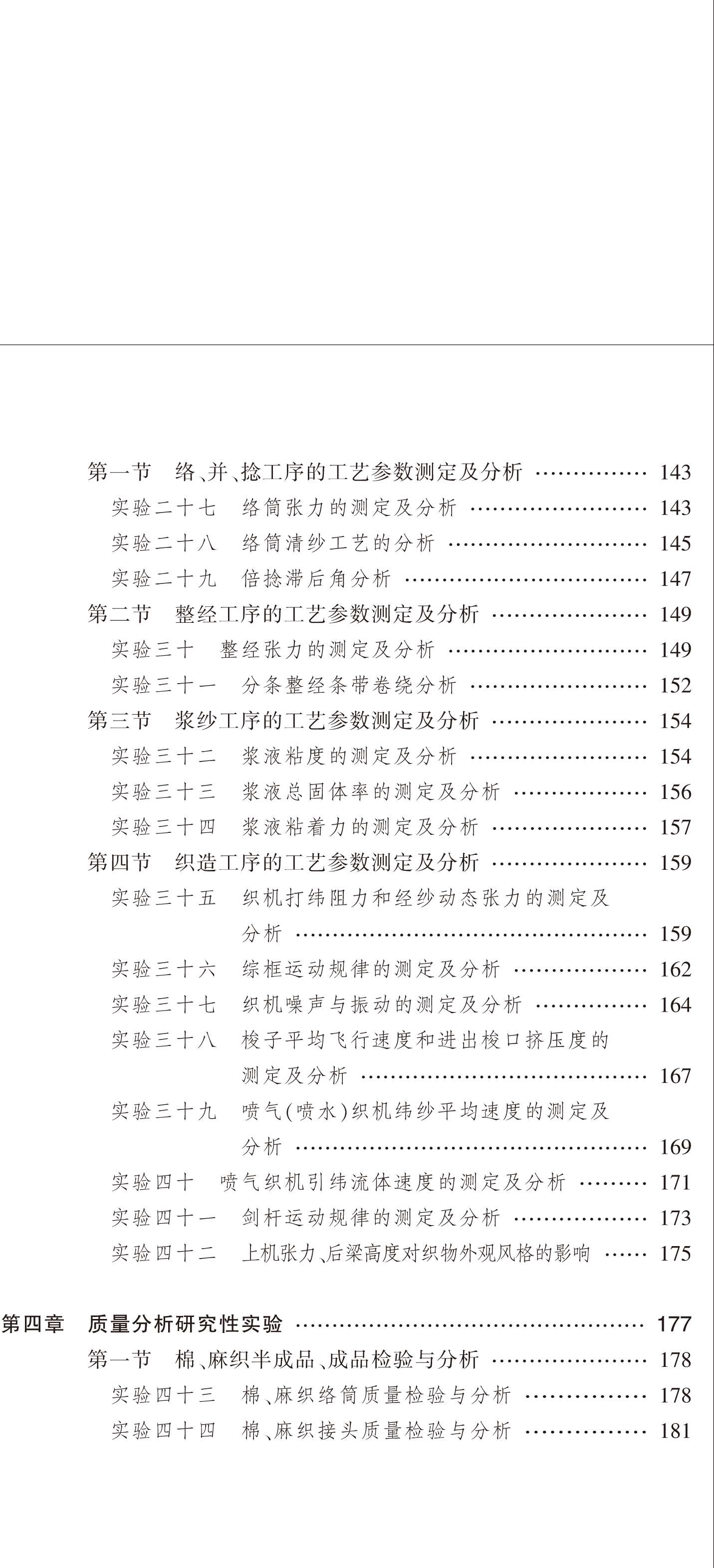《机织实验教程(第2版)》是“十二五”普通高等教育本科*规划教材,内容括机织基础知识(基础实验方法及实验仪器设备简介、应用数理统计基础)、机织工程的认识性实验、工艺分析研究性实验、质量分析研究性实验和综合性、设计性实验等。内容系统、全面,有较强的实践性和可操作性。