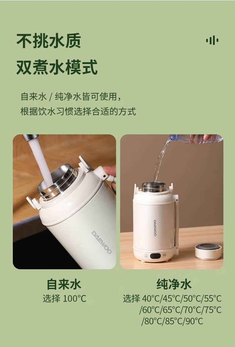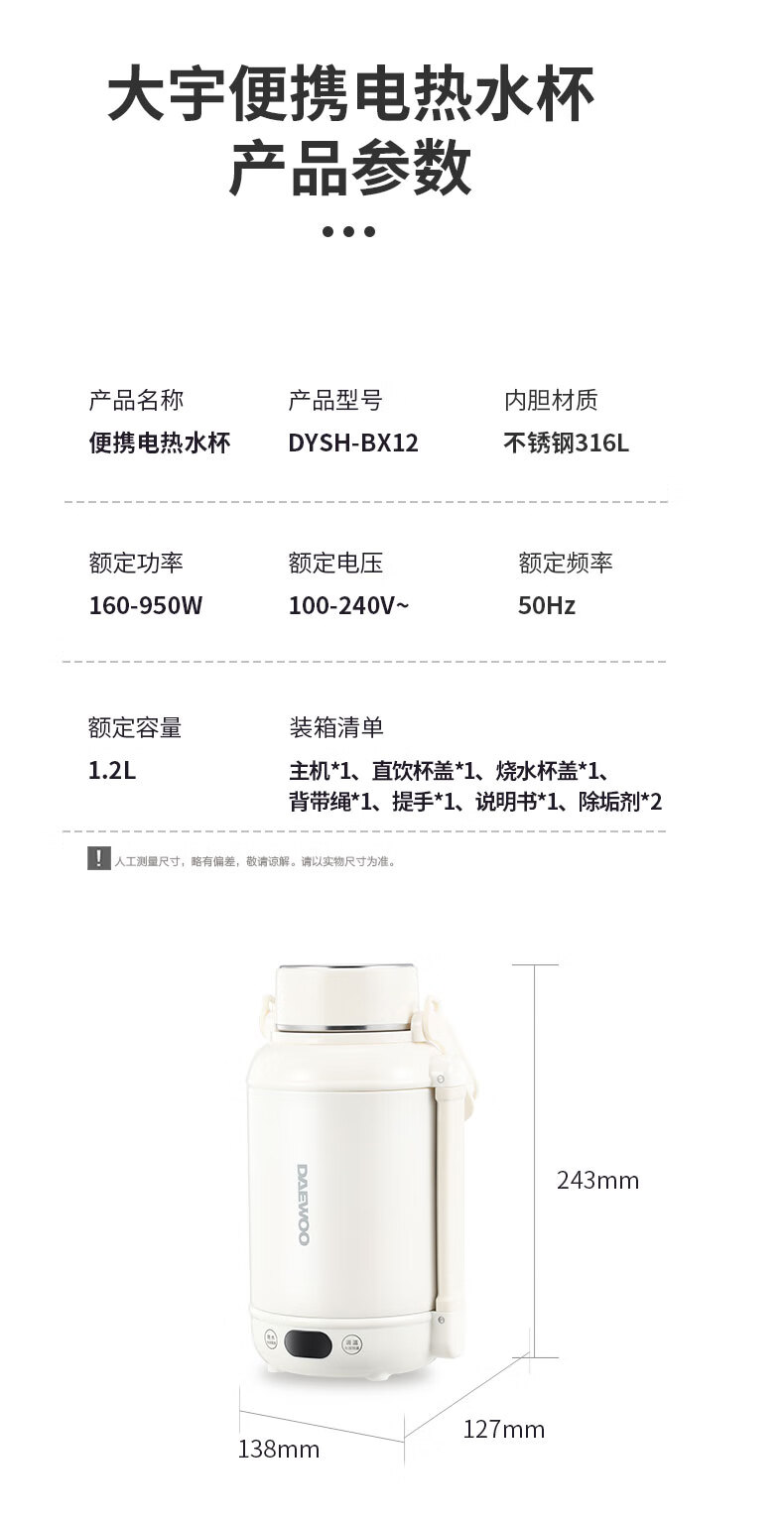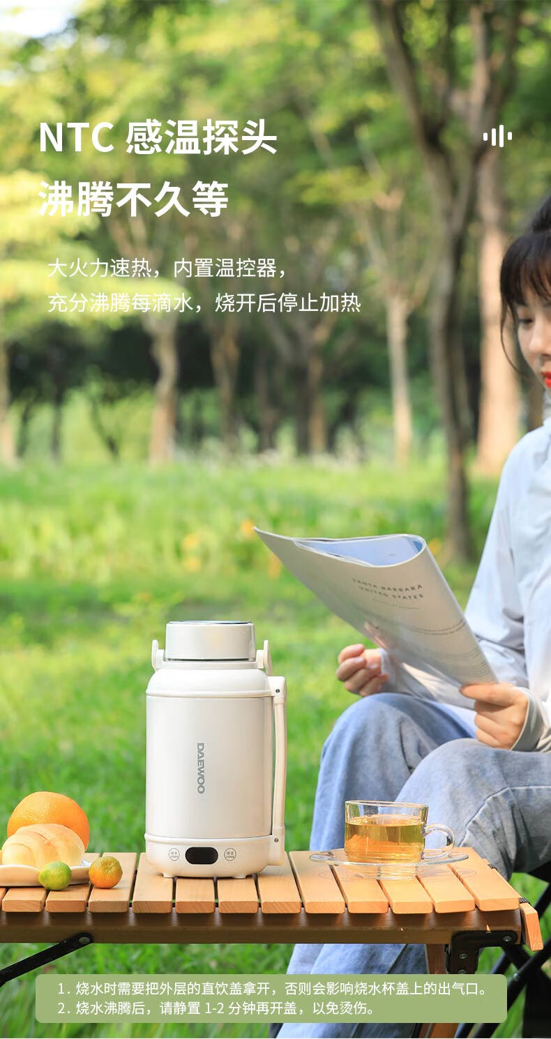 大宇(DAEWOO) 便携式迷你烧水杯家用旅行泡茶电热水杯DYSH-BX12 DYSH-BX12科洛白 1.2L