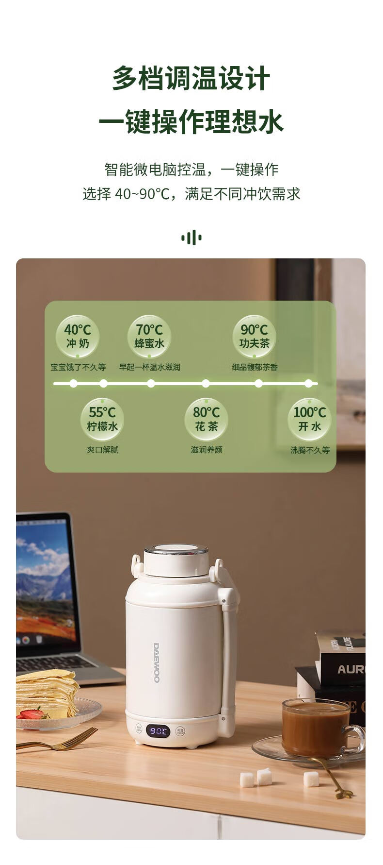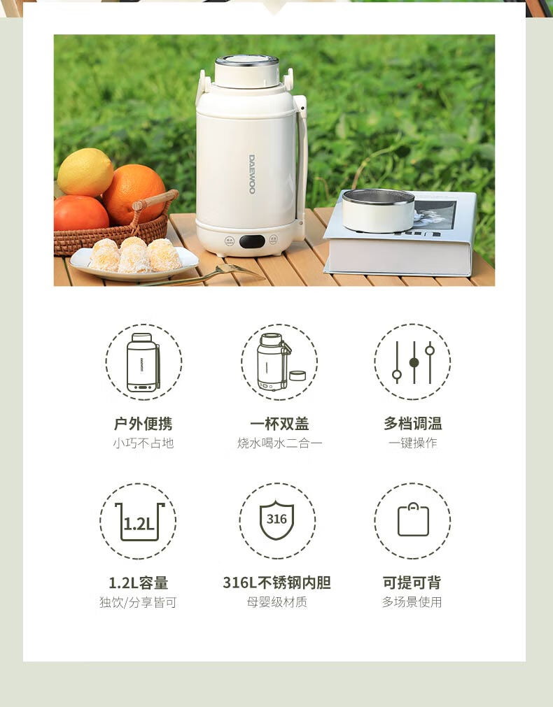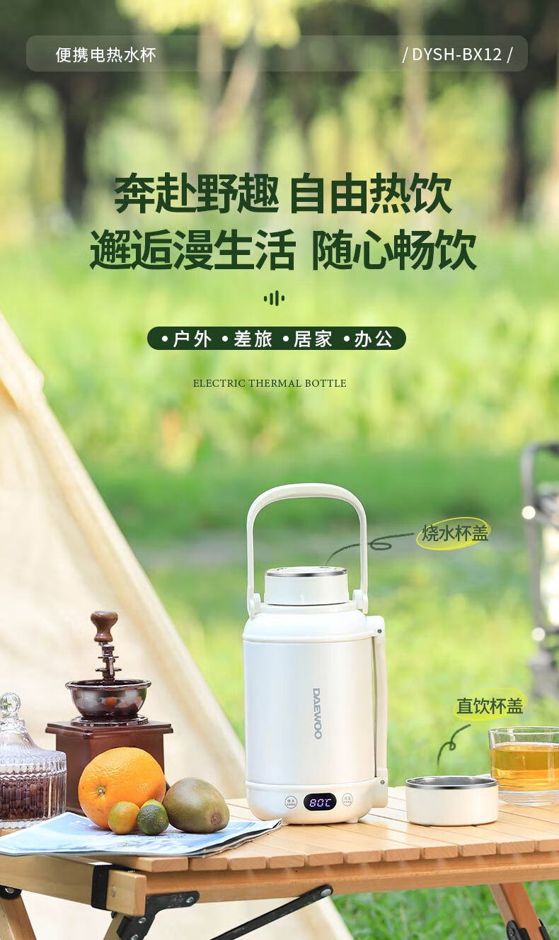大宇(DAEWOO) 便携式迷你烧水杯家用旅行泡茶电热水杯DYSH-BX12 DYSH-BX12科洛白 1.2L