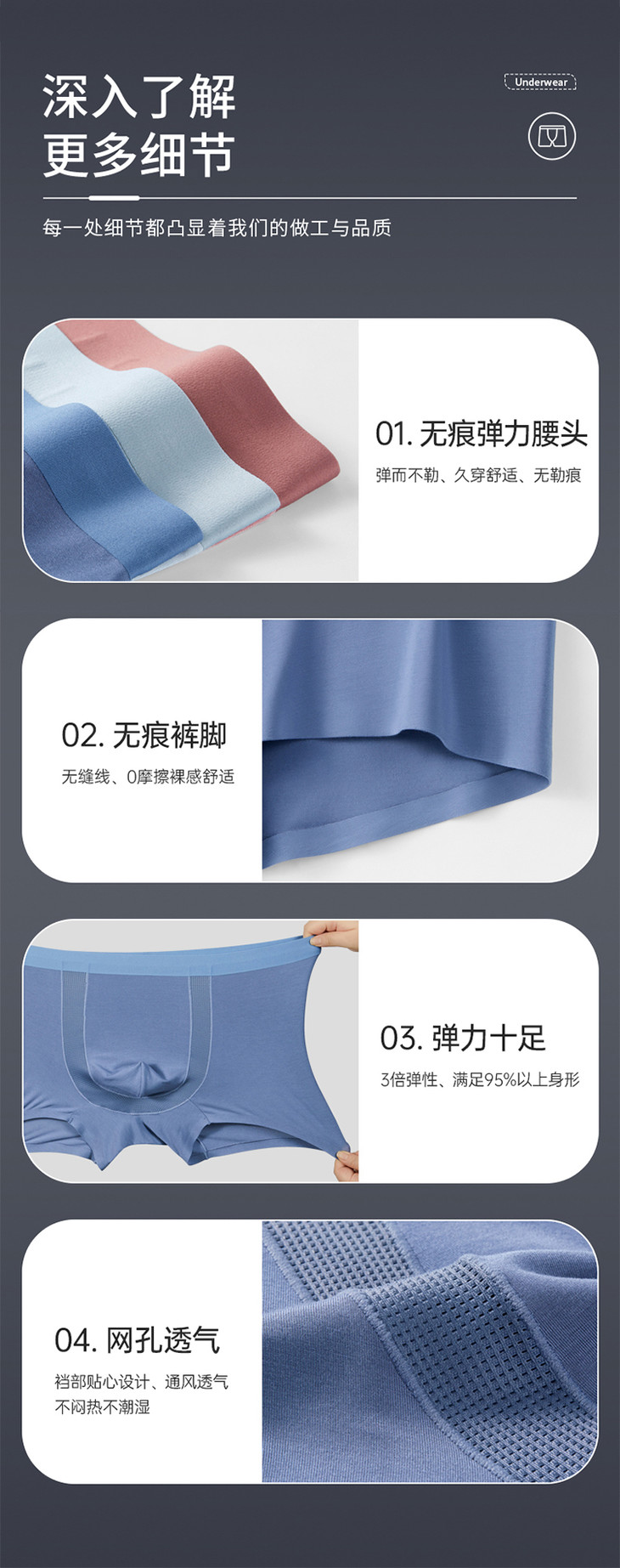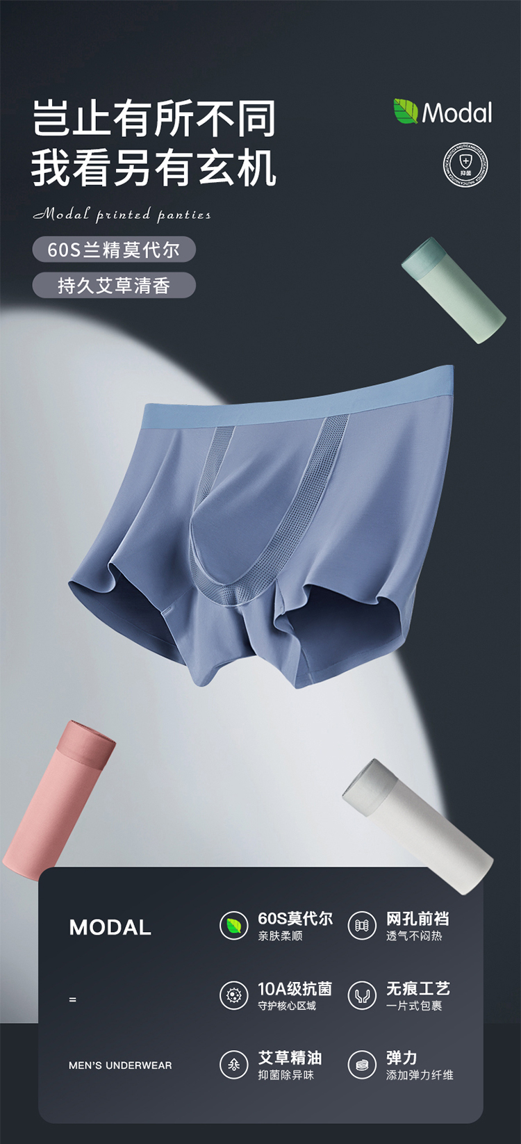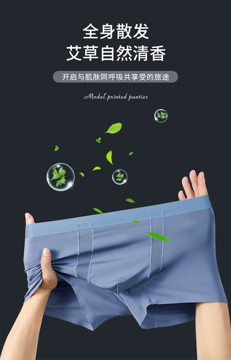 【实付满399送保温杯】【10A抑菌60S莫代尔艾草空调内裤】透气顺滑男士四角短裤无痕平角裤衩ST502