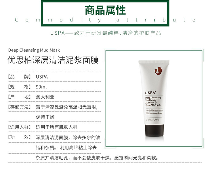 【保税仓】USPA优思柏深层清洁泥浆面膜90ml支
