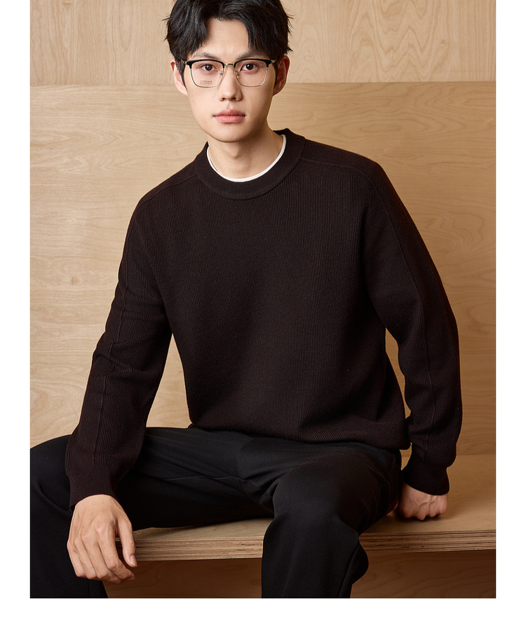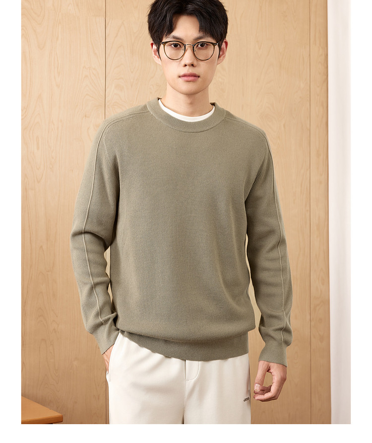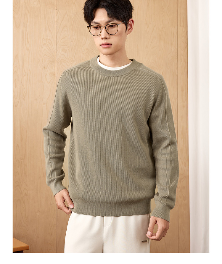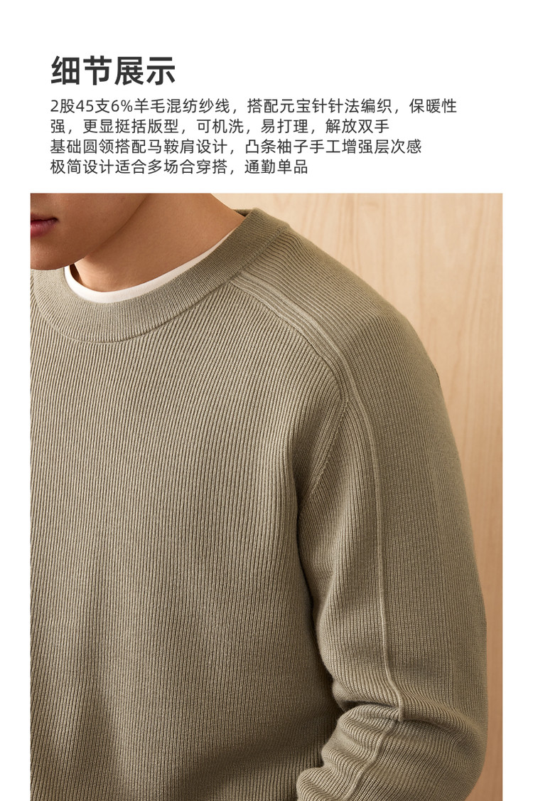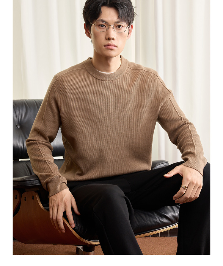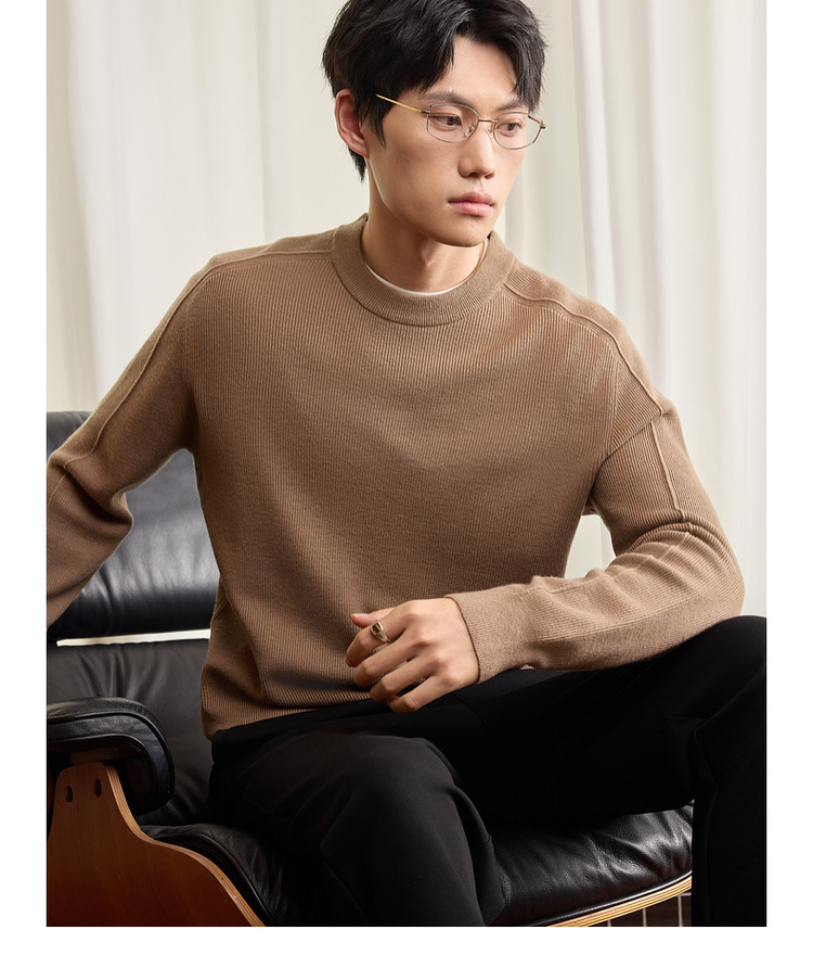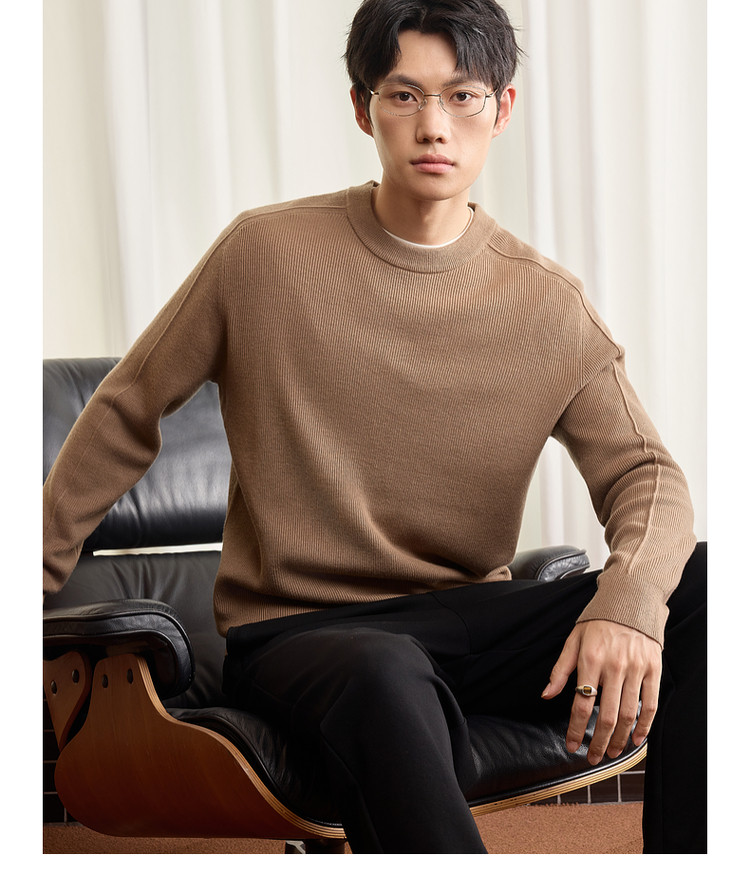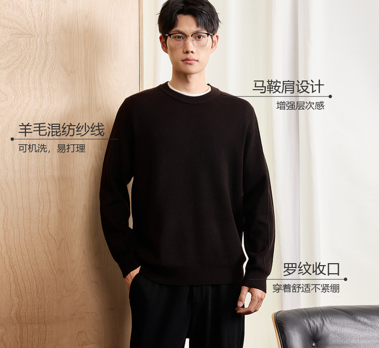 墨麦客男装基础纯色圆领毛衣男2025秋季新款简约马鞍肩针织衫男士
