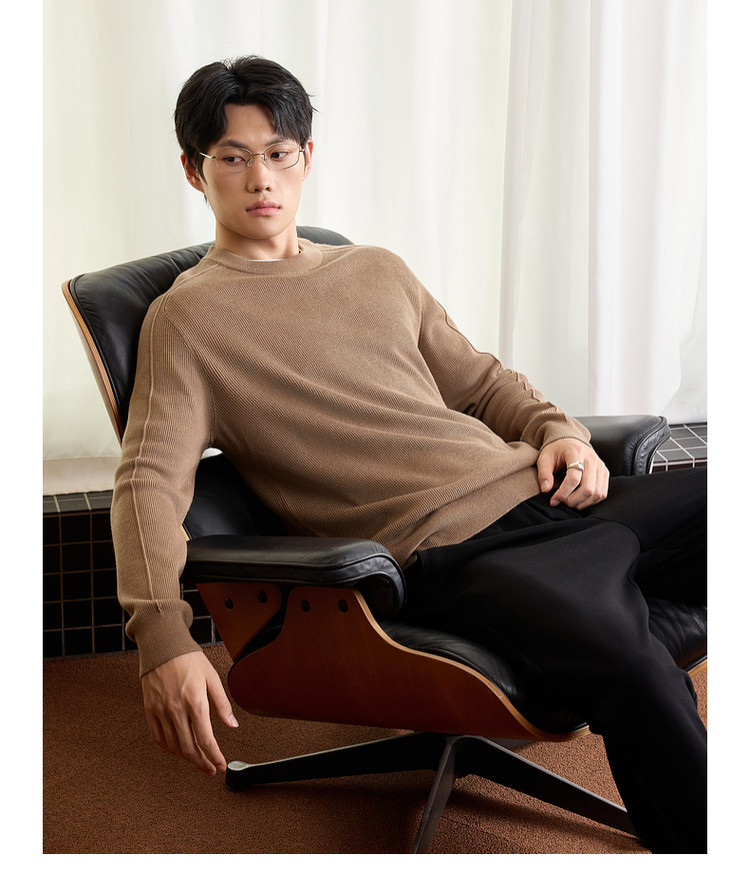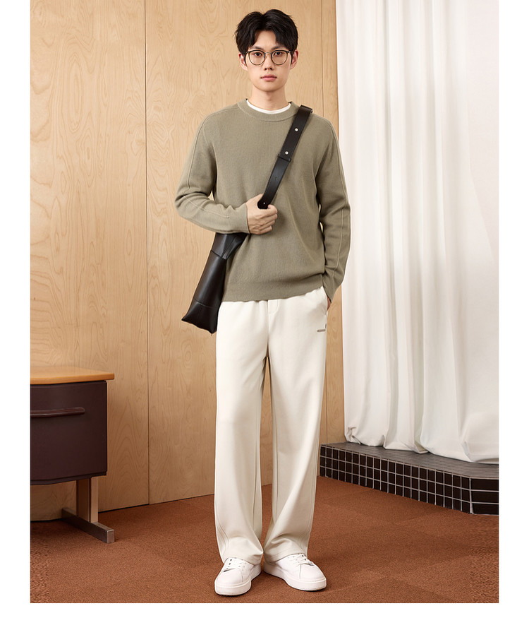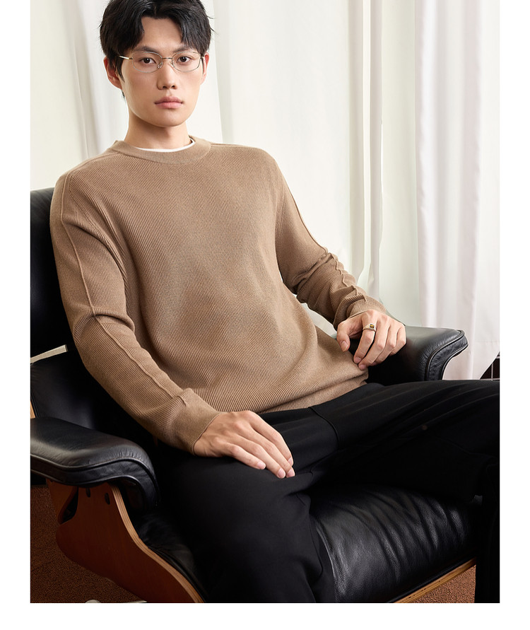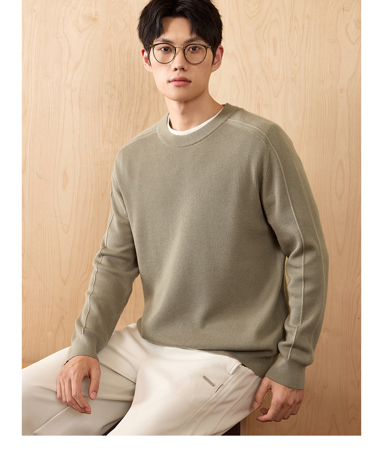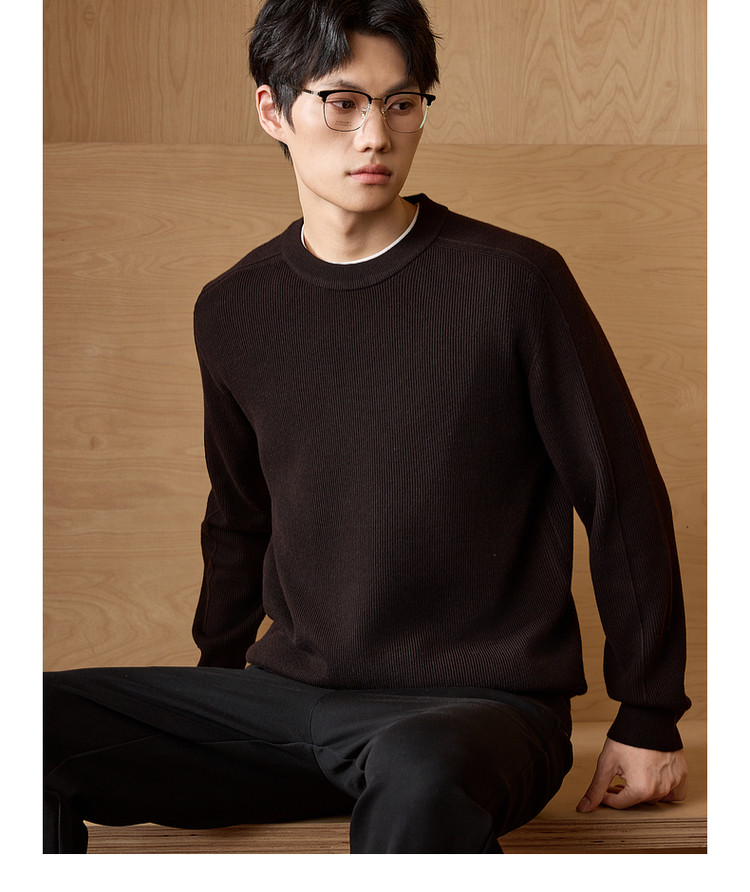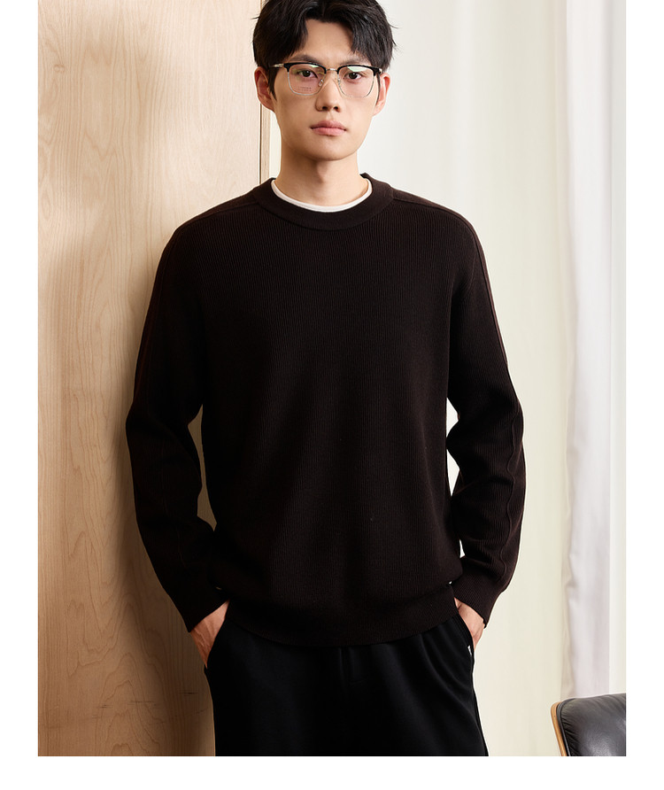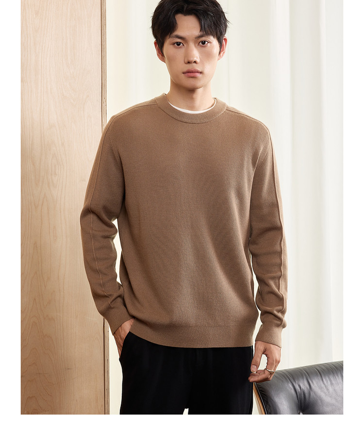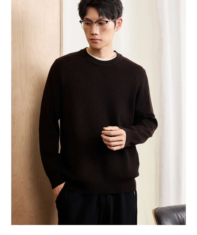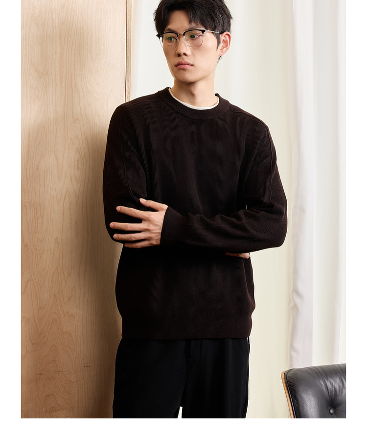 墨麦客男装基础纯色圆领毛衣男2025秋季新款简约马鞍肩针织衫男士
