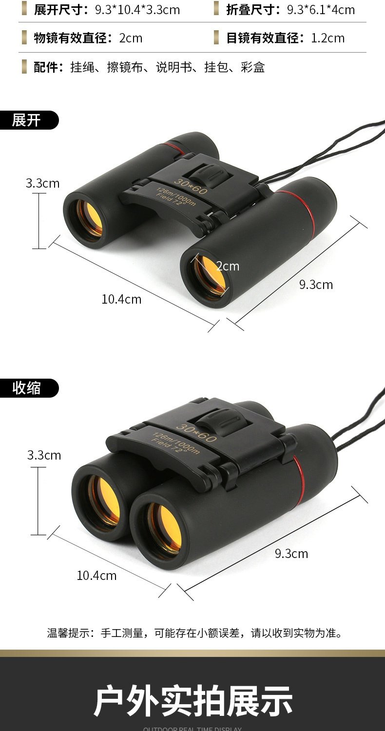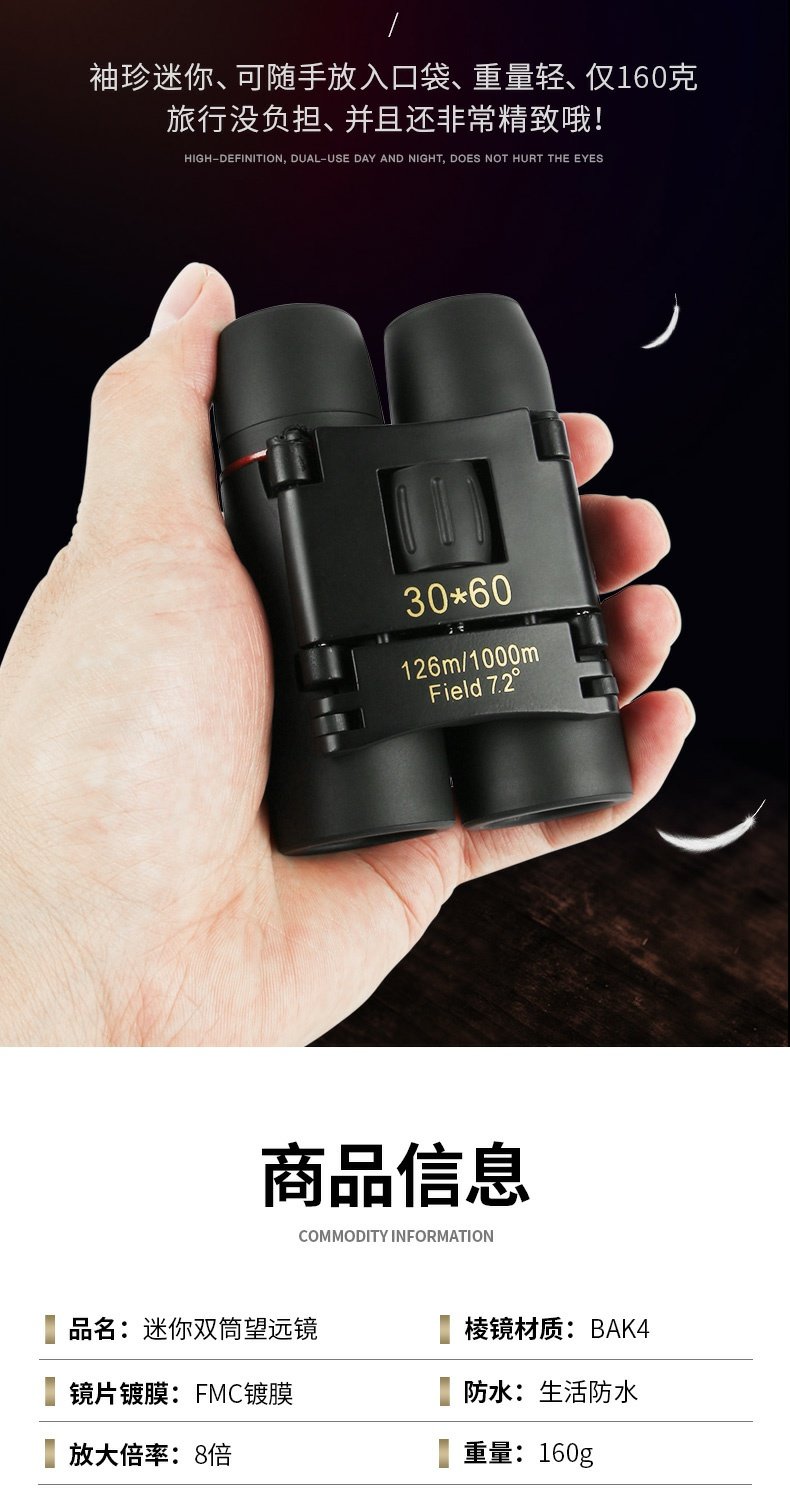 【户外新款30x60双筒望远镜】蓝红膜袖珍型望眼镜望远镜 掌中望远镜更轻更便携 防水防雾防潮防霉防尘 高透光率更清晰