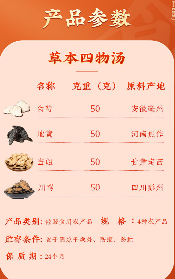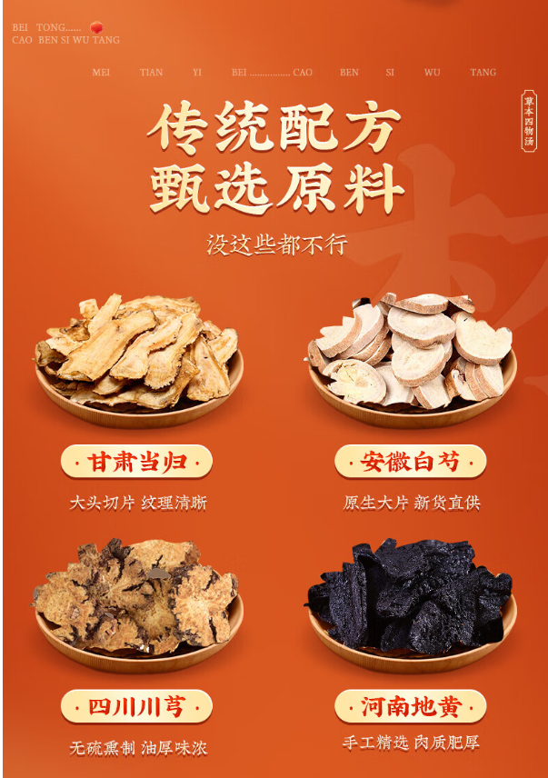 北京同仁堂 内廷上用 草本四物汤 黄川穹当归白芍200g