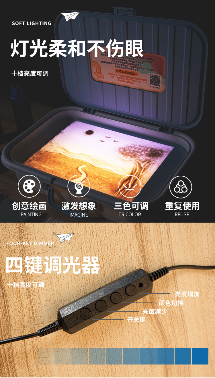 【手感细腻 更适合儿童】儿童沙画艺术台/艺术桌 孩子的沙画艺术创作体验 带灯光哦 让每一幅画呈现不一样的美感