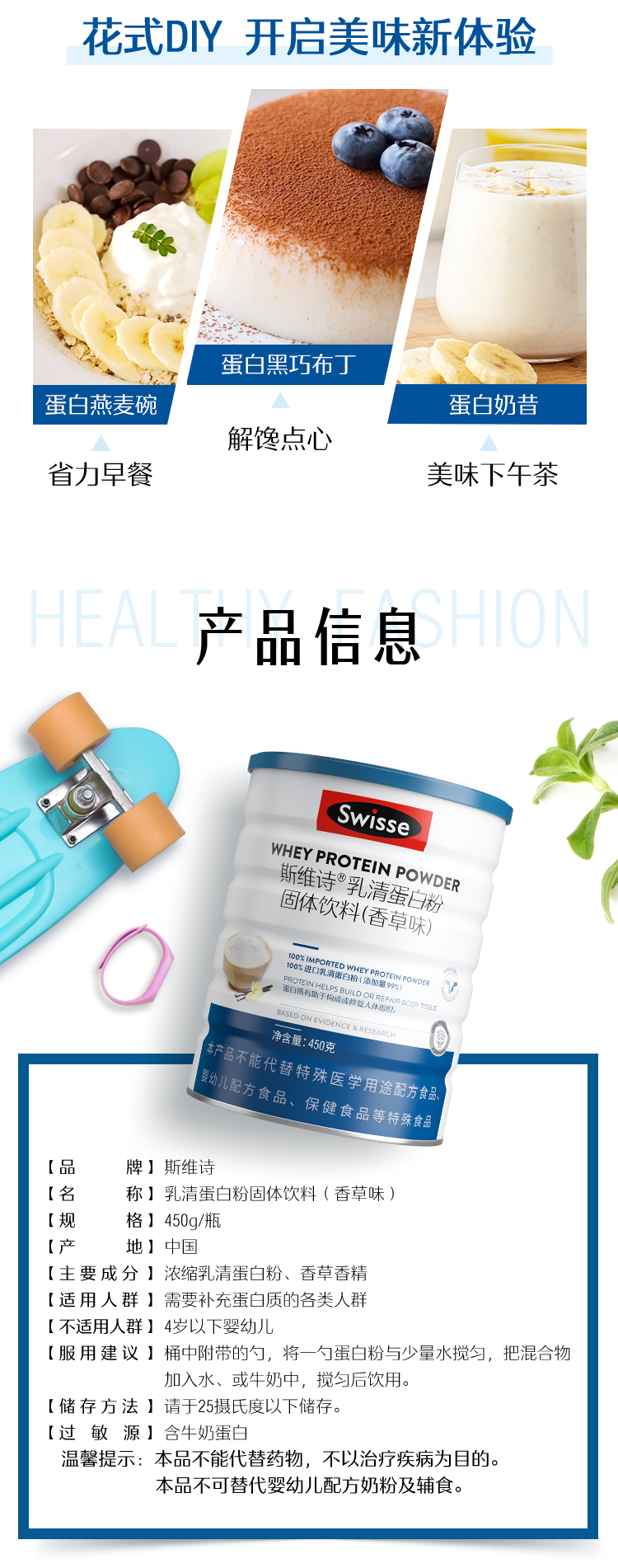 【1件包邮】Swisse斯维诗TM乳清蛋白粉香草味450g/170020 新疆/西藏/海南/内蒙/云南/宁夏/甘肃/青海/港澳台不发货