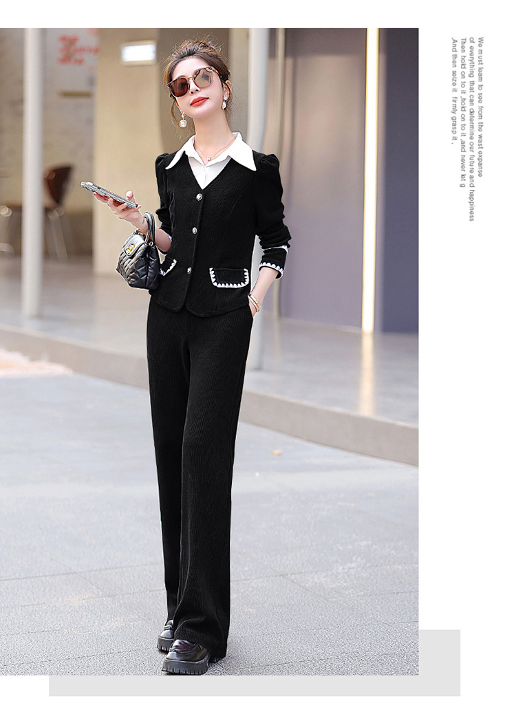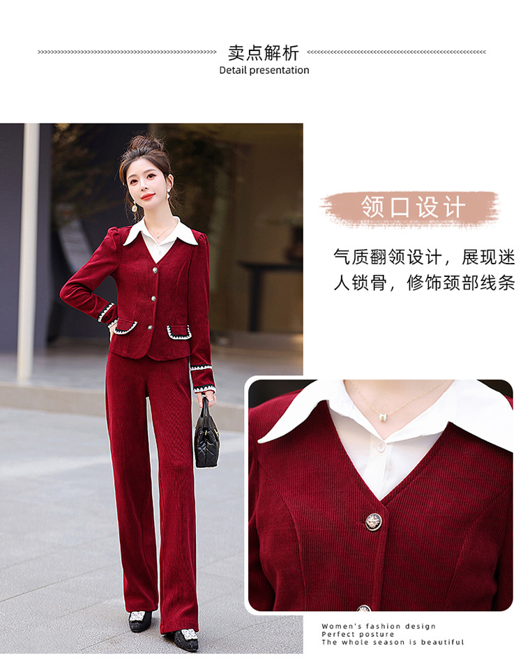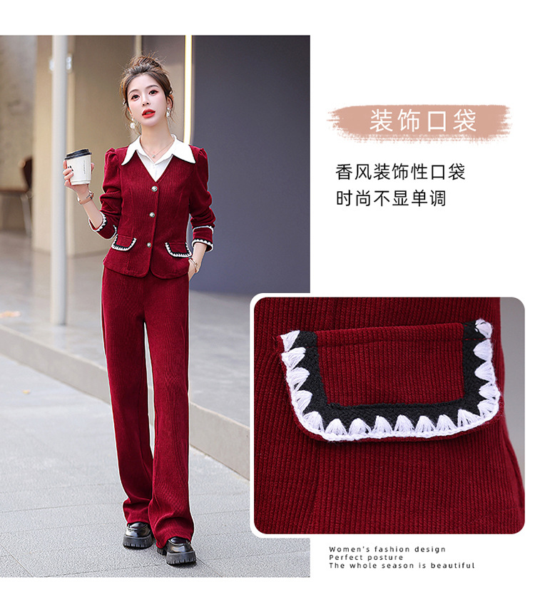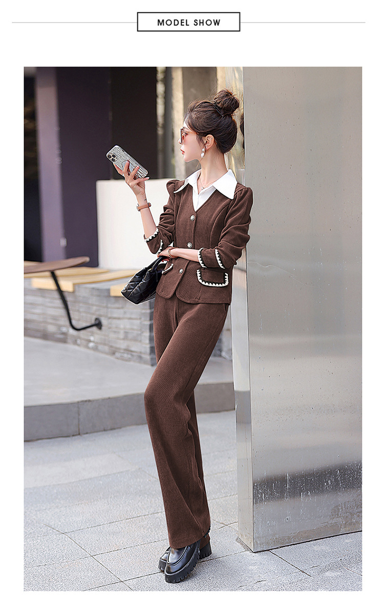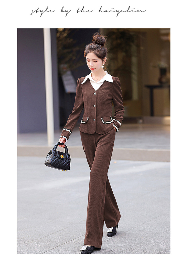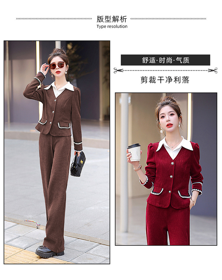 2024春季新款气质减龄显瘦小香风灯芯绒通勤职业套装HR-HMQY5169
