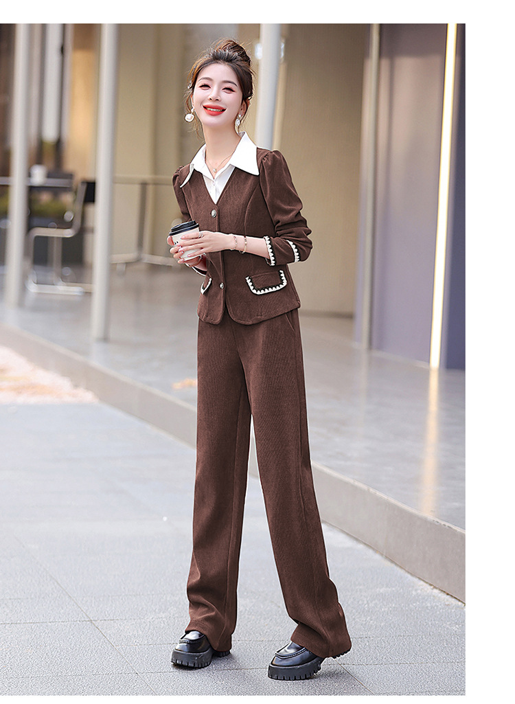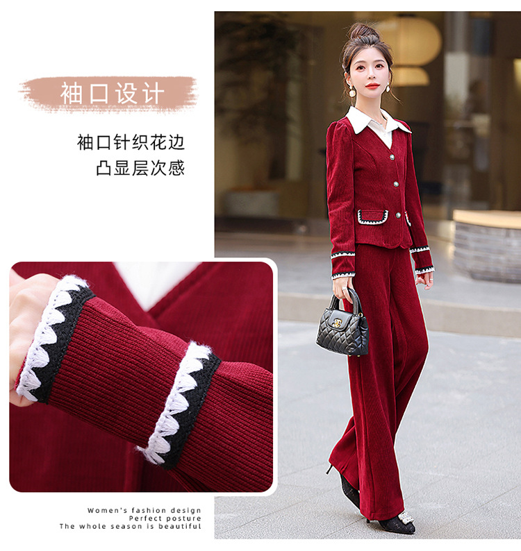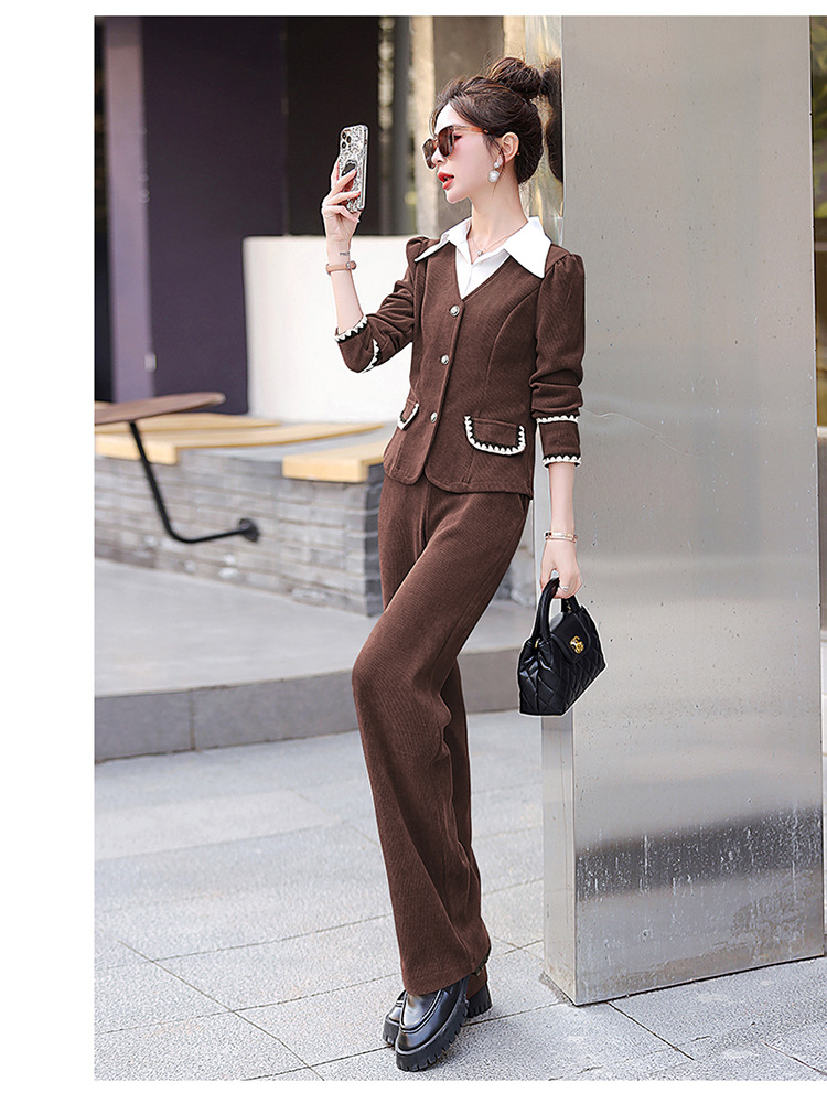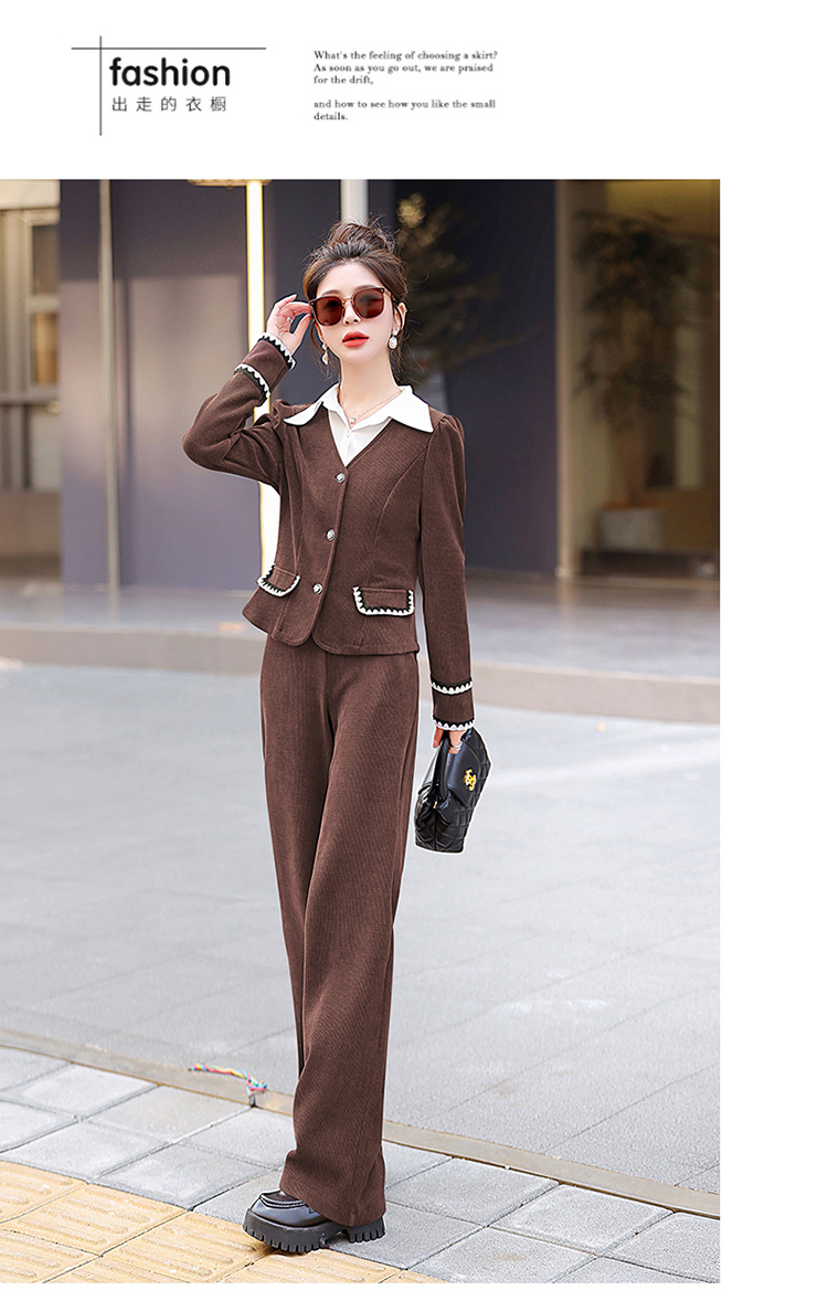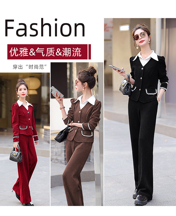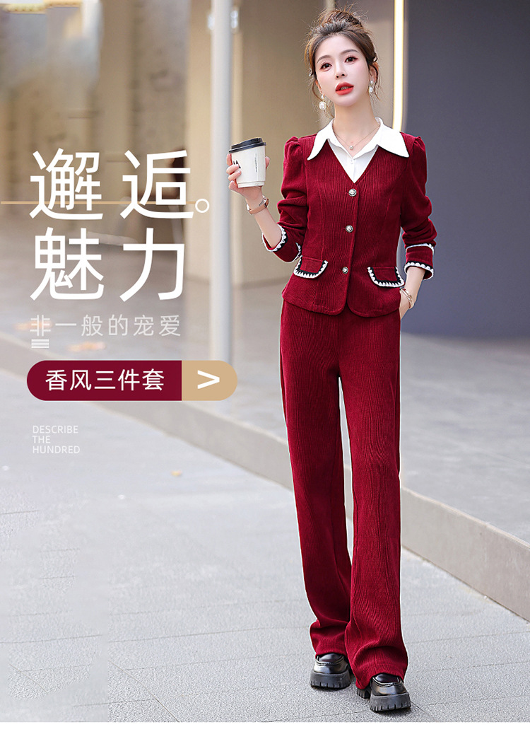 2024春季新款气质减龄显瘦小香风灯芯绒通勤职业套装HR-HMQY5169