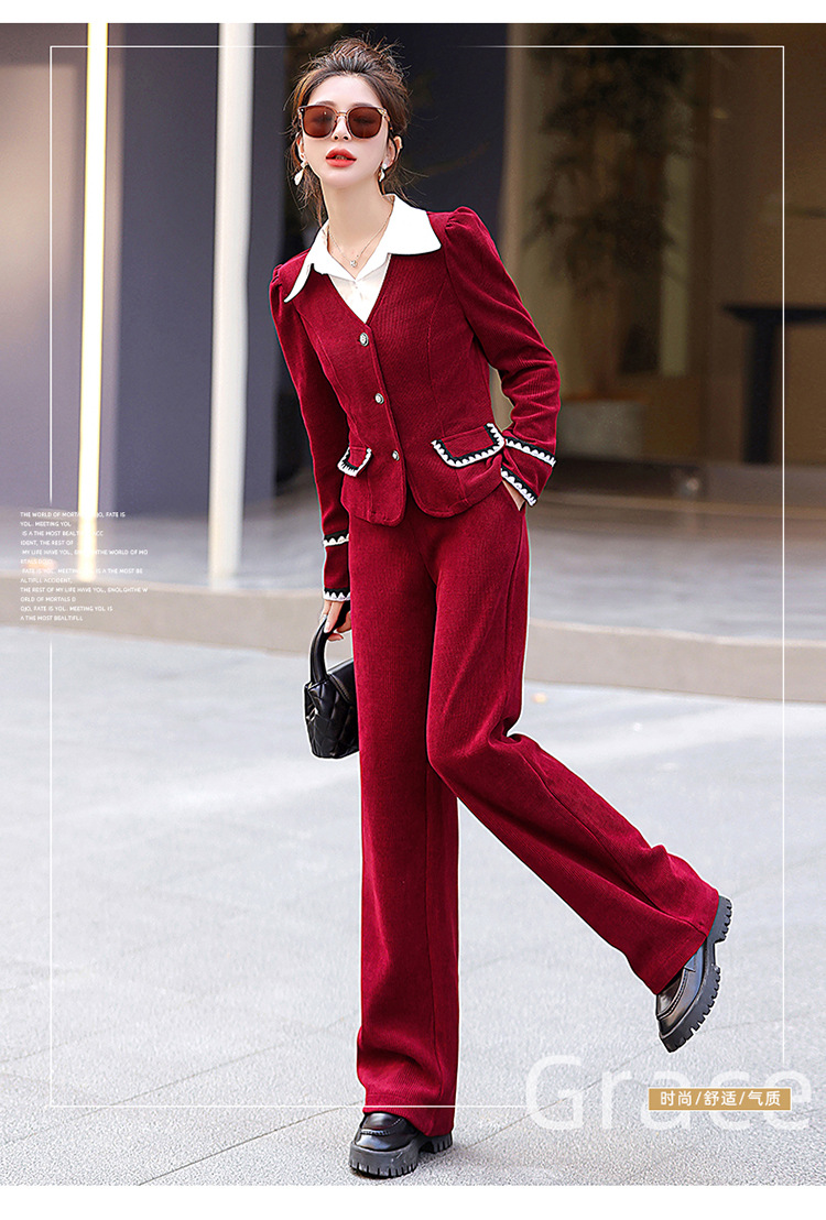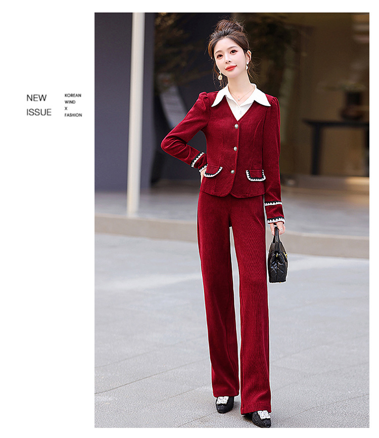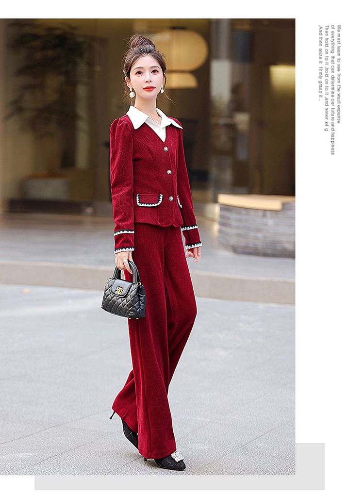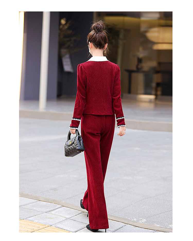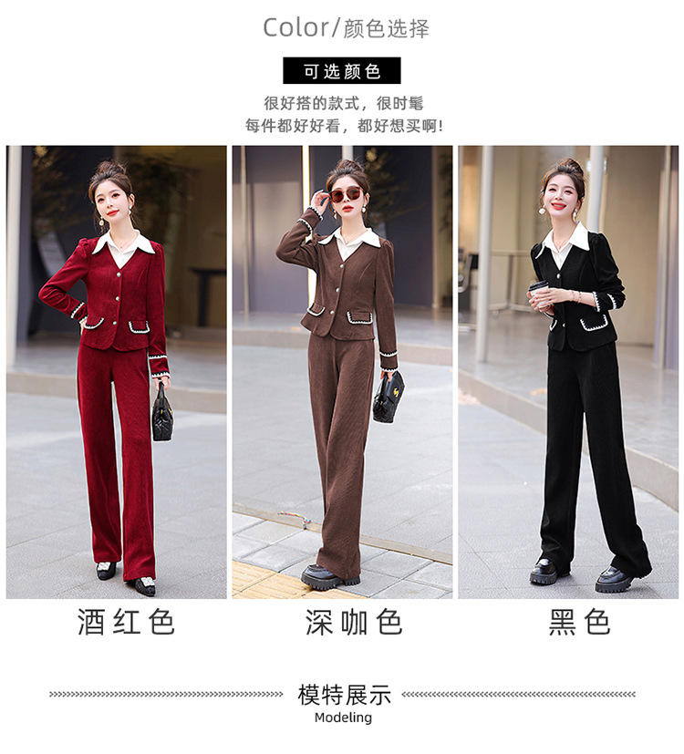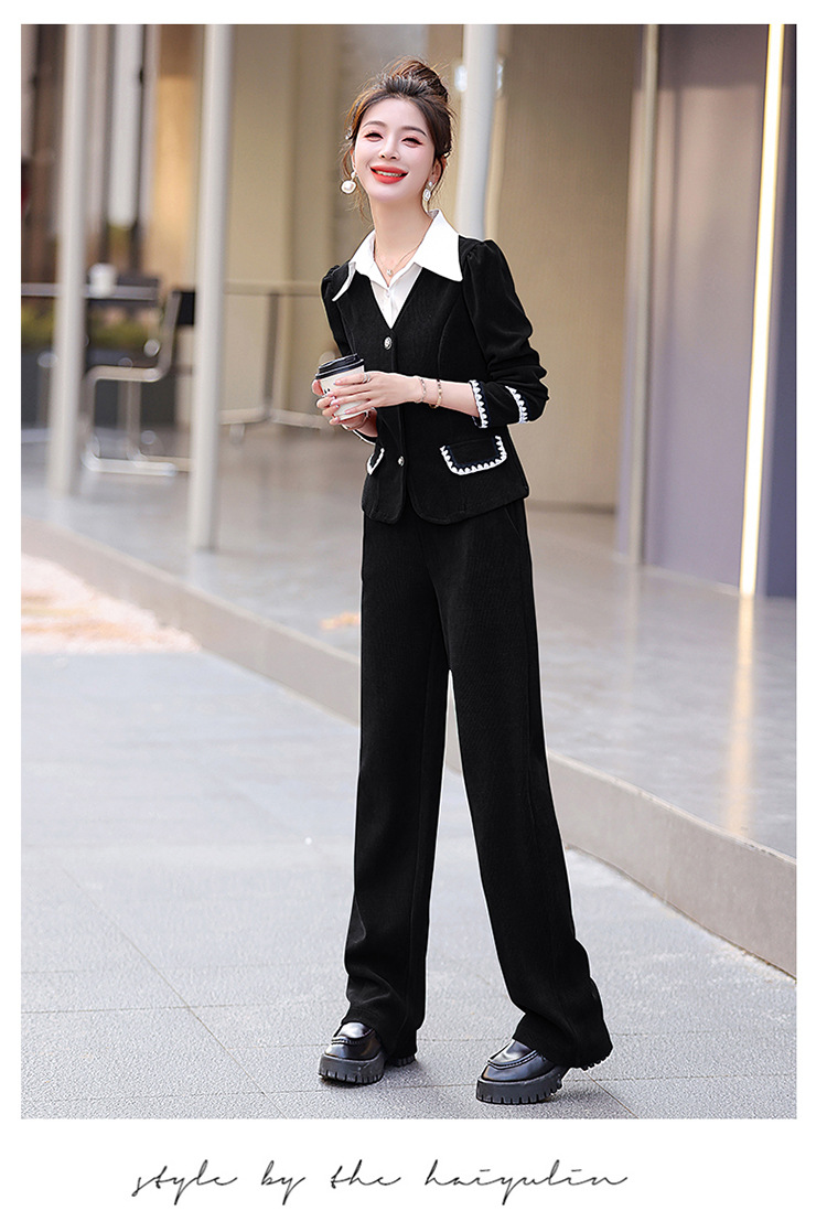 2024春季新款气质减龄显瘦小香风灯芯绒通勤职业套装HR-HMQY5169