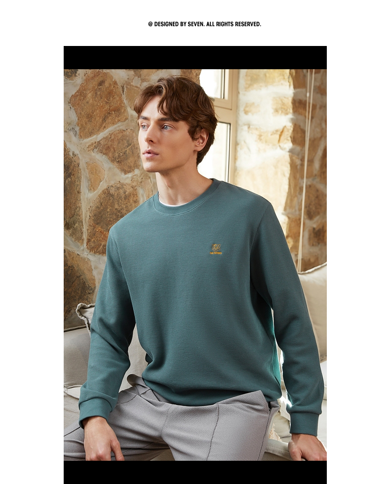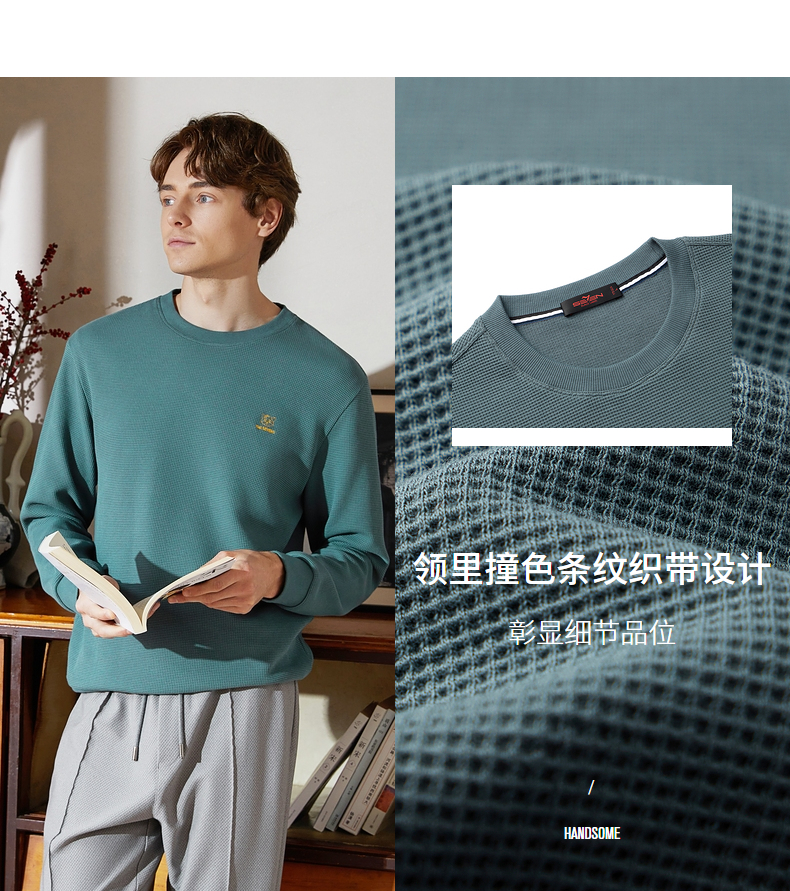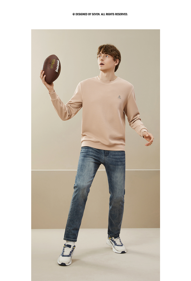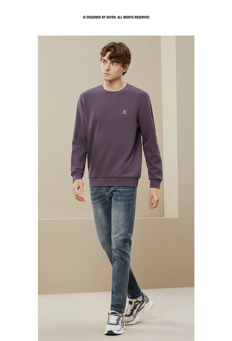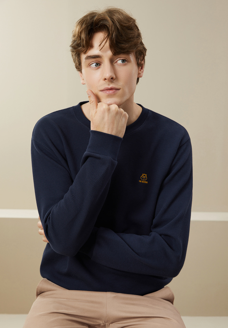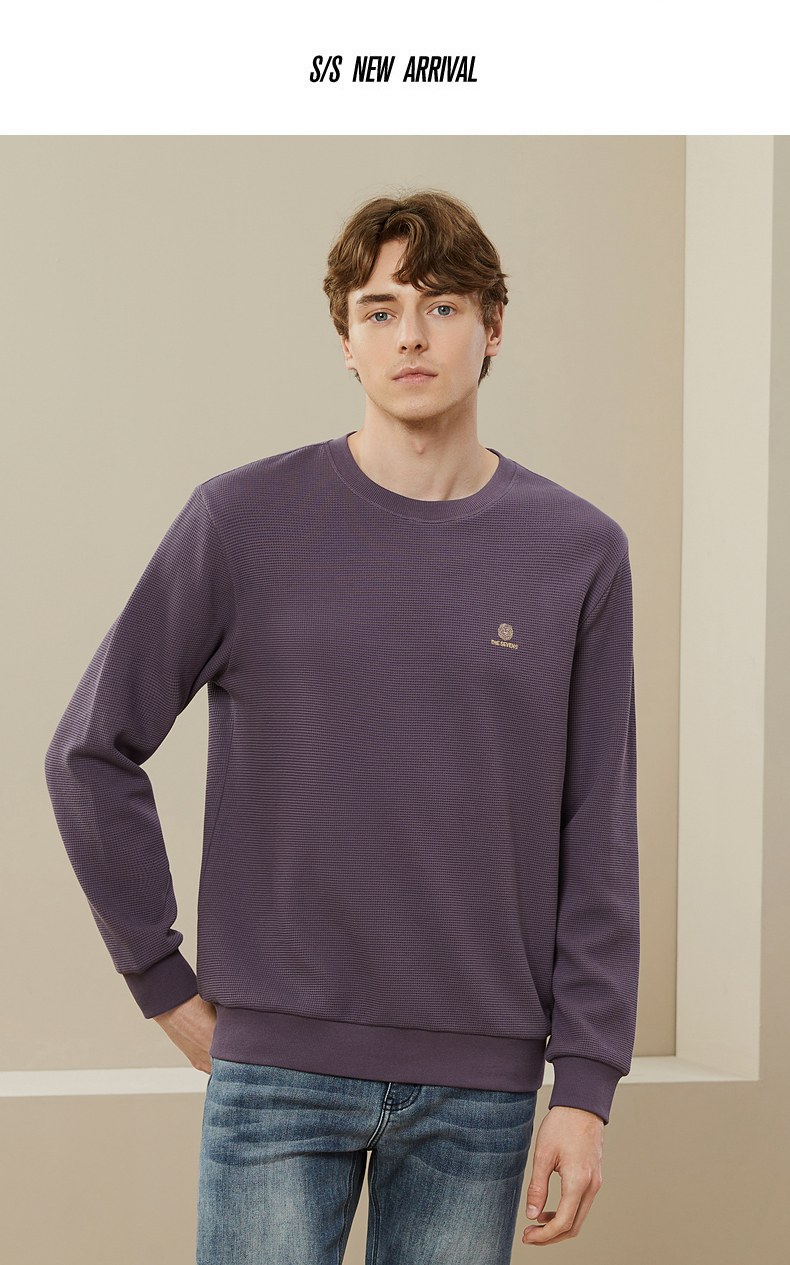 【华夫格】柒牌卫衣男春秋季新款中青年休闲百搭圆领套头上衣 125W70090