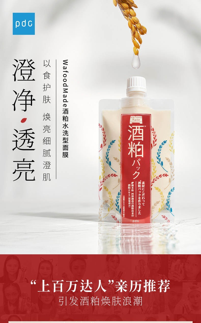日本碧迪皙pdc酒粕面膜水洗型170g/112628 全新升级双倍精粹改善暗沉